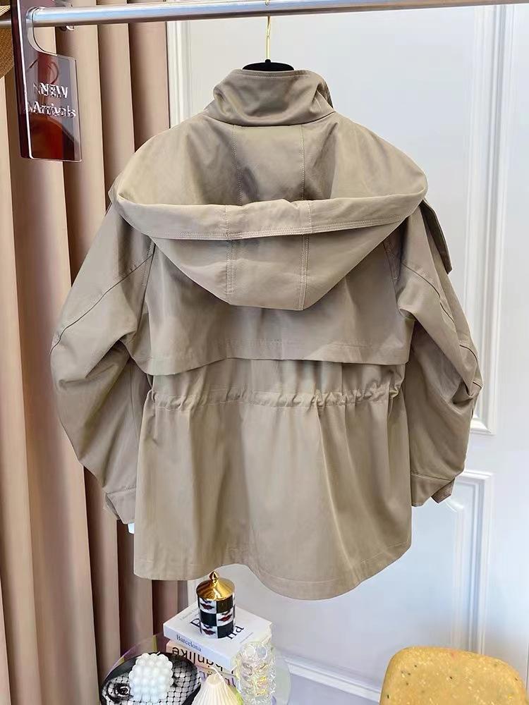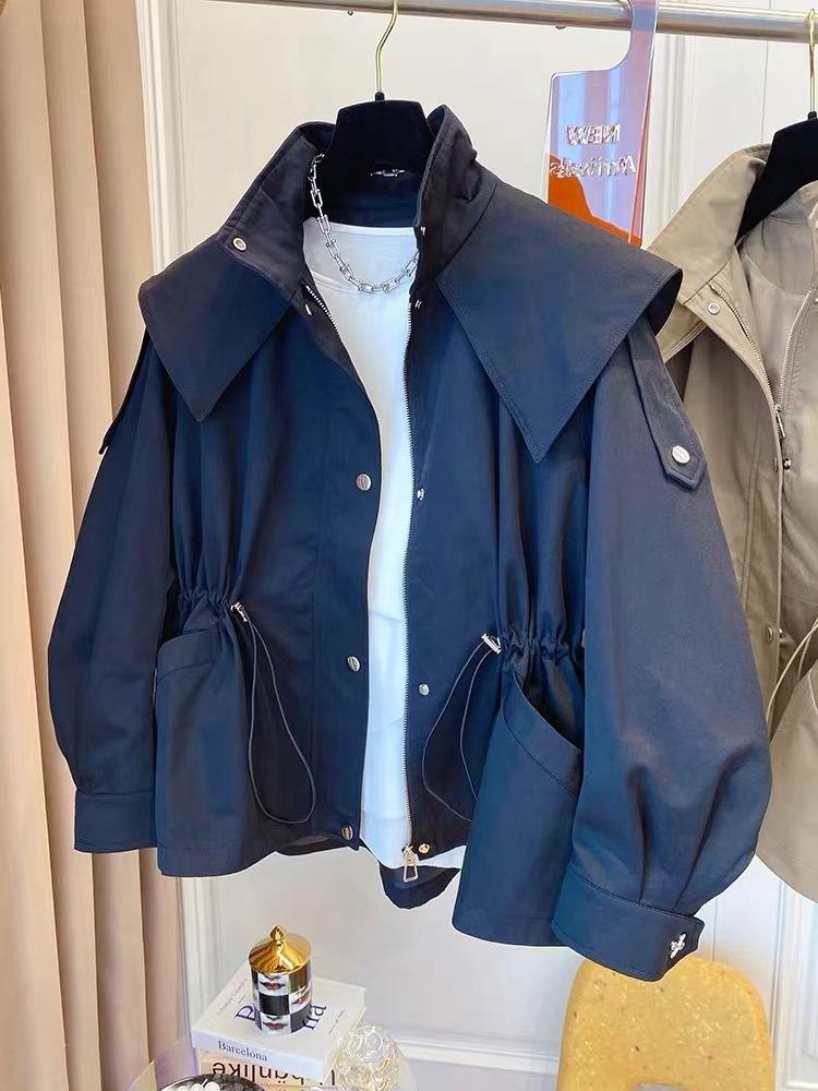 2024 Principios de Otoño Nuevo Diseño Nicho Suelto Casual Corto Cintura con Cordón Ropa de Trabajo Cortavientos Chaqueta Mujer Primavera y Otoño