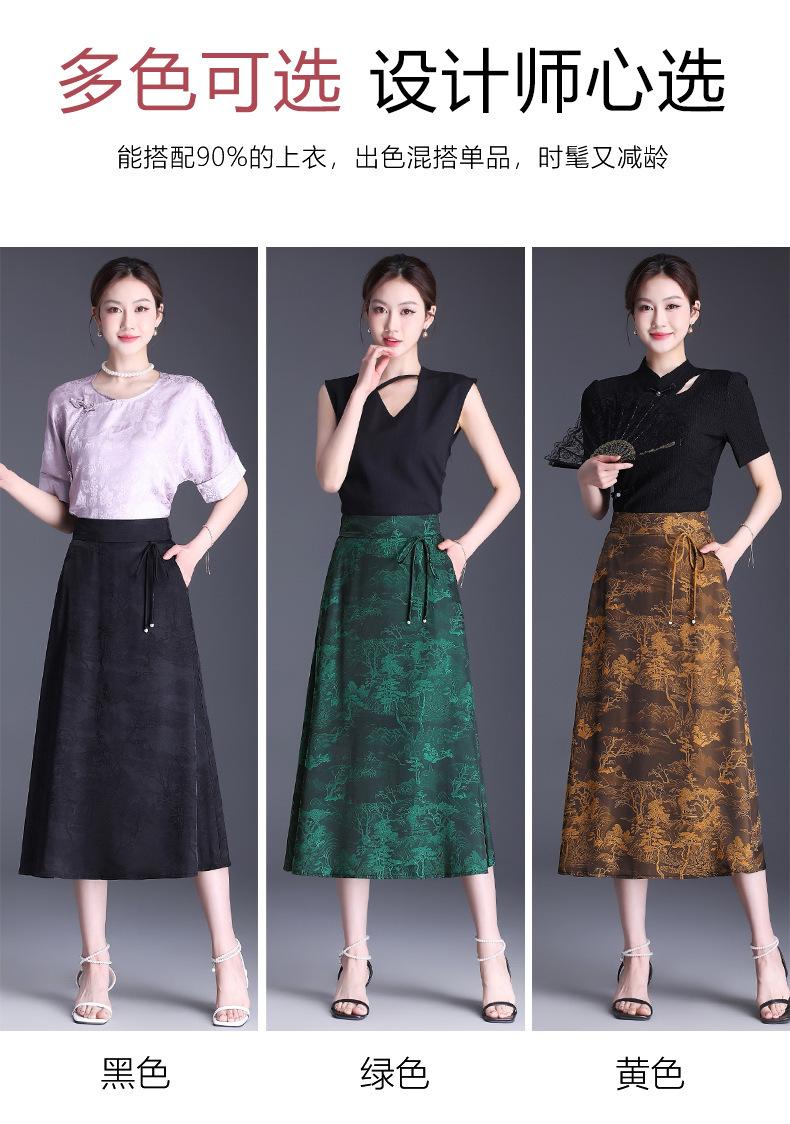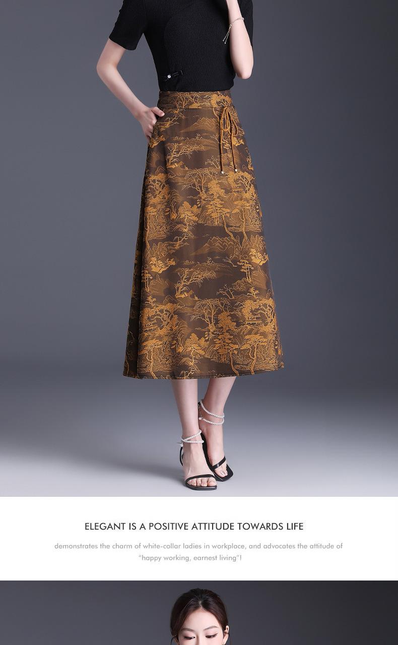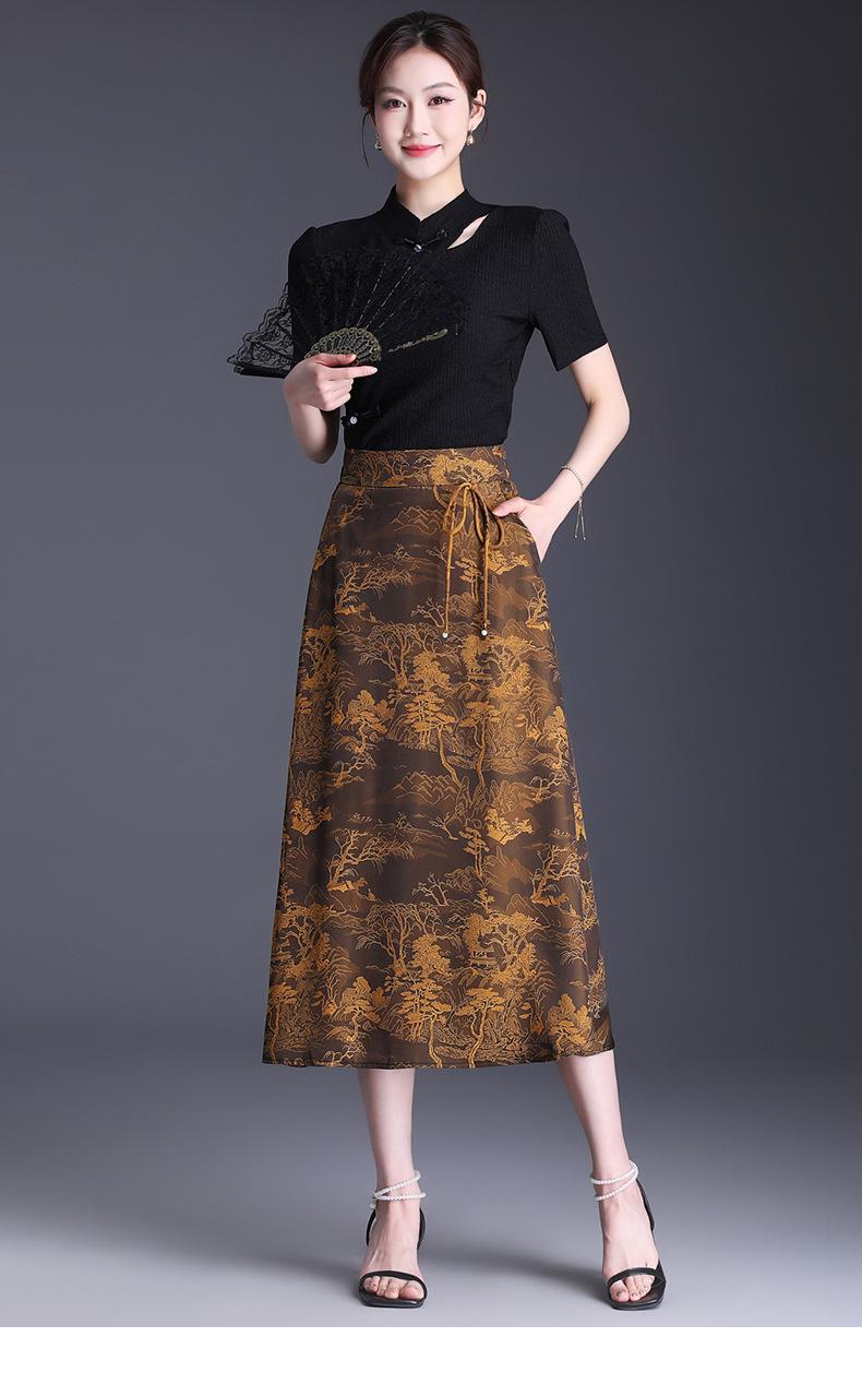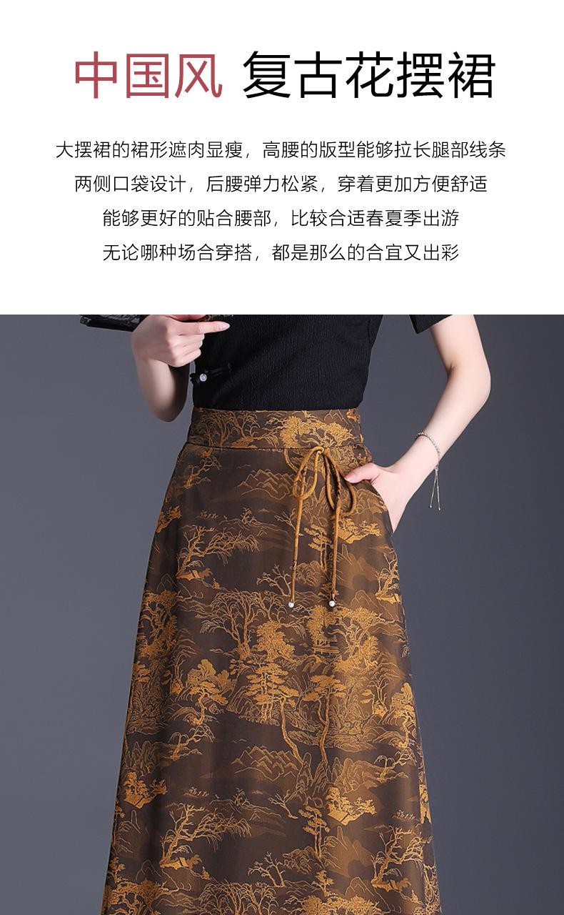Falda plisada de línea A retro de estilo nacional de moda 2025 Verano Nuevo Falda midi casual de línea A para mujer