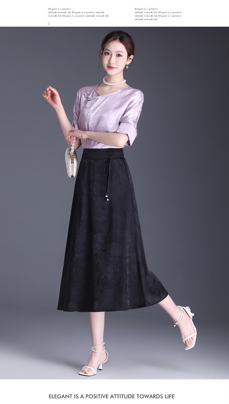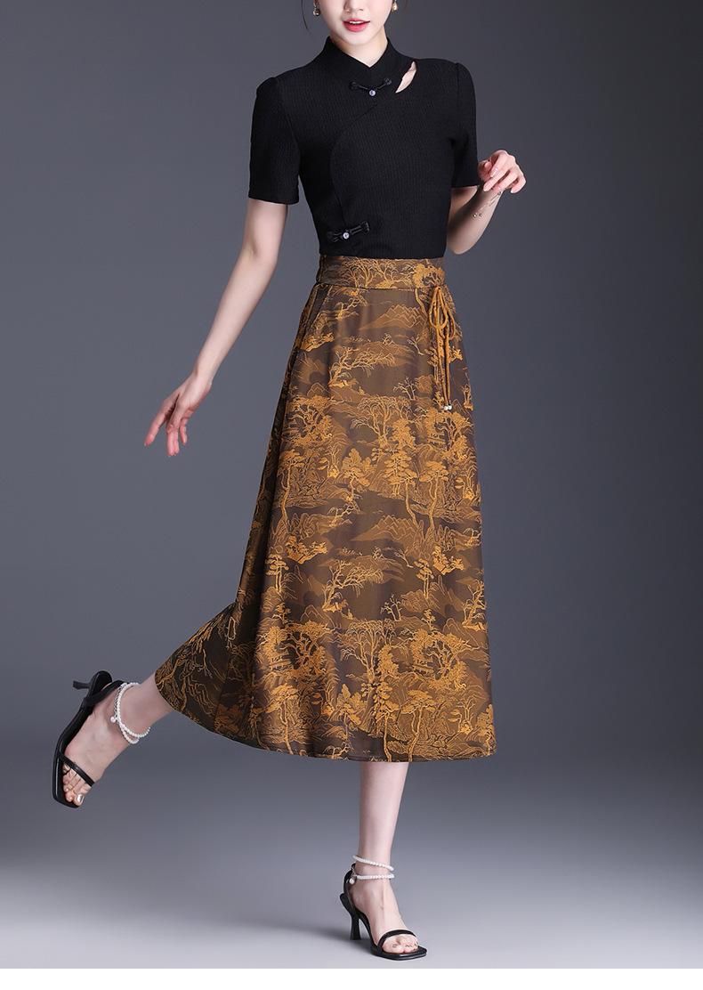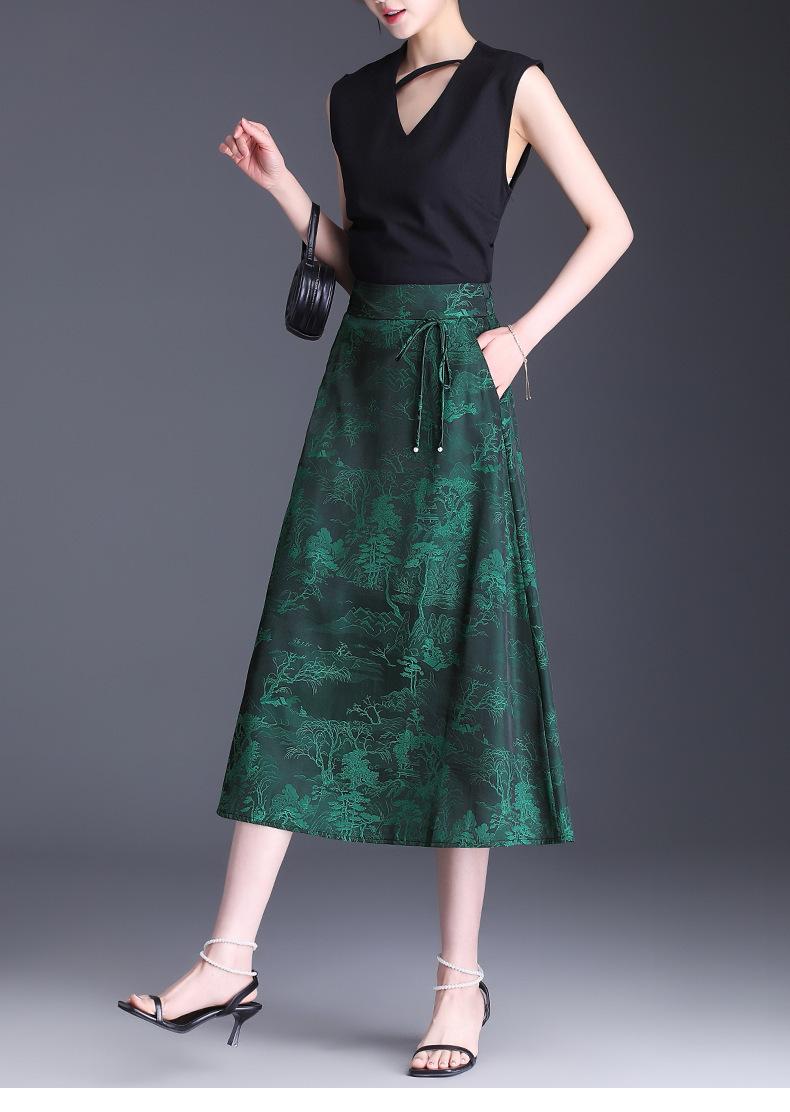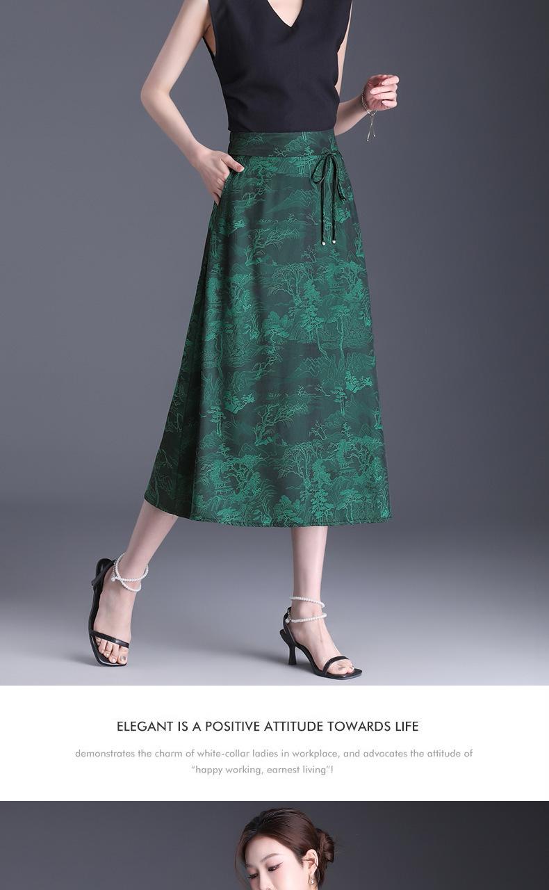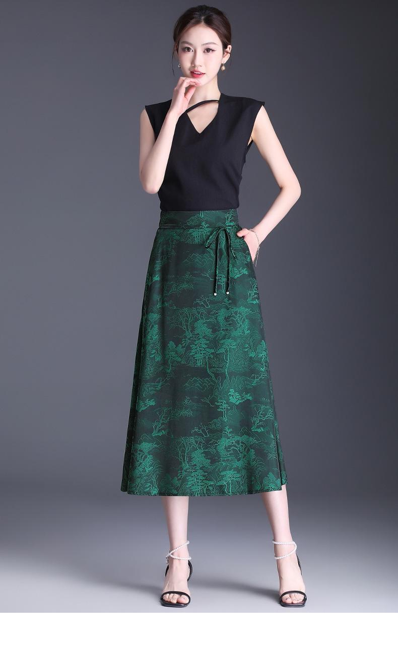 Falda plisada de línea A retro de estilo nacional de moda 2025 Verano Nuevo Falda midi casual de línea A para mujer