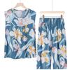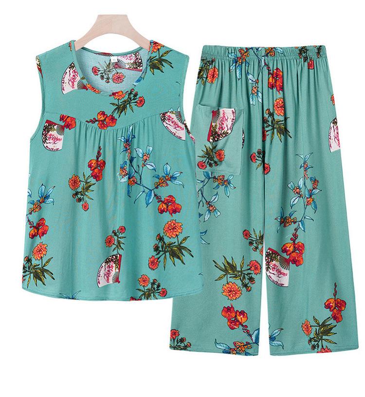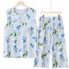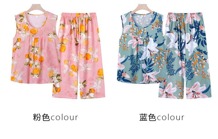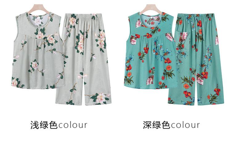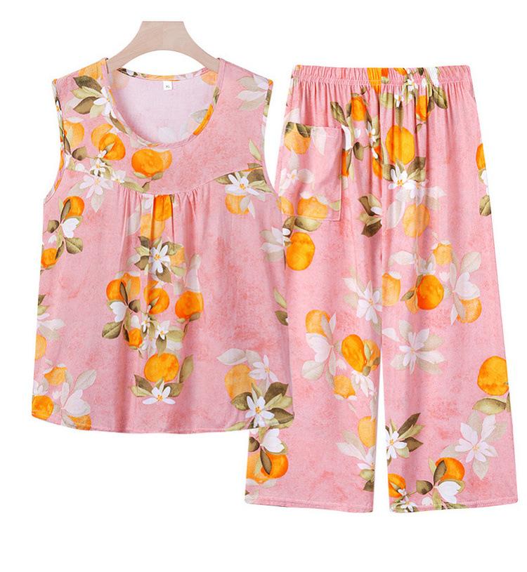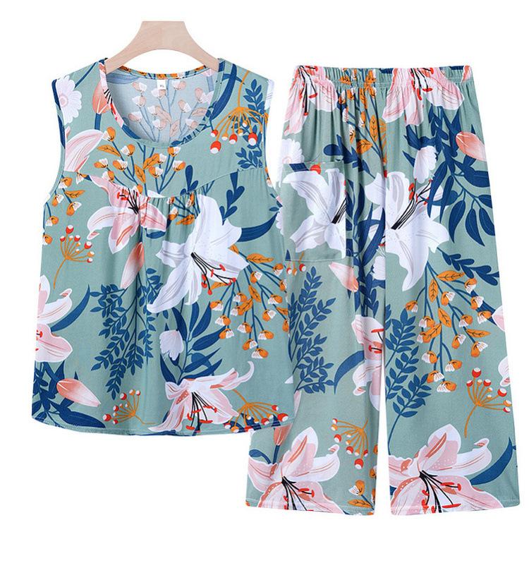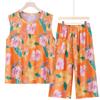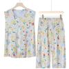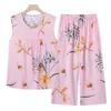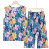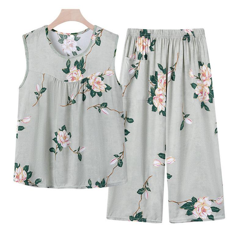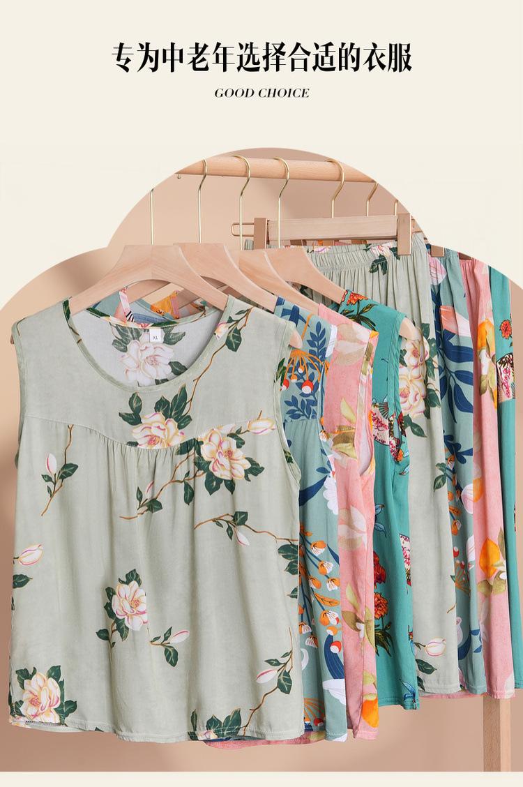 Pijama de verano de algodón y seda sin mangas para abuela, conjunto de dos piezas para madres de mediana edad y mayores, ropa de verano para el hogar, traje para mujer