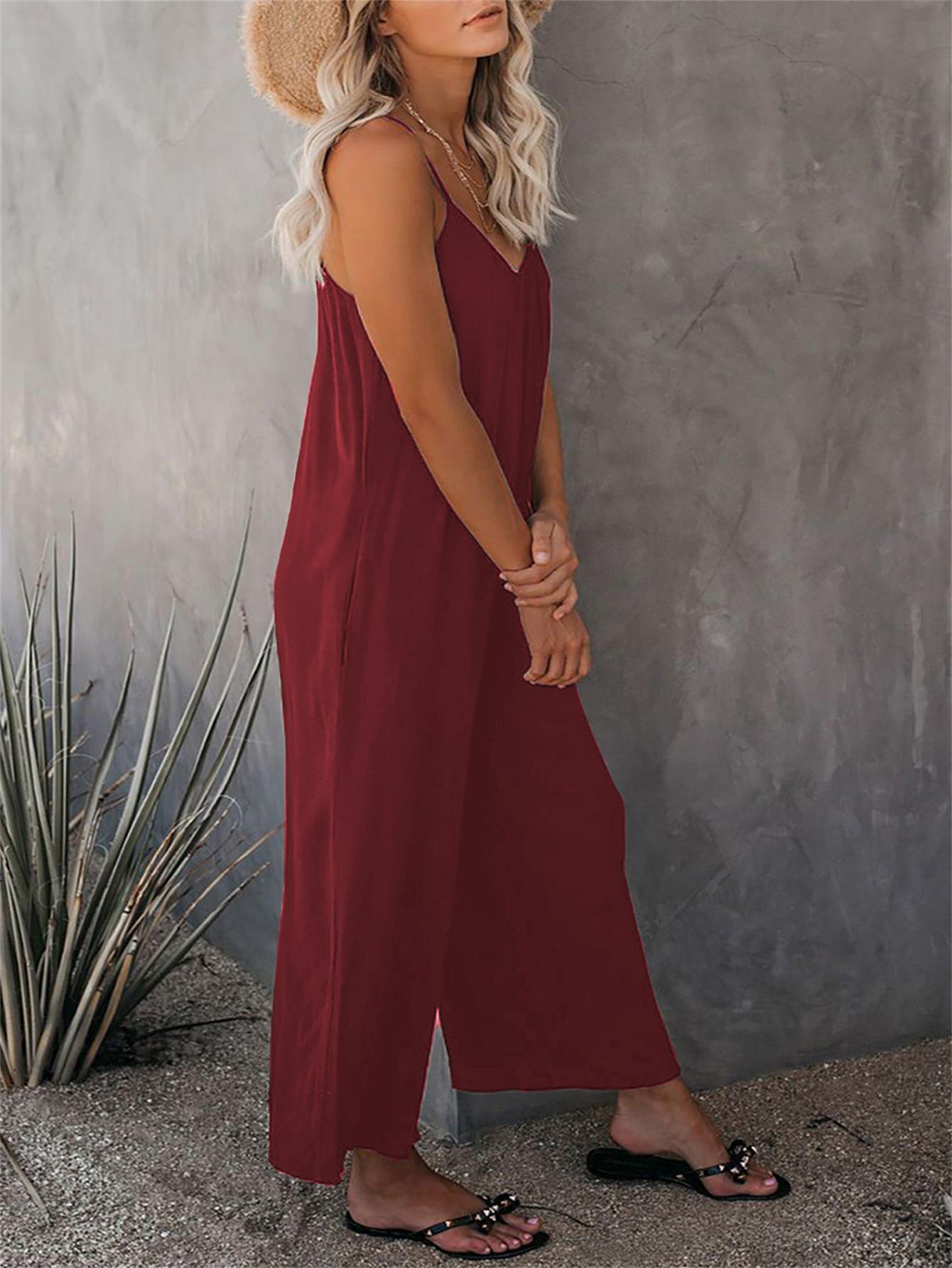 Amazon Europa y América 2023 verano nuevo pantalón de mujer transfronterizo color sólido bolsillo holgado casual peto