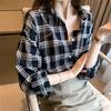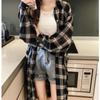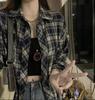 Camisa a cuadros de manga larga estilo retro de Hong Kong para mujer, holgada, larga, estilo perezoso, otoño 2023