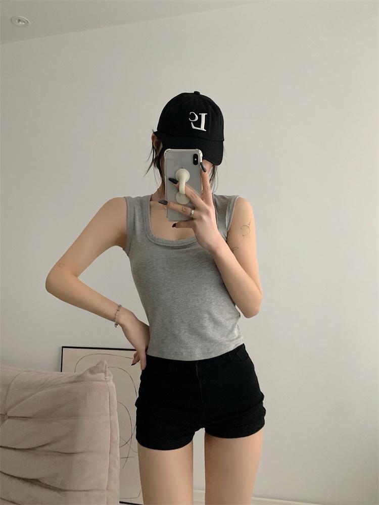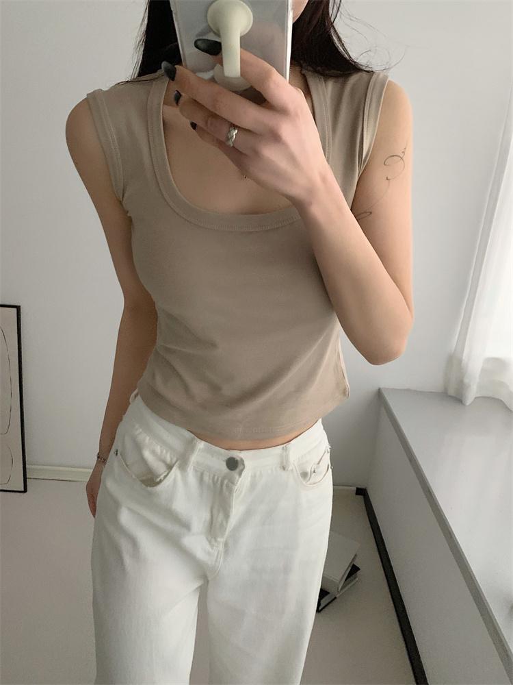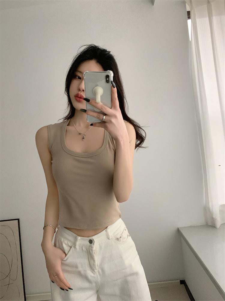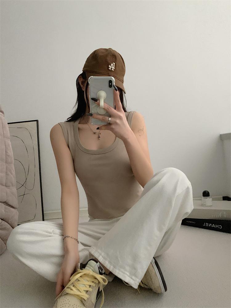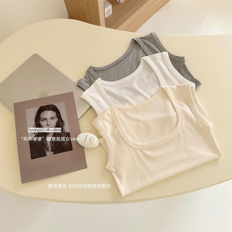 Chaleco de Cuello Cuadrado Estilo Chica Caliente para Mujer Verano 2025 Elástico Ajustado Corto Sin Mangas Ropa Exterior Base Suspbottomer para Mujer