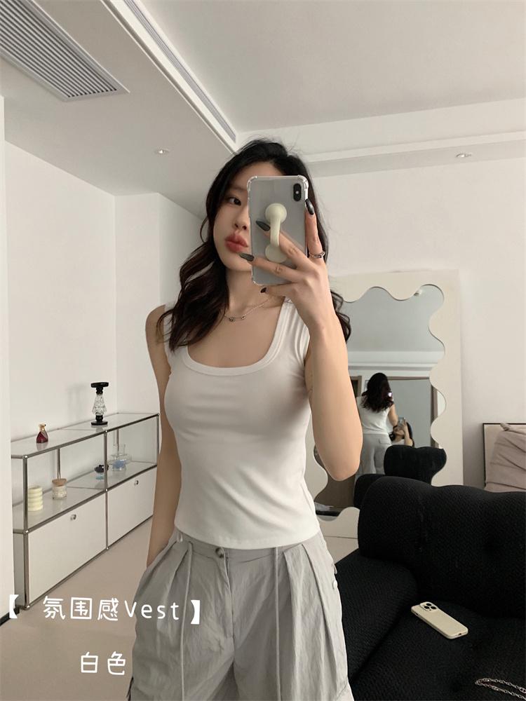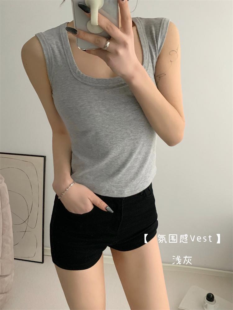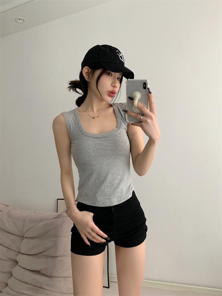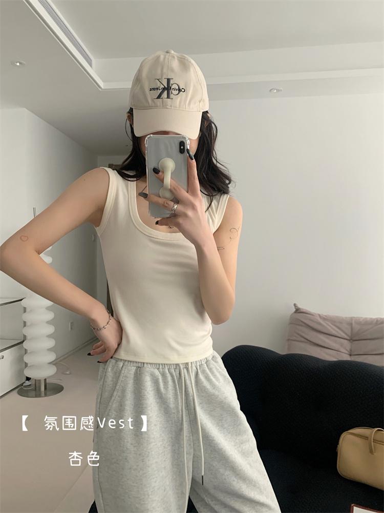 Chaleco de Cuello Cuadrado Estilo Chica Caliente para Mujer Verano 2025 Elástico Ajustado Corto Sin Mangas Ropa Exterior Base Suspbottomer para Mujer