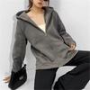Cárdigan suéter holgado estilo americano con forro polar, estilo perezoso oversize, con cremallera y capucha, color sólido, abrigo nuevo
