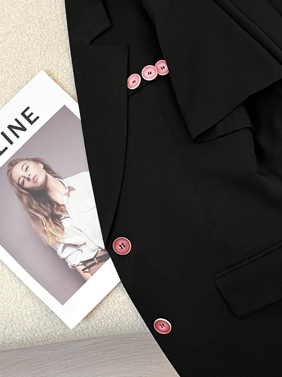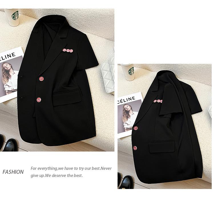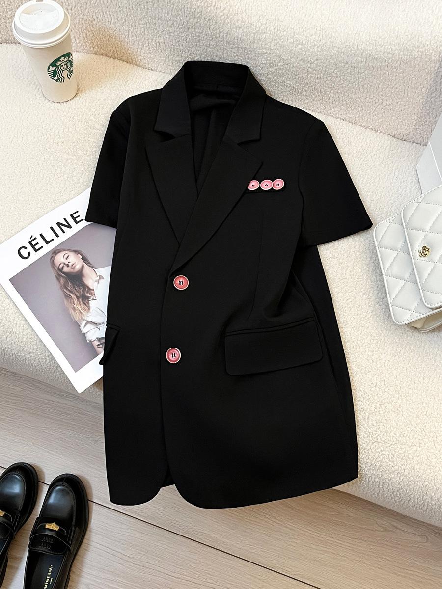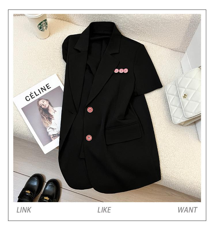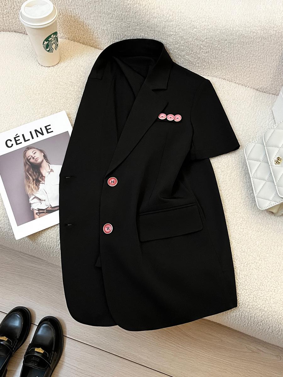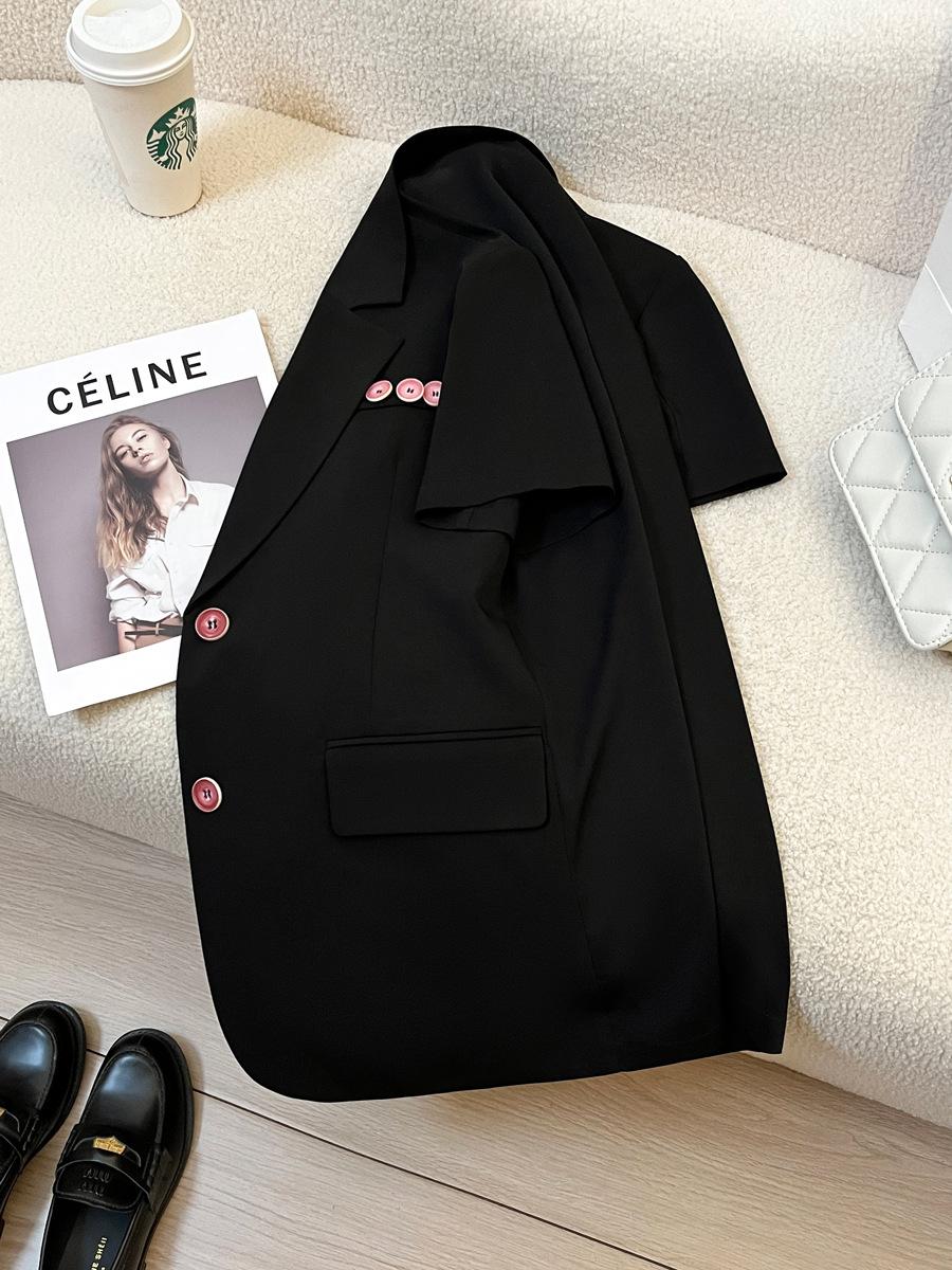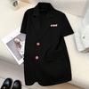 2025 Nuevo Traje de Verano Negro de Manga Corta para Mujer Diseño Coreano Nicho Casual Ajustado