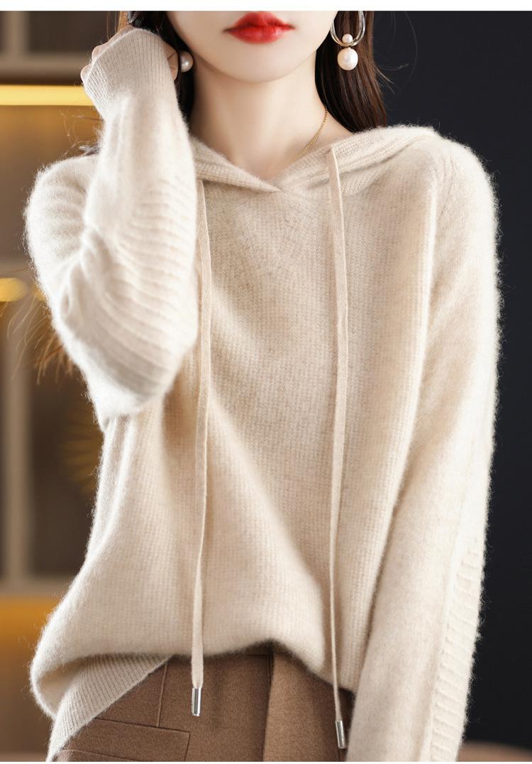 Suéter para Mujer Otoño e Invierno Tejido con Capucha Top Suelto Grueso Suéter Holgazán Casual Sudadera Camiseta Base Ropa Exterior