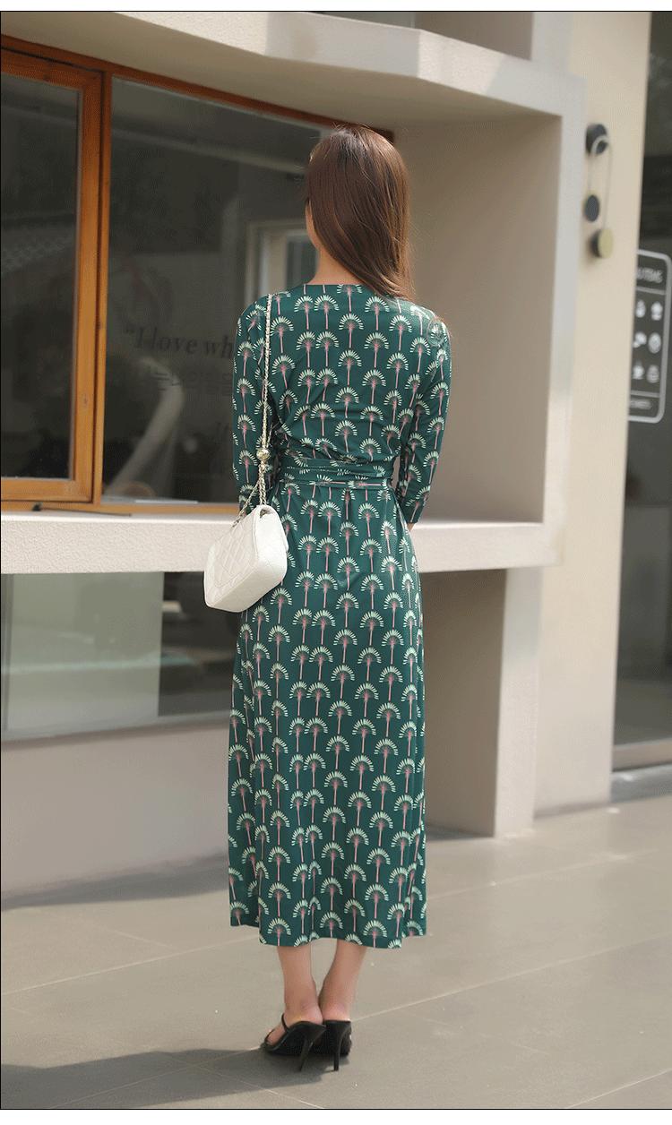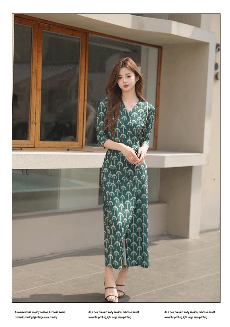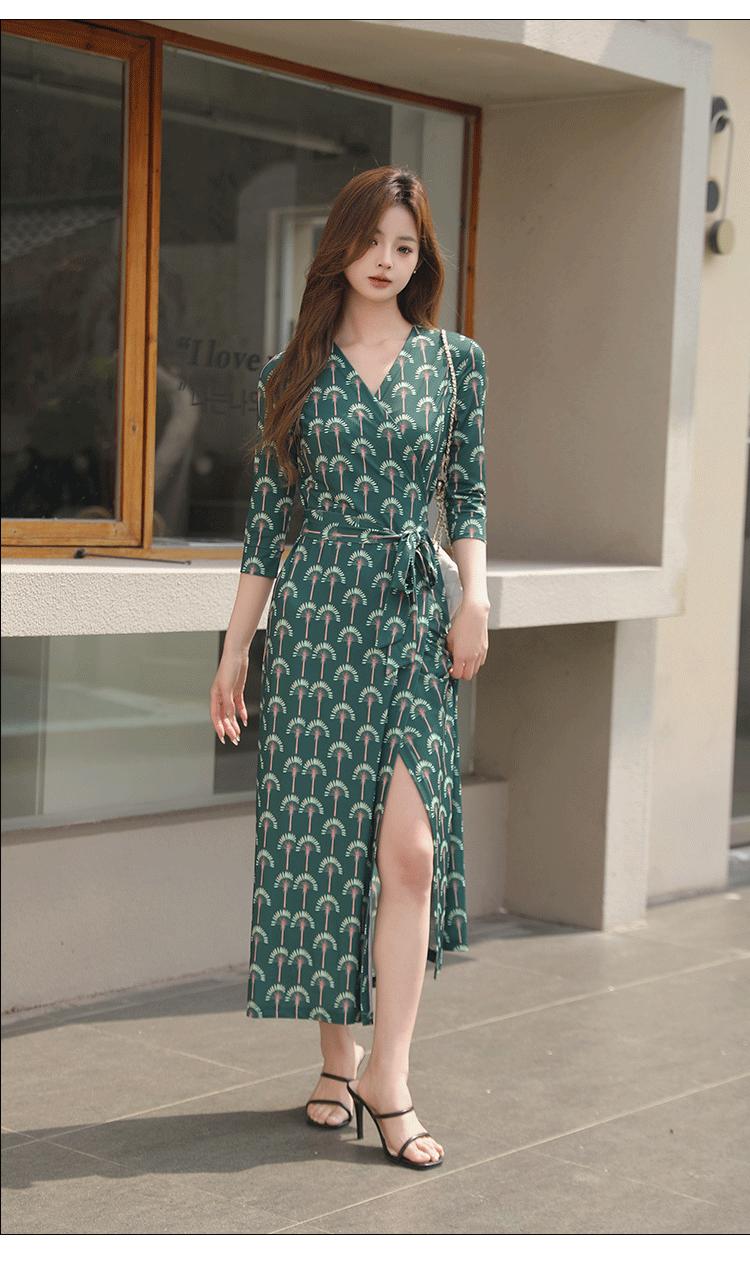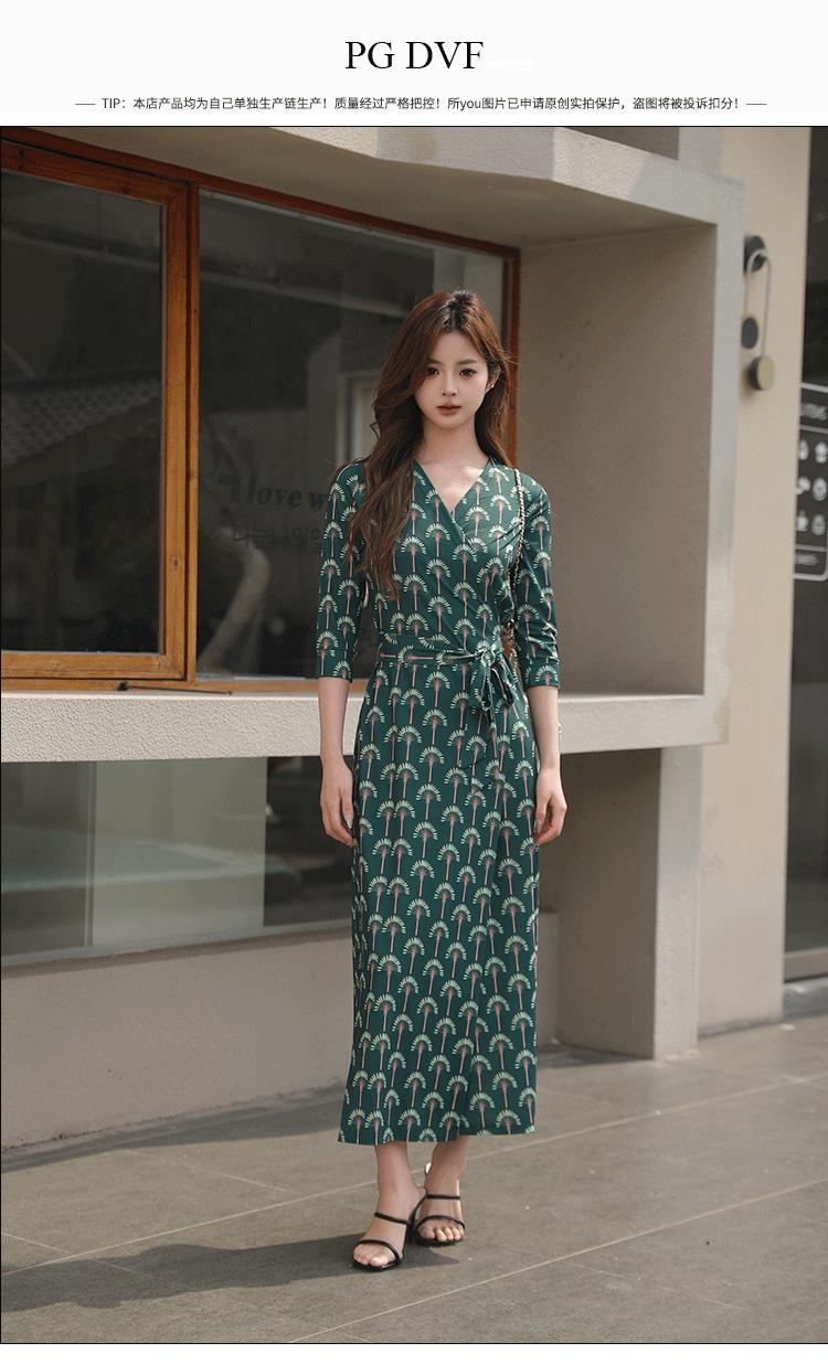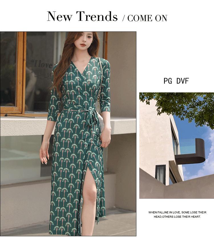 PG DVF2024 Vestido de verano para mujer, nuevo, con escote en V, abertura, ajustado, cruzado, floral
