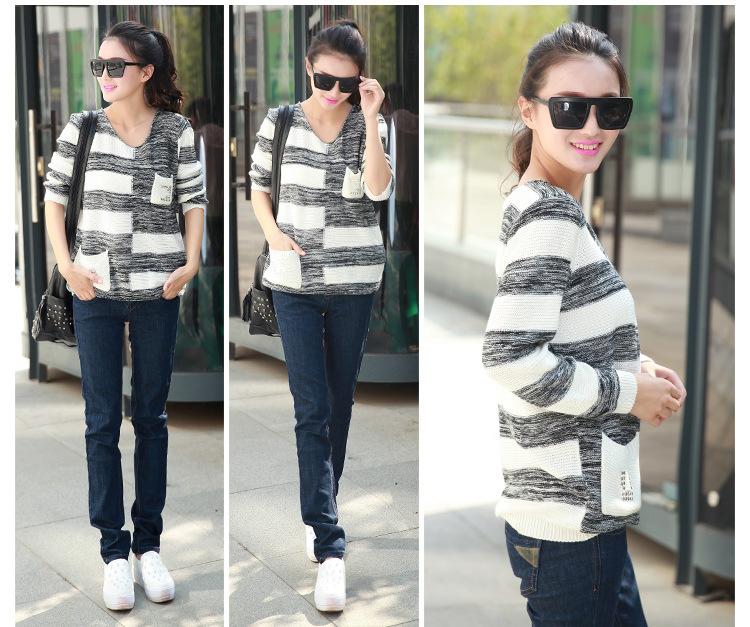 Suéter fino de punto para mujer de primavera y otoño, nuevo, estilo coreano, color block, holgado, moderno