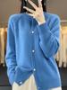 Otoño e invierno nuevo suéter de cachemira para mujer cuello redondo raglán chaqueta cárdigan grueso botón de cuerno suéter de lana suelto