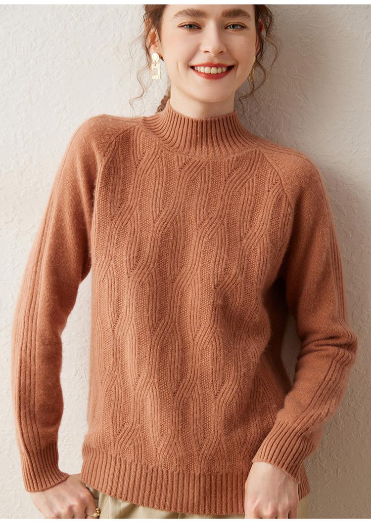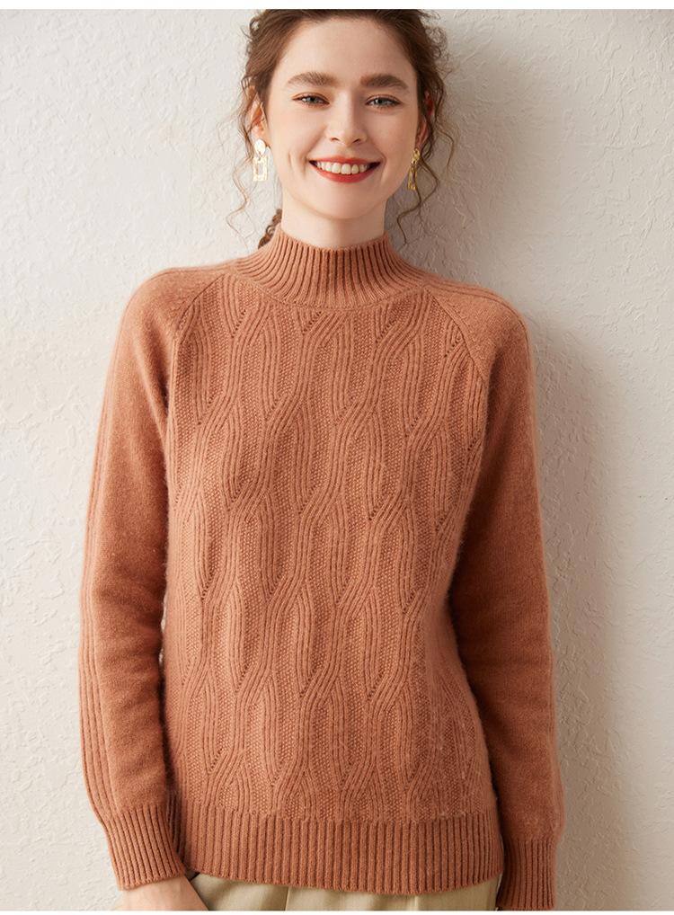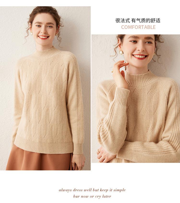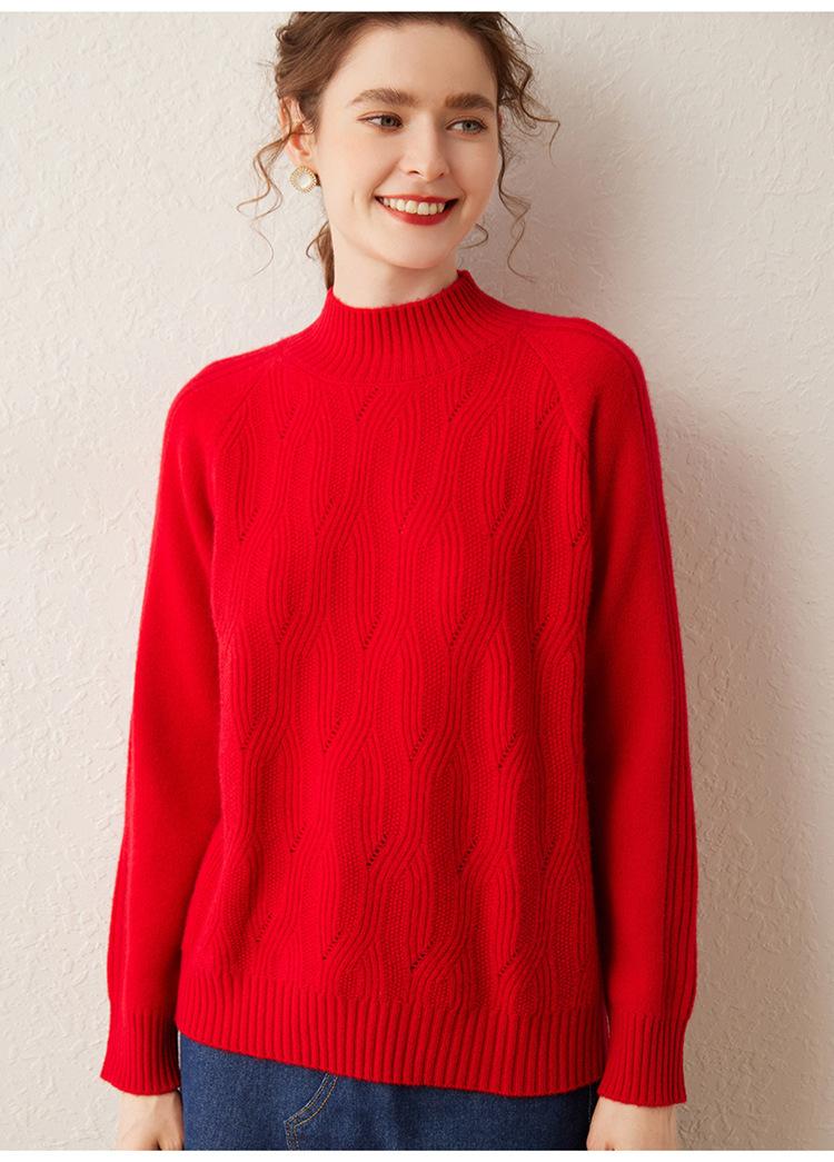 Otoño e Invierno nuevo suéter de cachemira calado de color puro para mujer moderno simple suelto jersey casual tejido de fondo