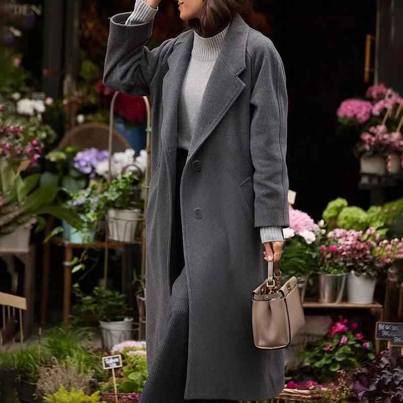 2025 Invierno Nuevo Silueta Commuter Europea y Americana Abrigo de Lana Suelto de Manga Larga Casual Grueso Cálido Abrigo para Mujer