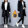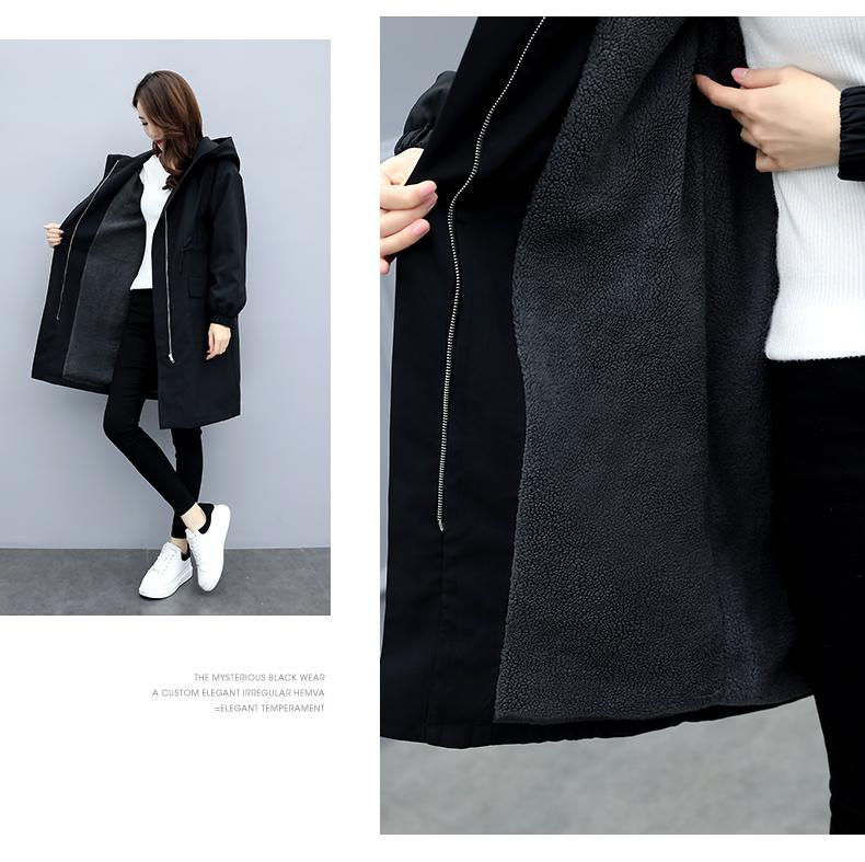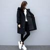Ropa Exterior de Algodón de Terciopelo Transfronteriza para Mujer de Largo Medio Otoño e Invierno 2024 Cortavientos Holgado Engrosado con Capucha Talla Grande Algodón Negro