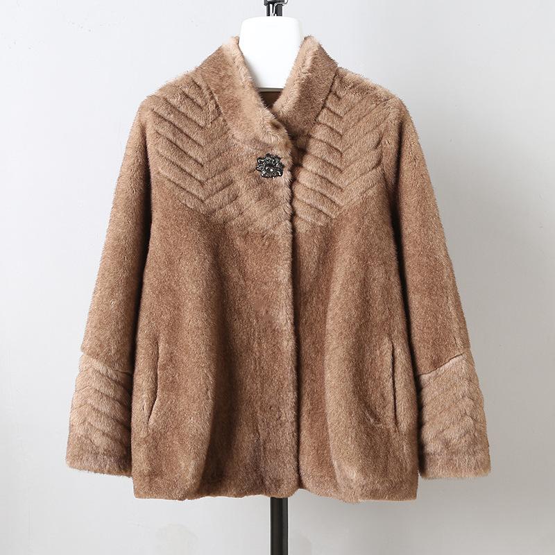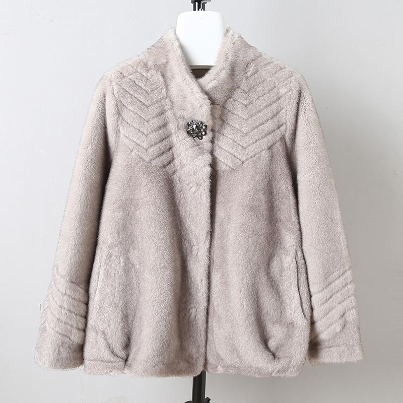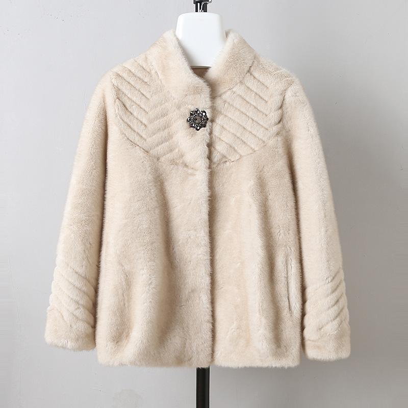Abrigo de piel sintética para mujer para mamás otoño e invierno Nuevo top corto de piel sintética de visón de moda para mujeres de mediana edad