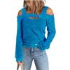 2022 Otoño e Invierno Europa y América transfronteriza Amazon deseo ropa de mujer moda casual color sólido fuera del hombro suelta manga larga camiseta mujer