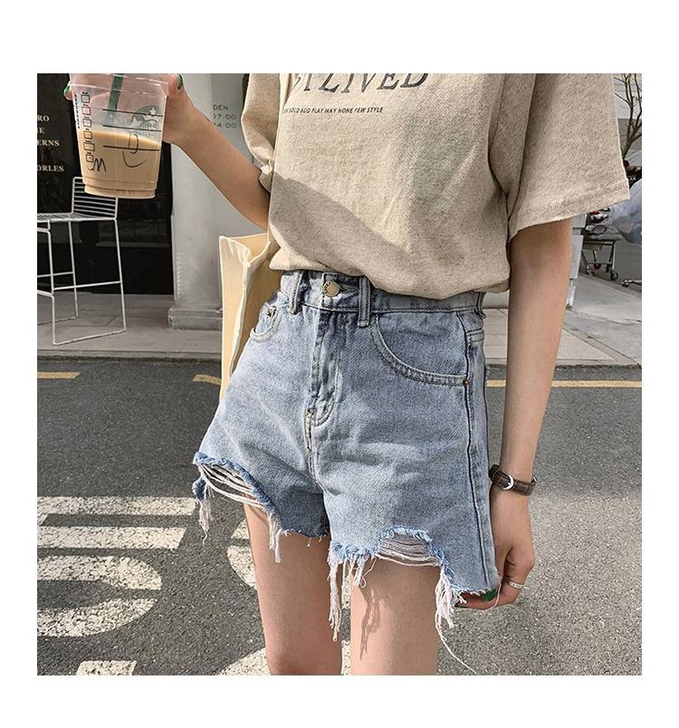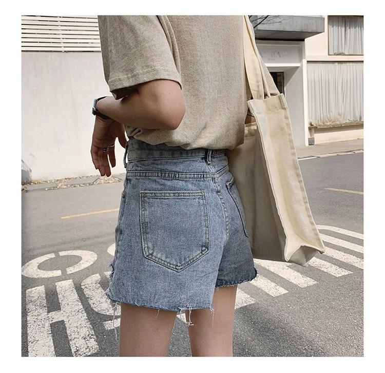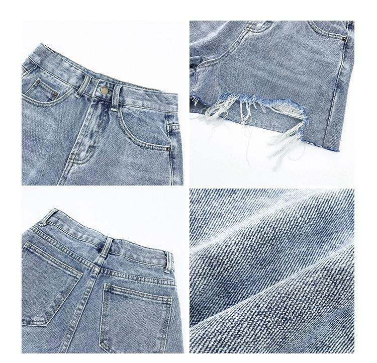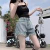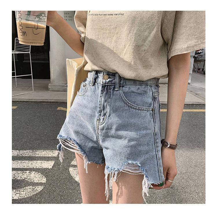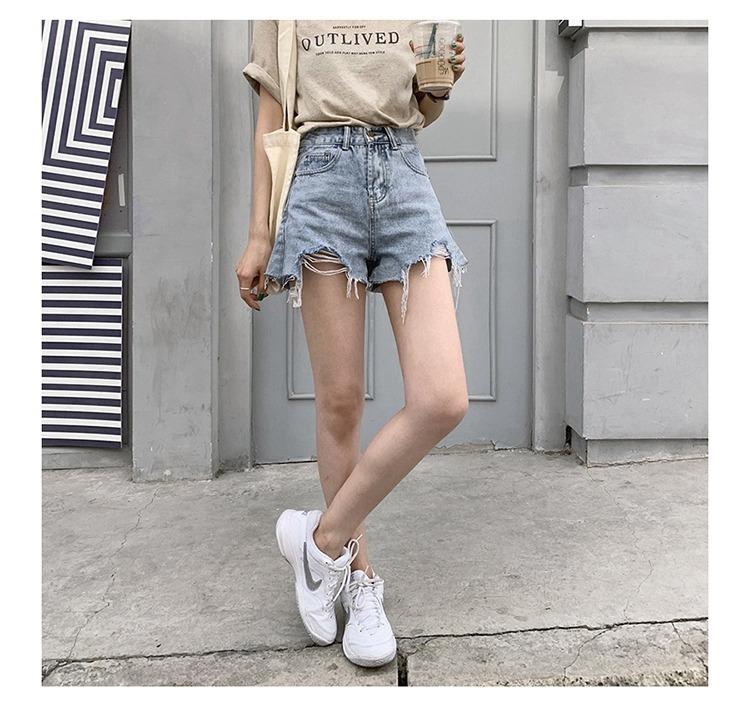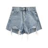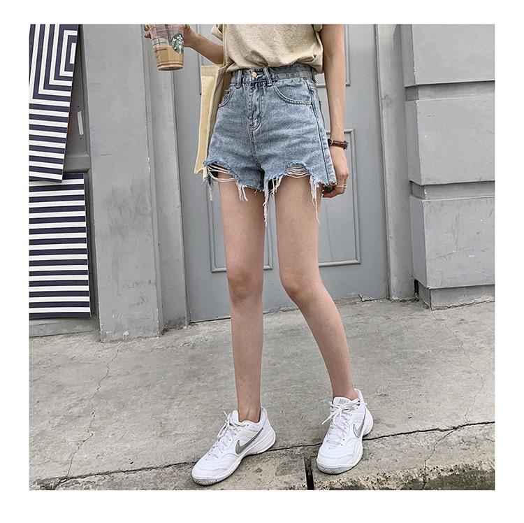 Pantalones cortos vaqueros rotos para mujer, diseño de cintura alta de verano, estilo nicho, adelgazantes, de corte A, pantalones cortos sexys de pierna ancha para chicas sexys.