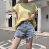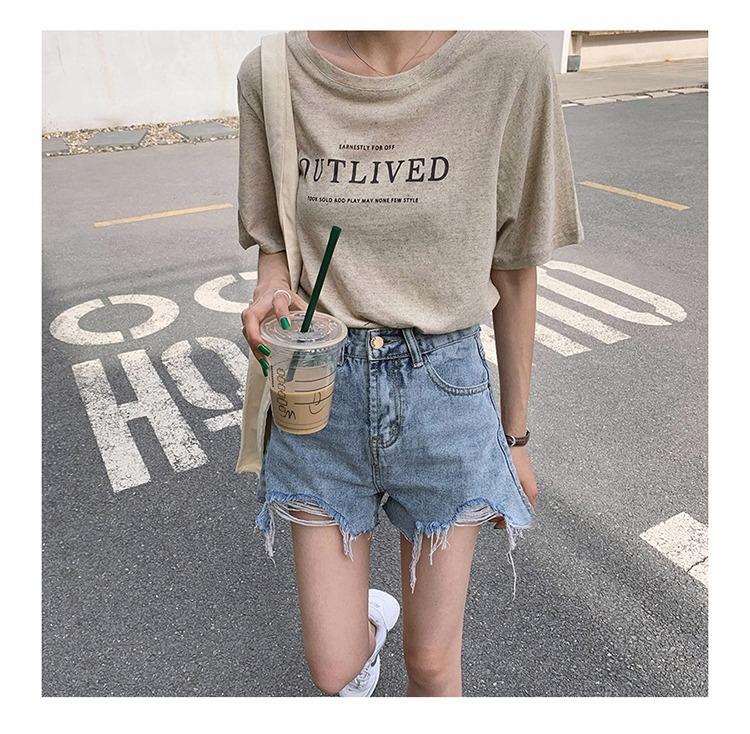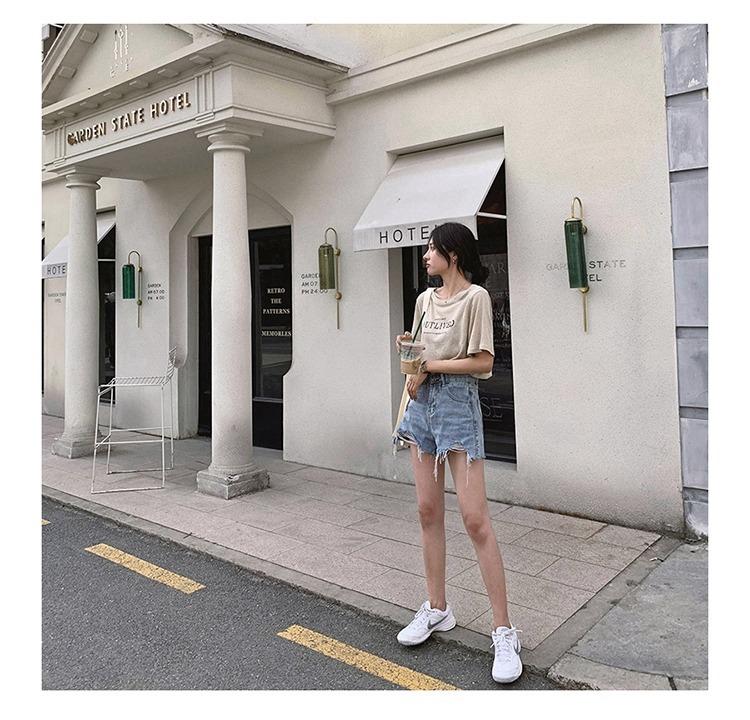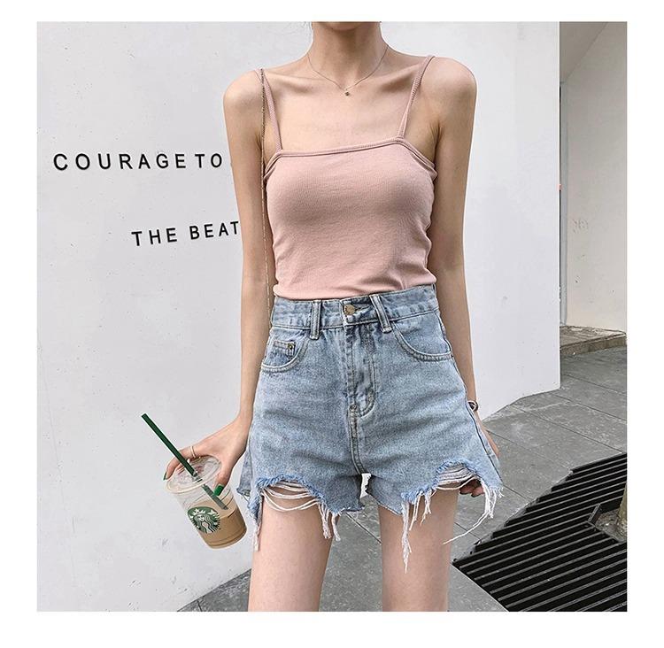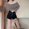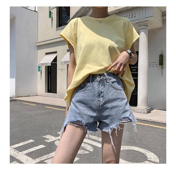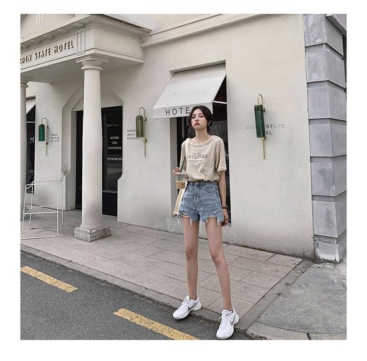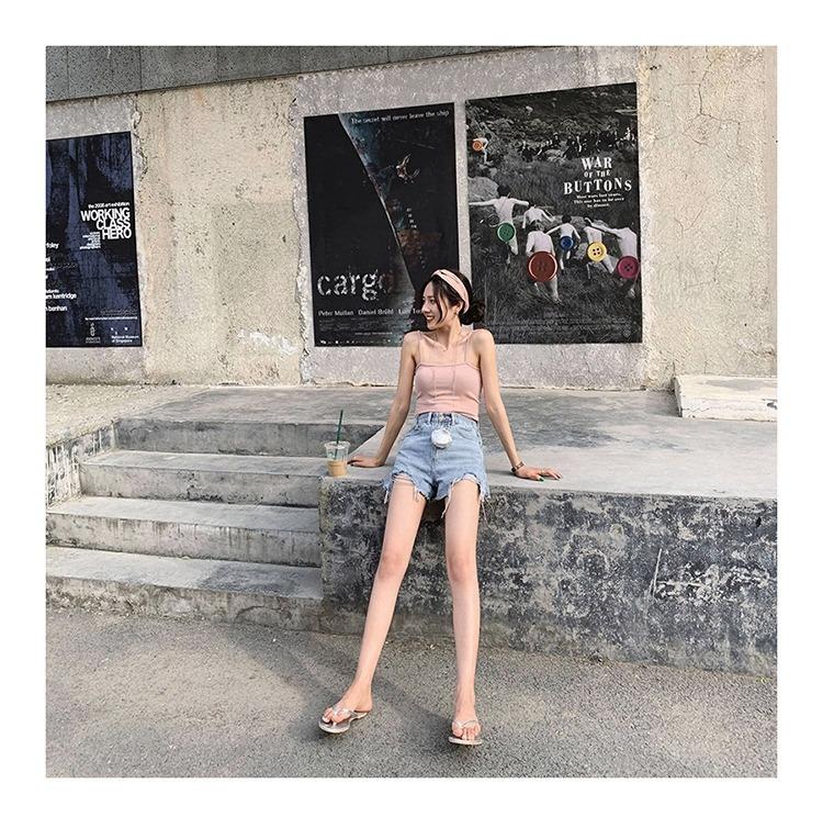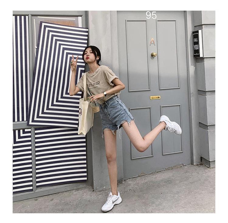 Pantalones cortos vaqueros rotos para mujer, diseño de cintura alta de verano, estilo nicho, adelgazantes, de corte A, pantalones cortos sexys de pierna ancha para chicas sexys.