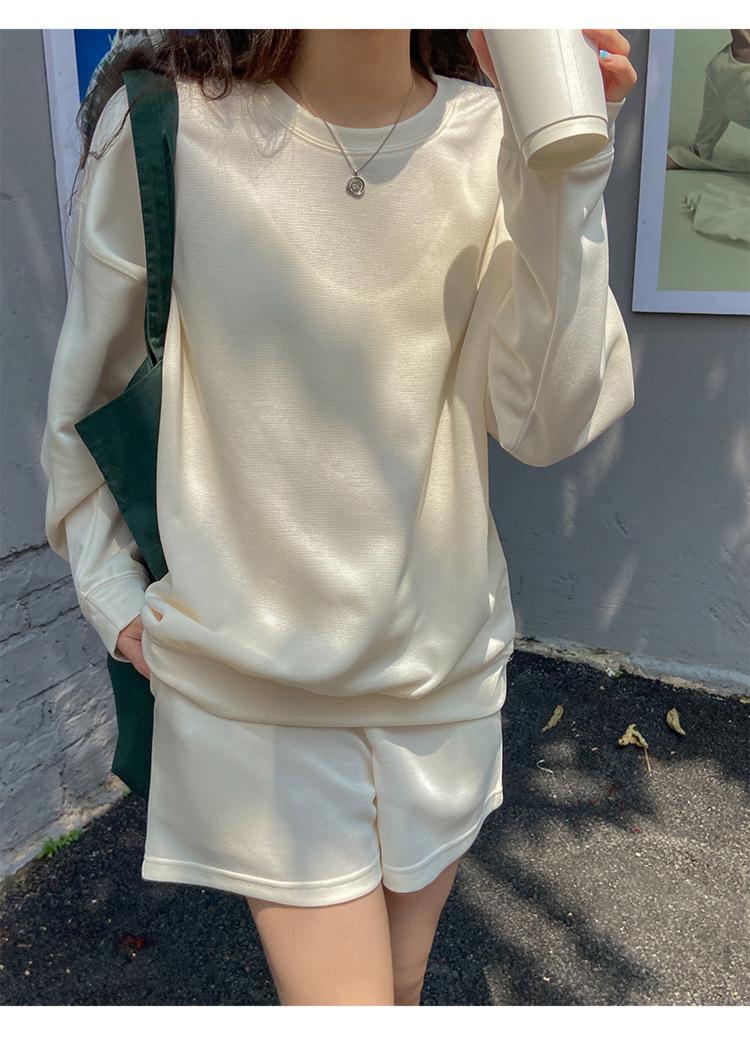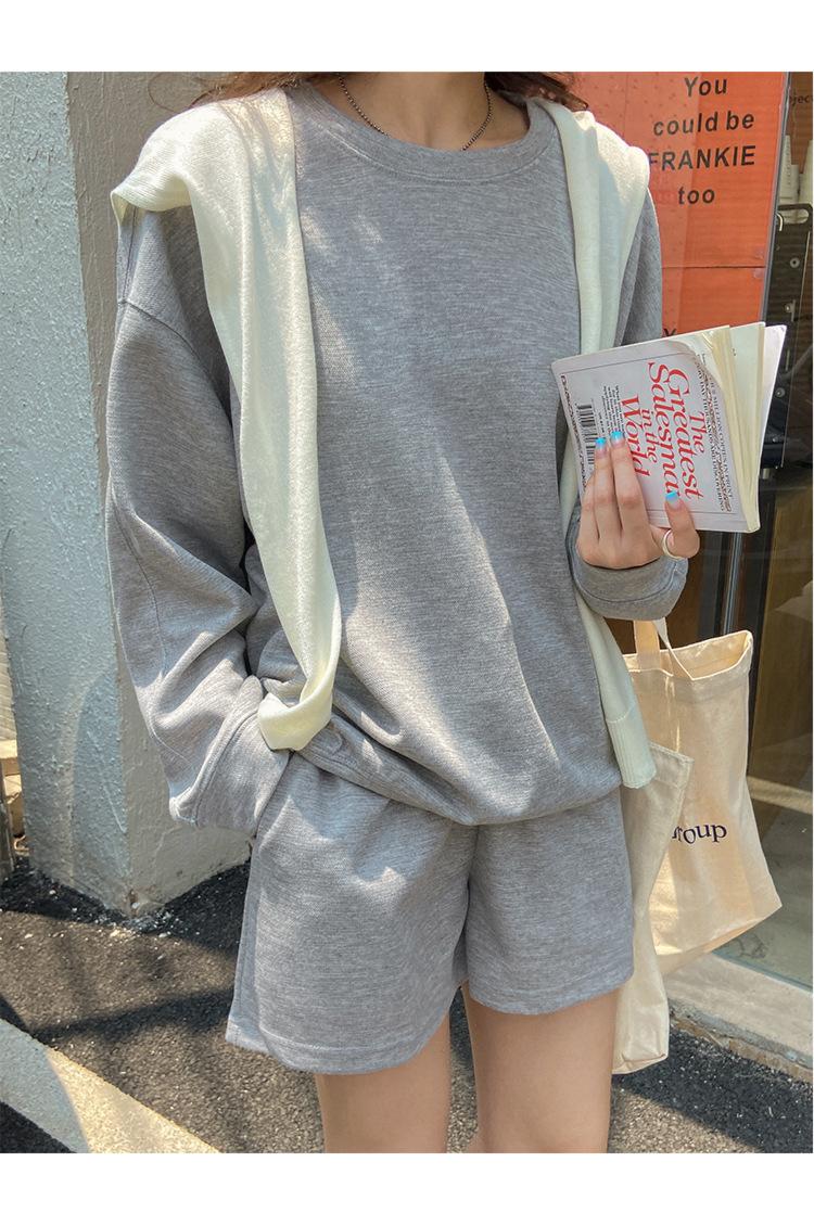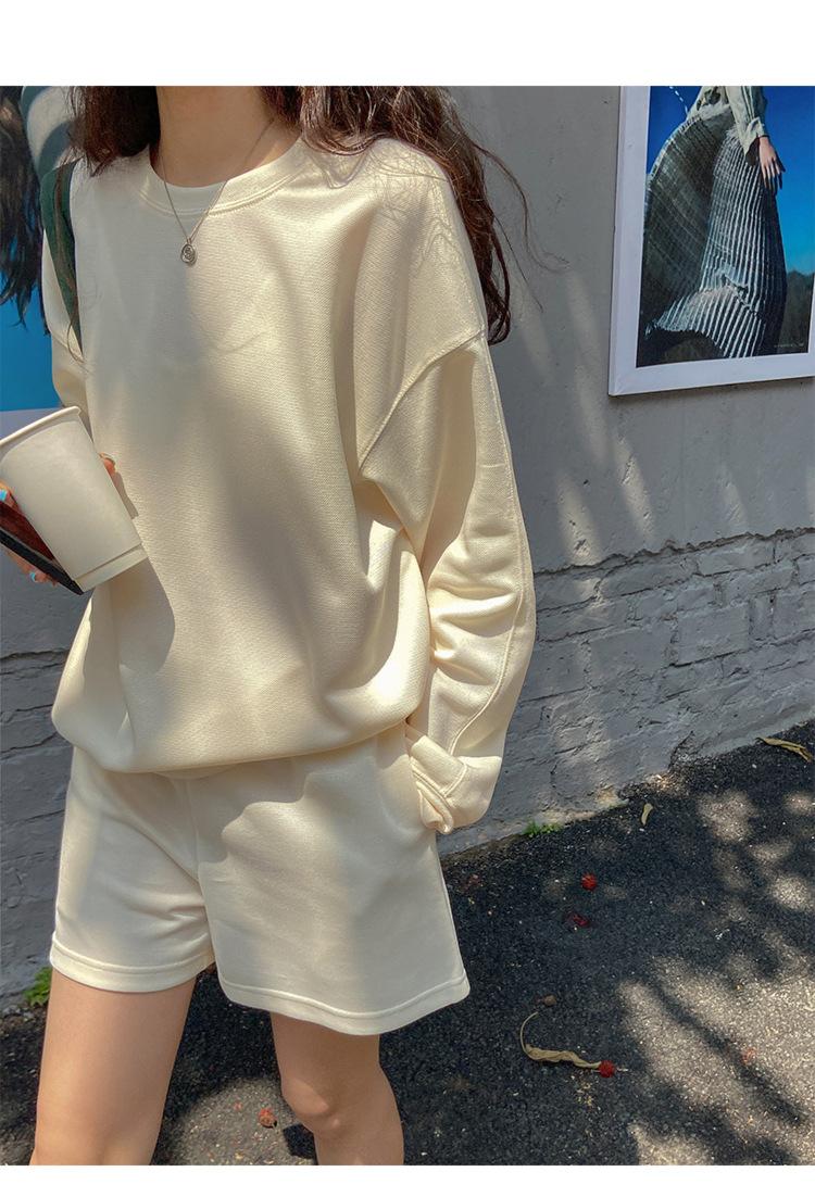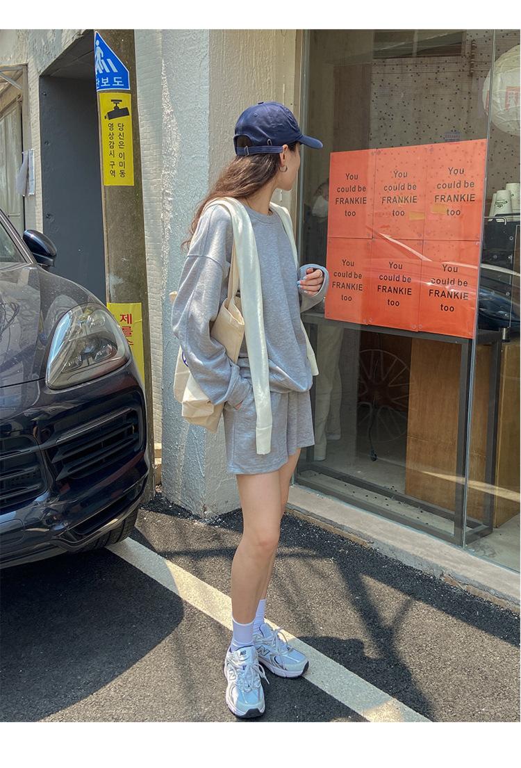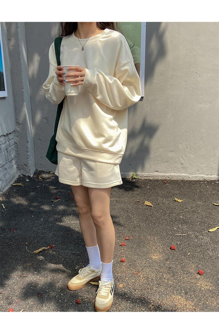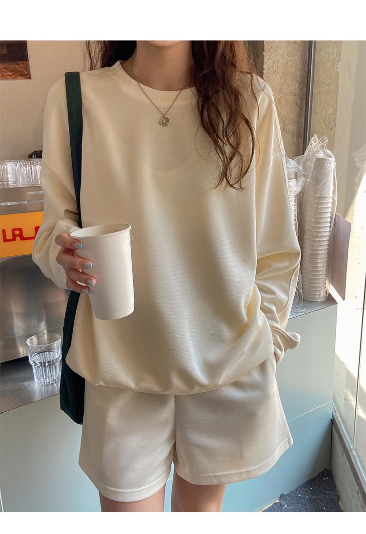 Oferta especial, traje deportivo holgado de moda para mujer, primavera y verano 2022, nuevo jersey de manga larga y pantalones cortos de dos piezas 5088