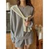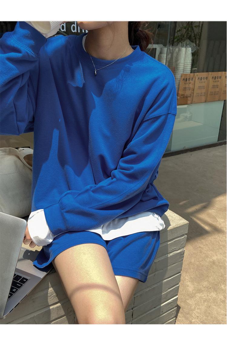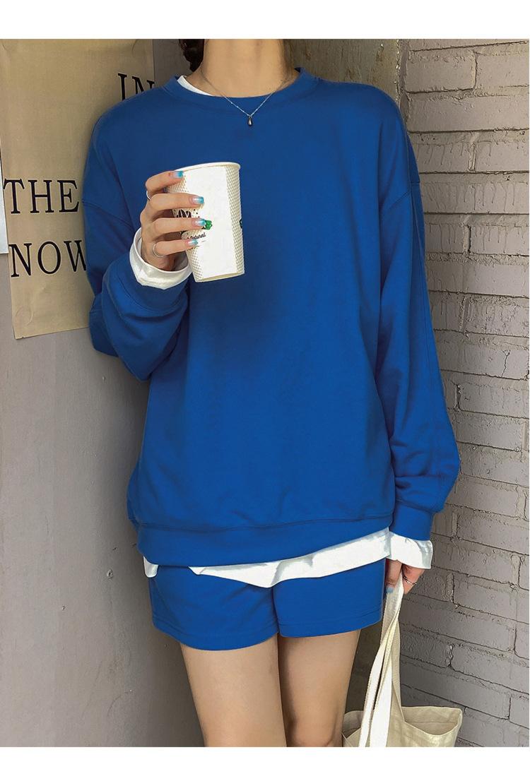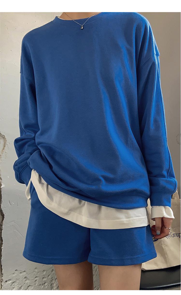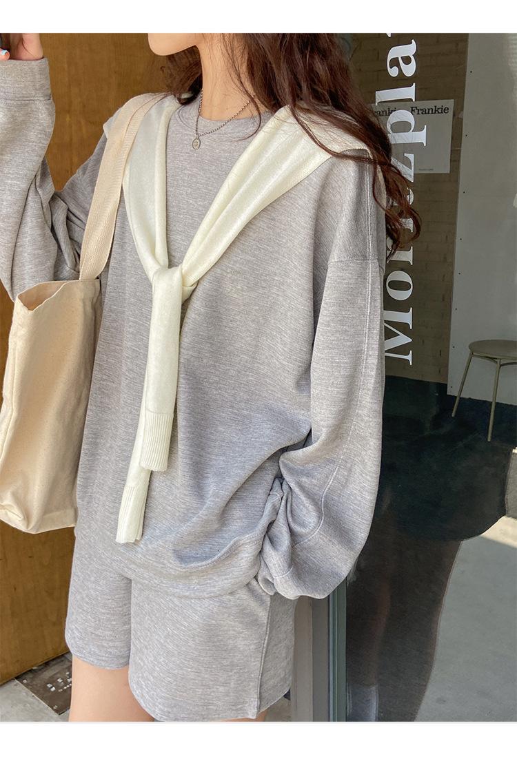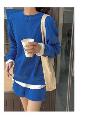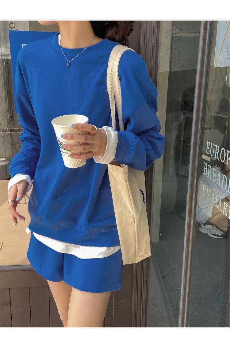 Oferta especial, traje deportivo holgado de moda para mujer, primavera y verano 2022, nuevo jersey de manga larga y pantalones cortos de dos piezas 5088