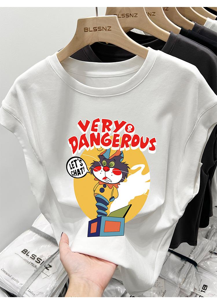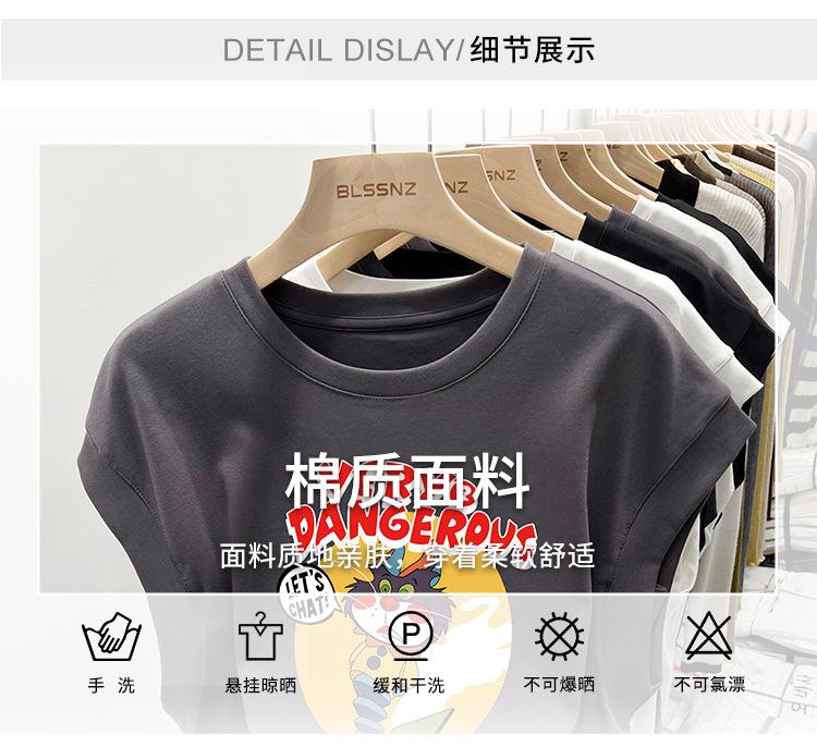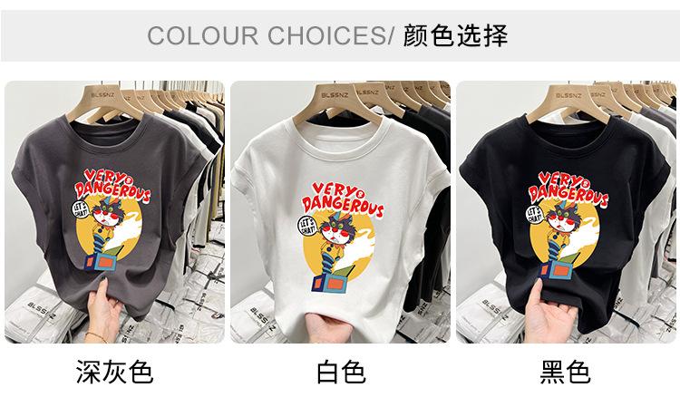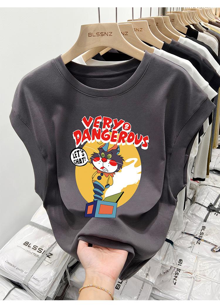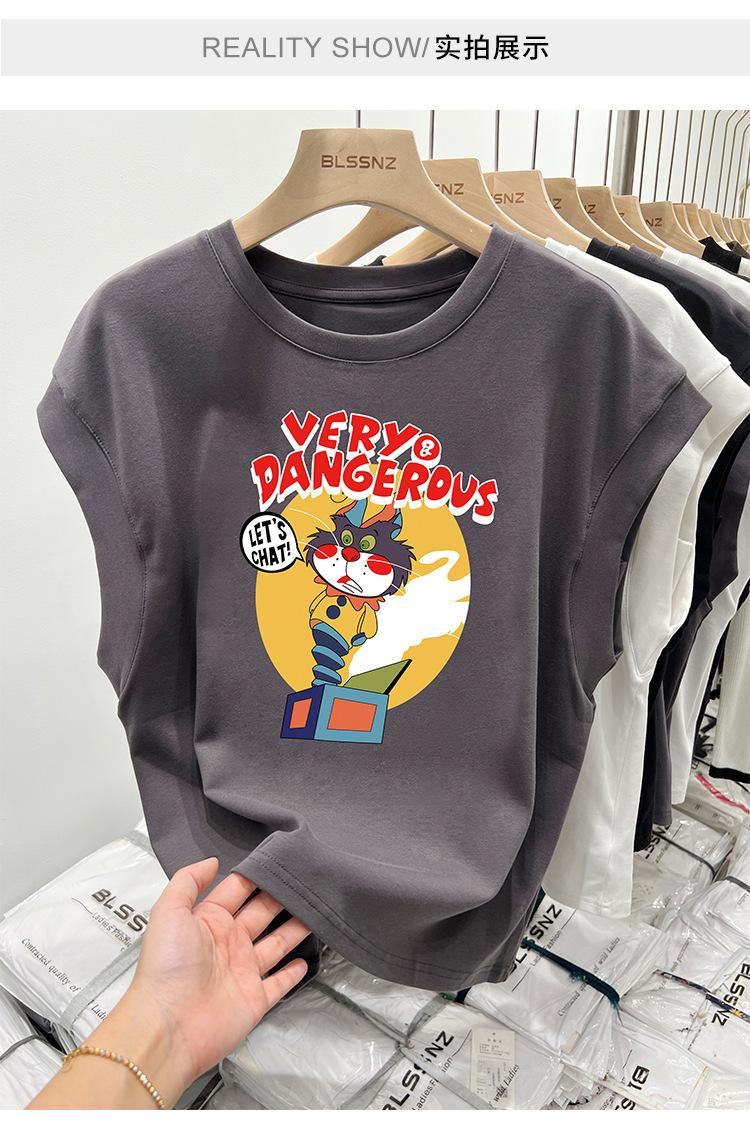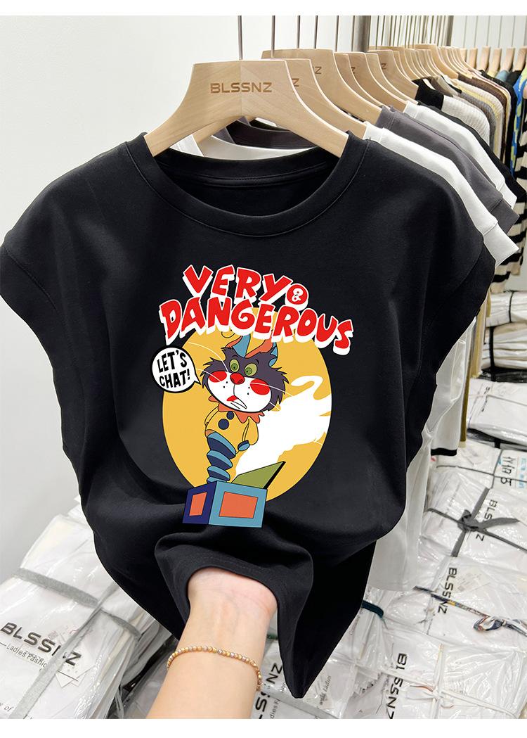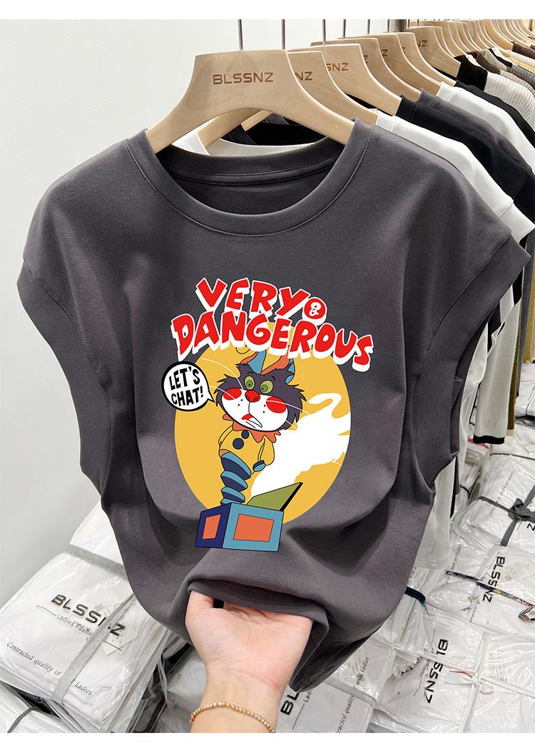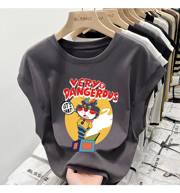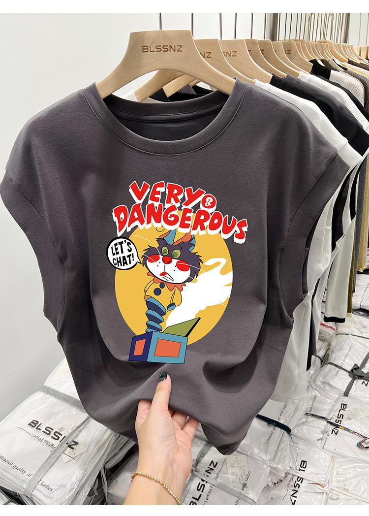 Camiseta estampada de cuello redondo para mujer, holgada, sin mangas, estilo retro americano, para verano 2023