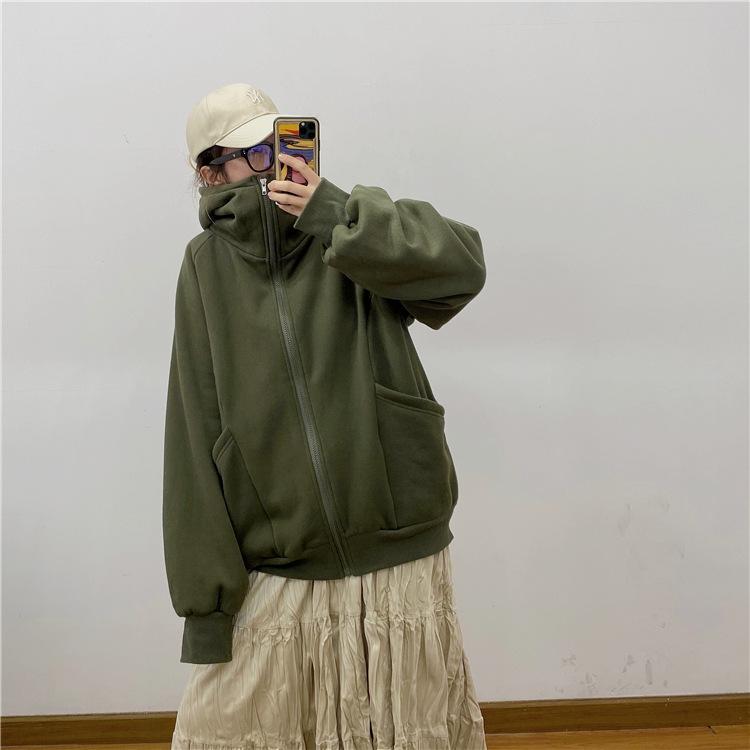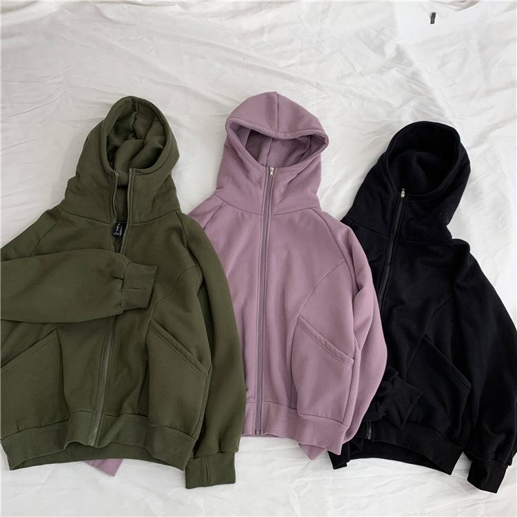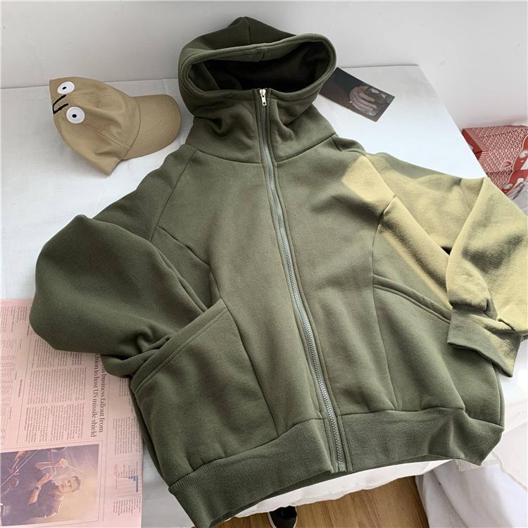 Sudadera con cremallera, cuello alto cortavientos y capucha
