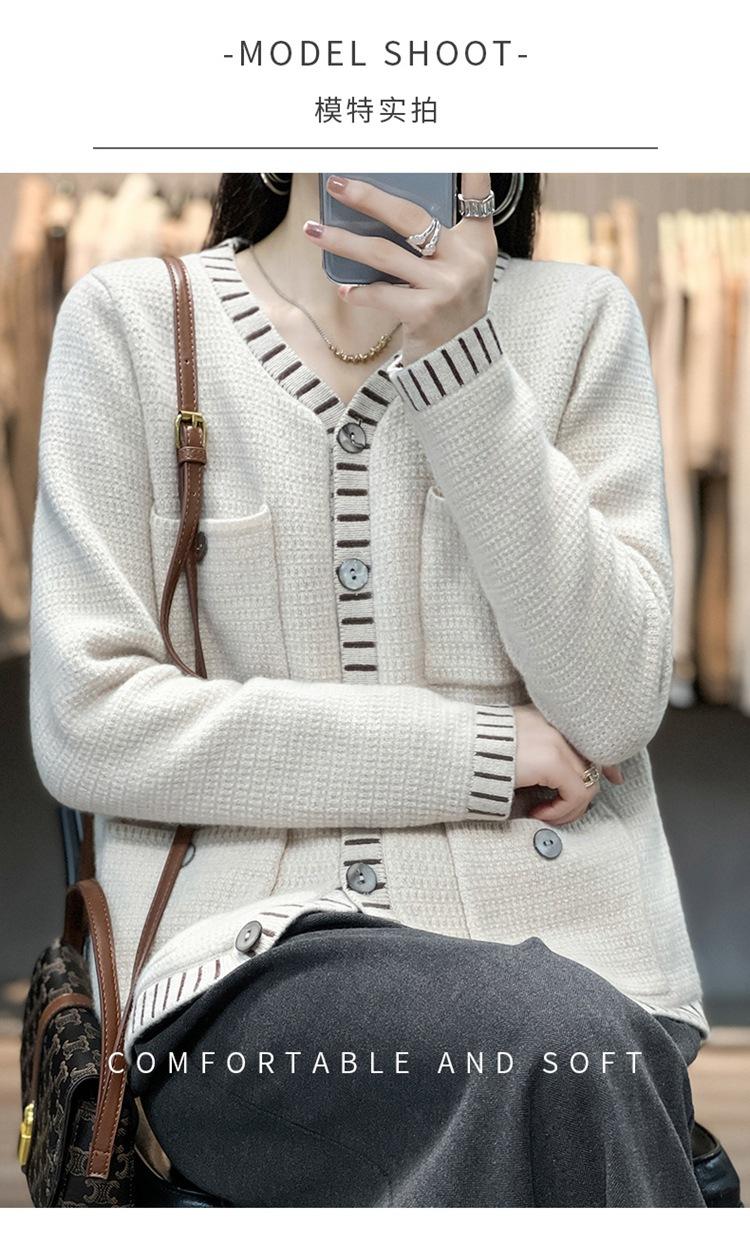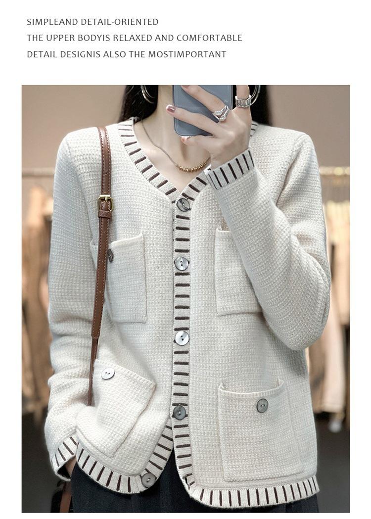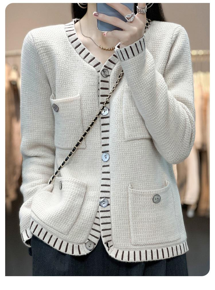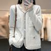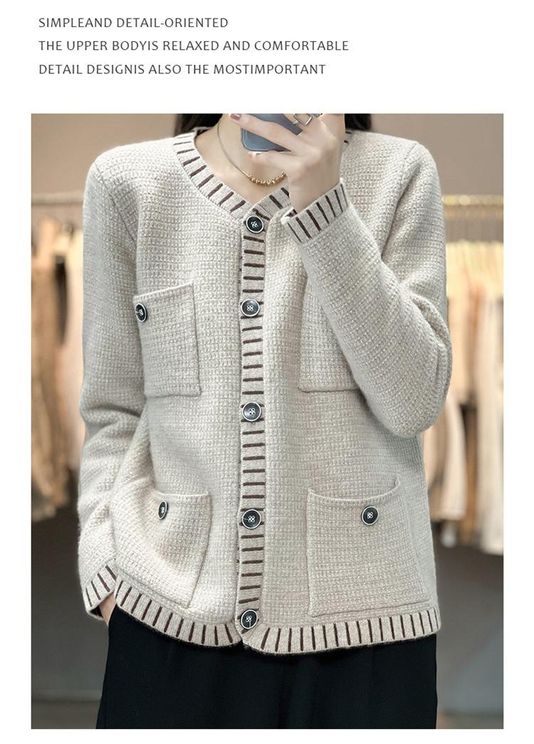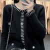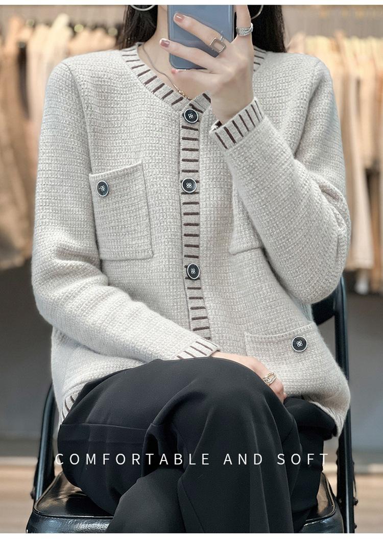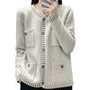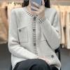 Cárdigan de cachemira de lujo de estilo coreano para mujer, elegante chaqueta de punto con cuello redondo, holgada y combinable, cárdigan adelgazante de moda para otoño e invierno.