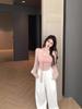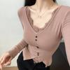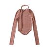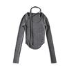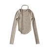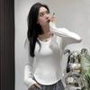 Camiseta de manga larga con dobladillo curvo para chica, nueva prenda de otoño 2023, con cuello redondo, ajustada y cinta, para mujer, venta al por mayor