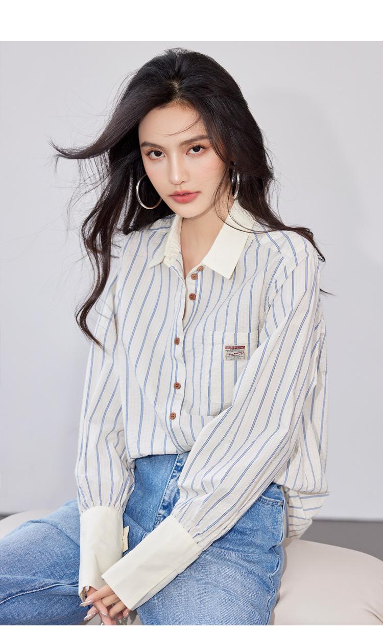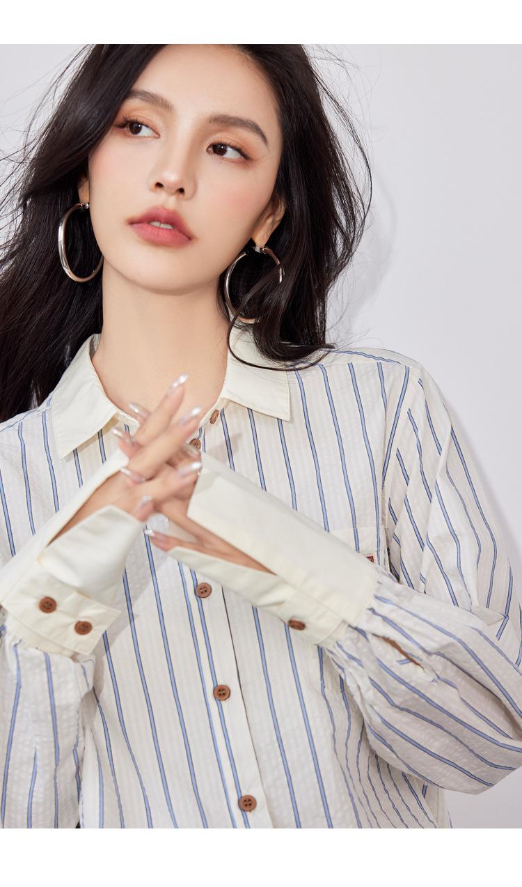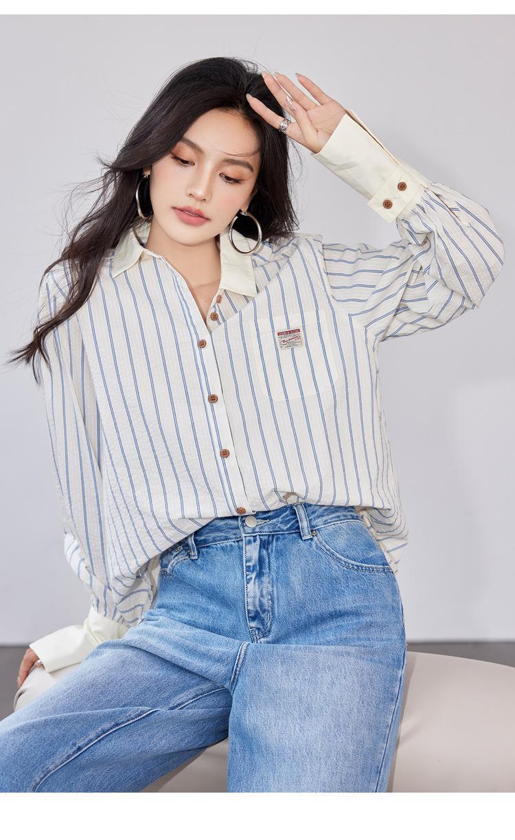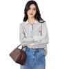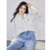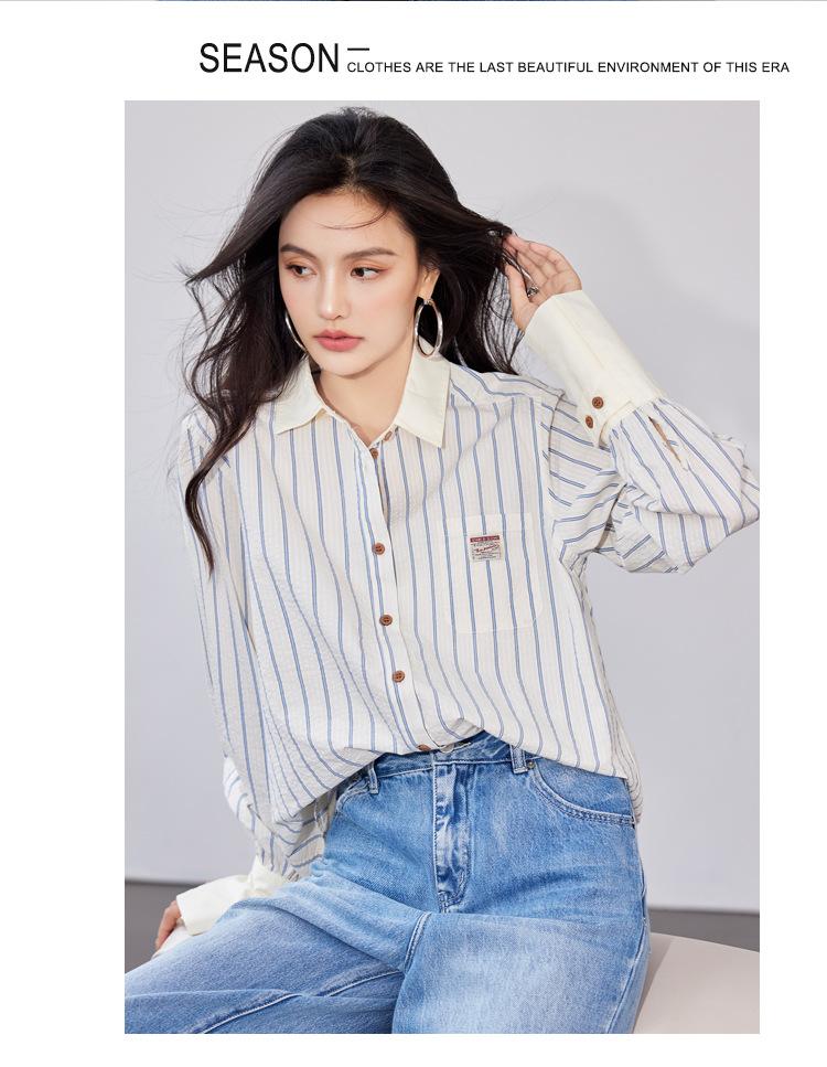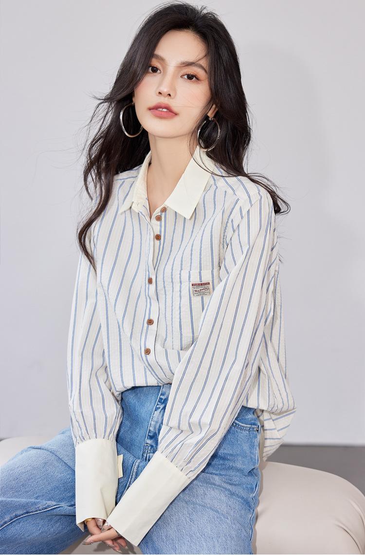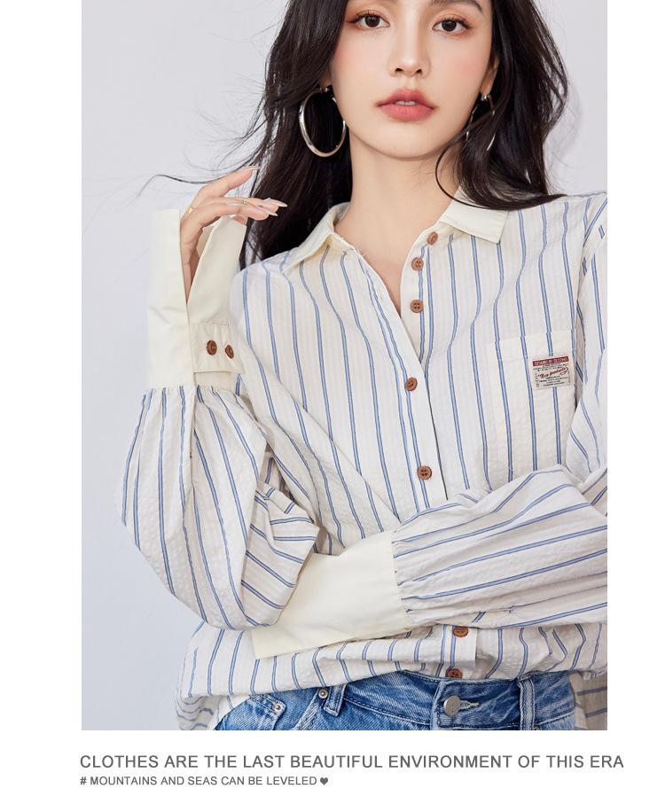 Camisa blanca de manga larga a rayas con textura francesa para mujer, diseño de otoño, top de nicho con sentido del diseño, prenda interior, camisa de color contrastante