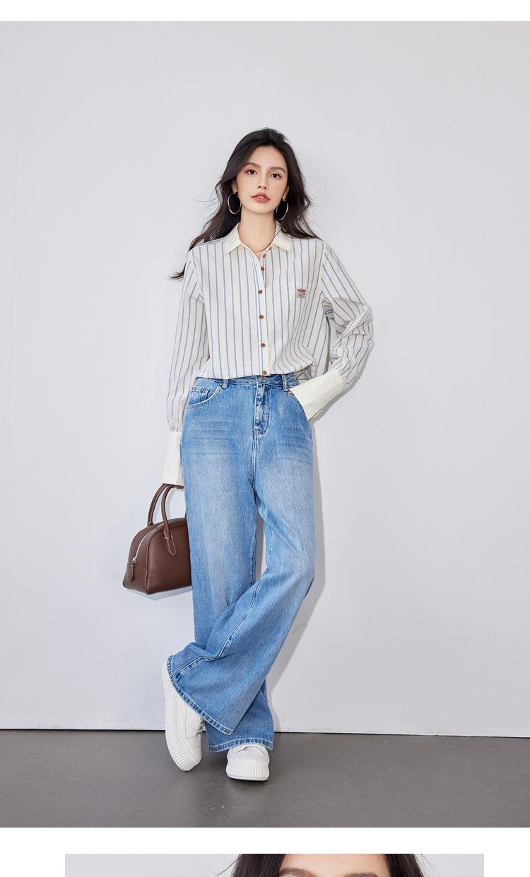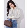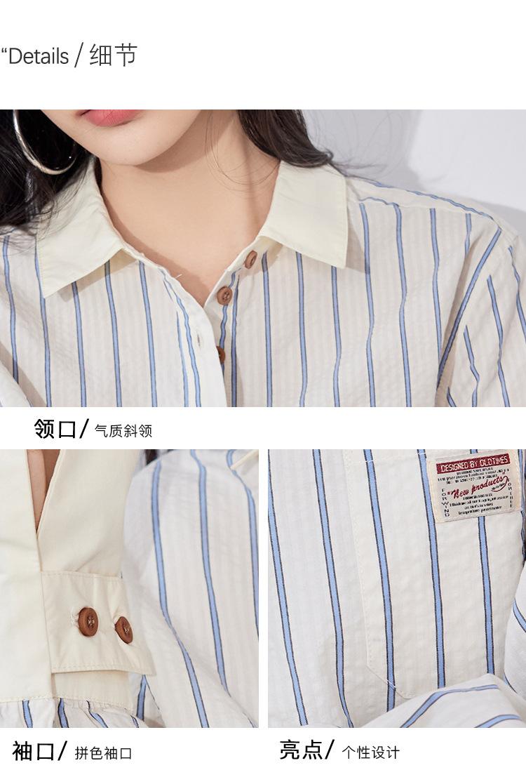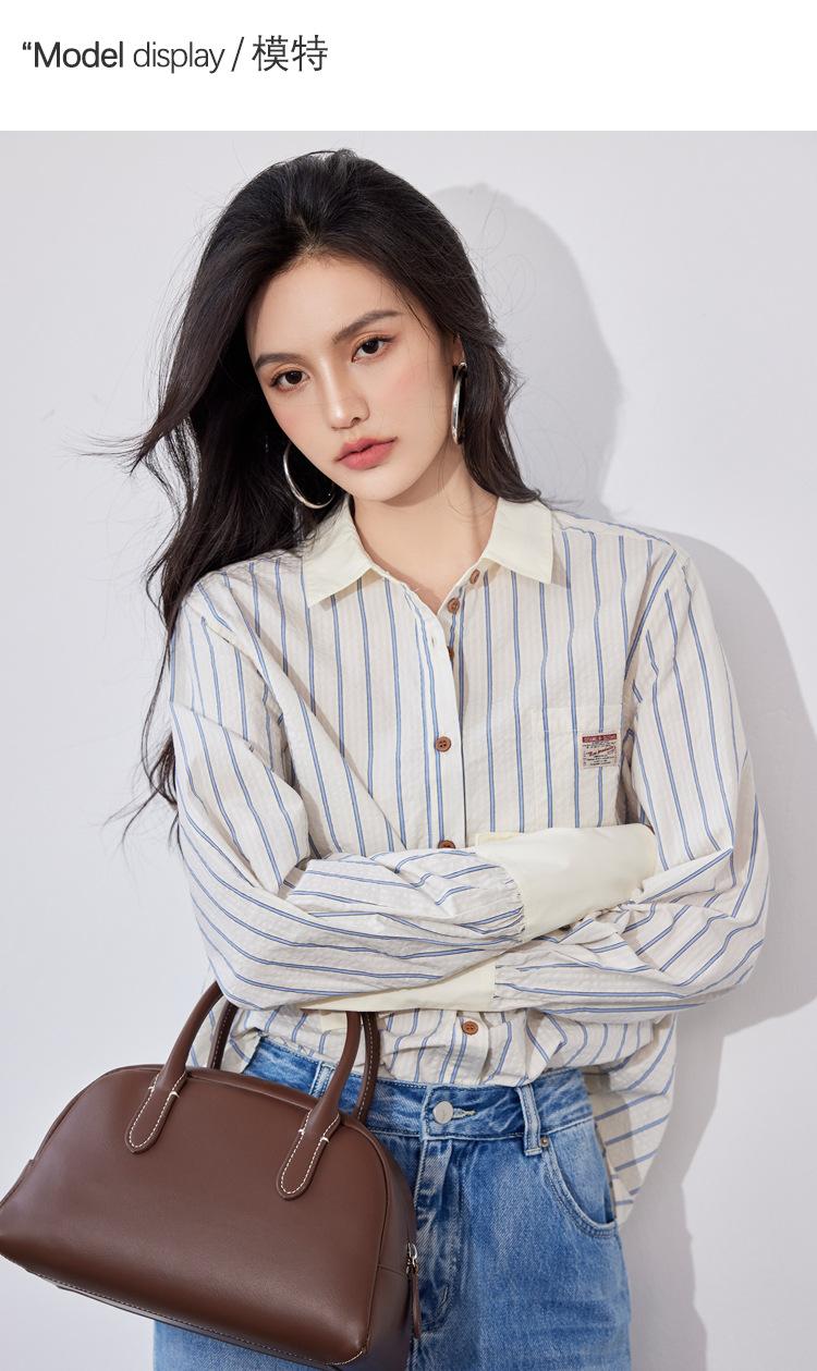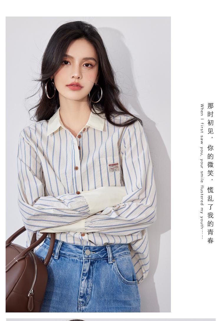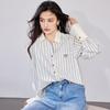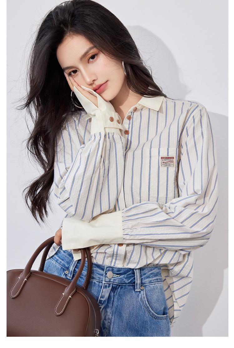 Camisa blanca de manga larga a rayas con textura francesa para mujer, diseño de otoño, top de nicho con sentido del diseño, prenda interior, camisa de color contrastante