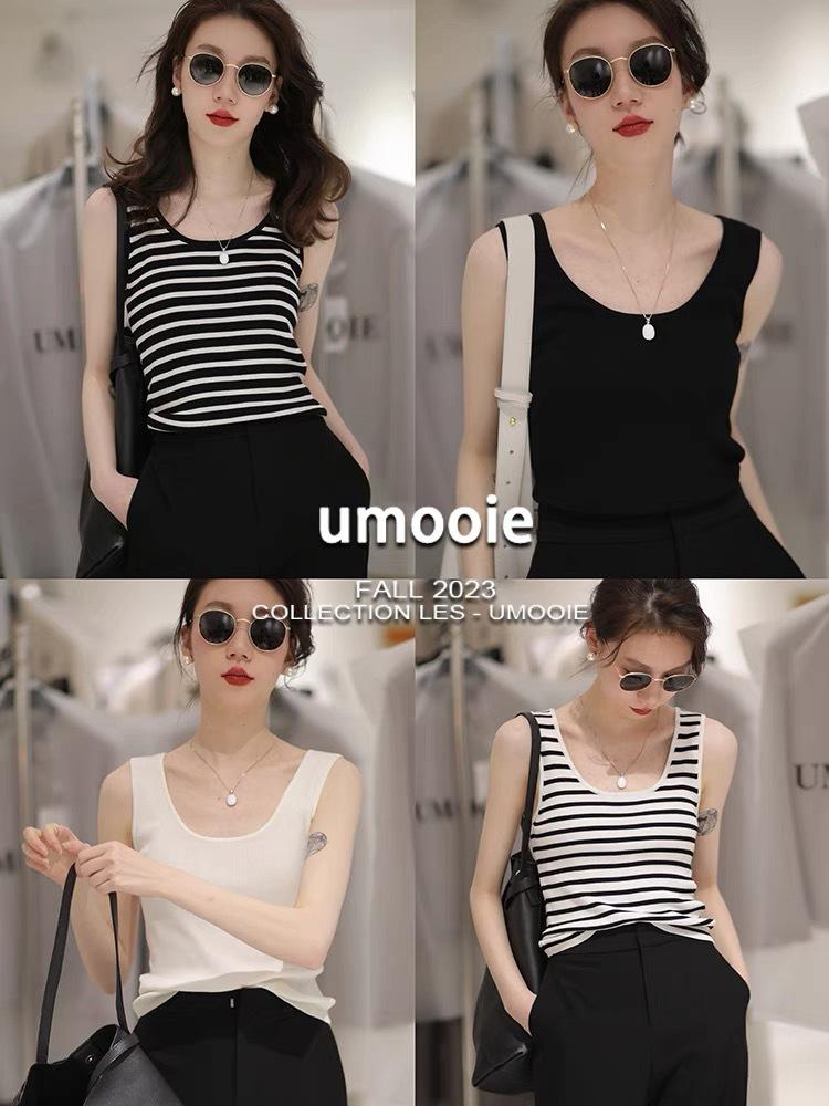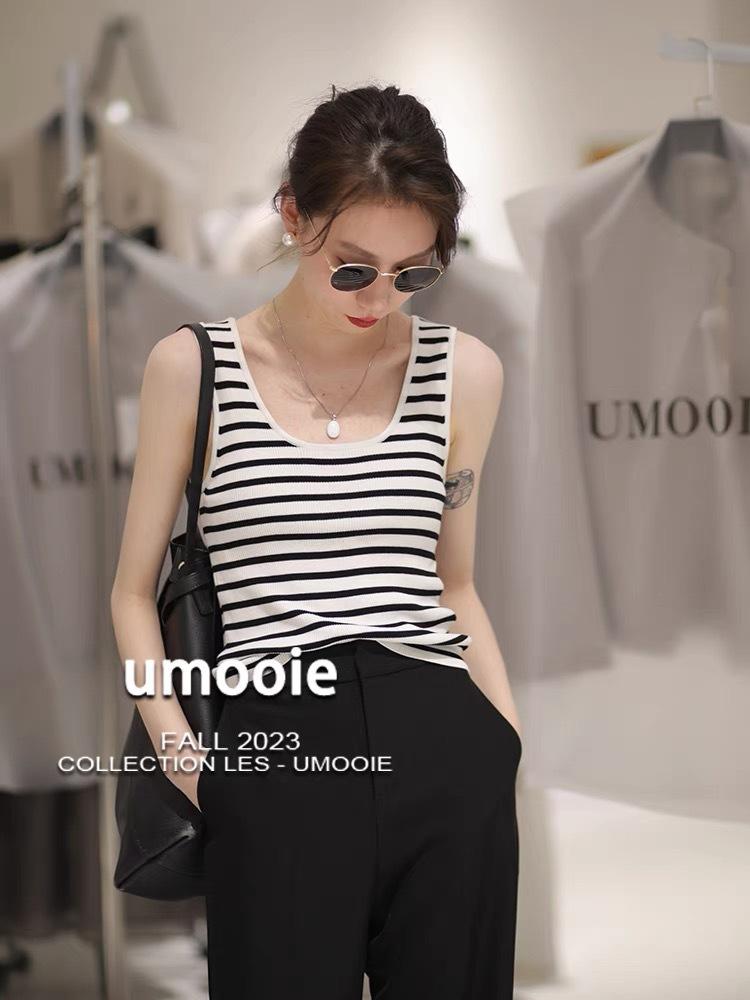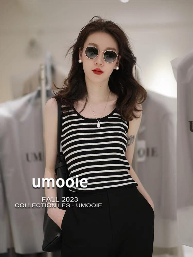 Chaleco de punto a rayas sin mangas para mujer, combinable con todo, diseño de nicho, camisola exterior 2023