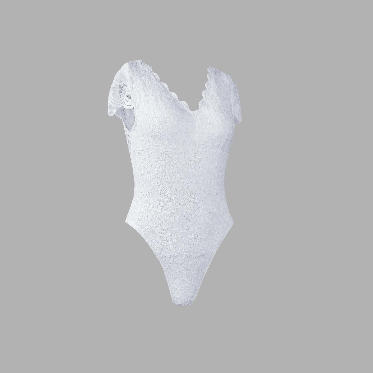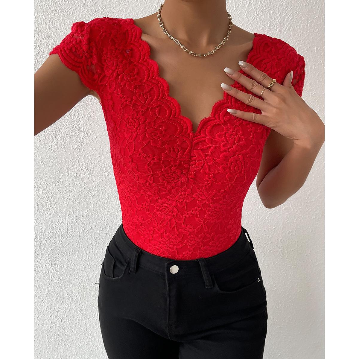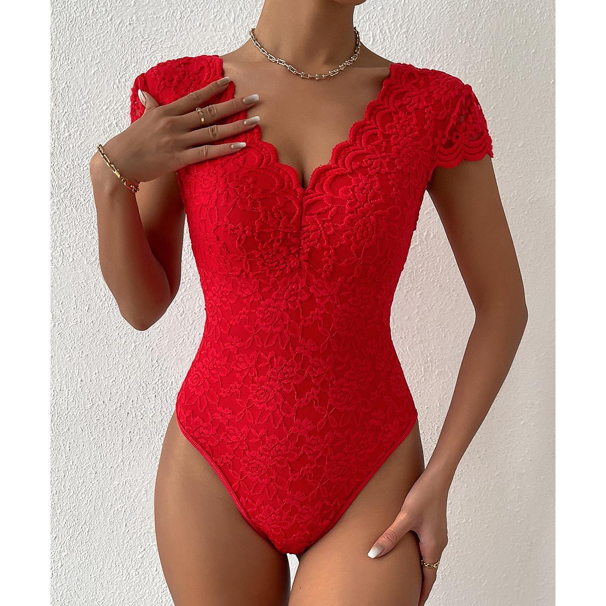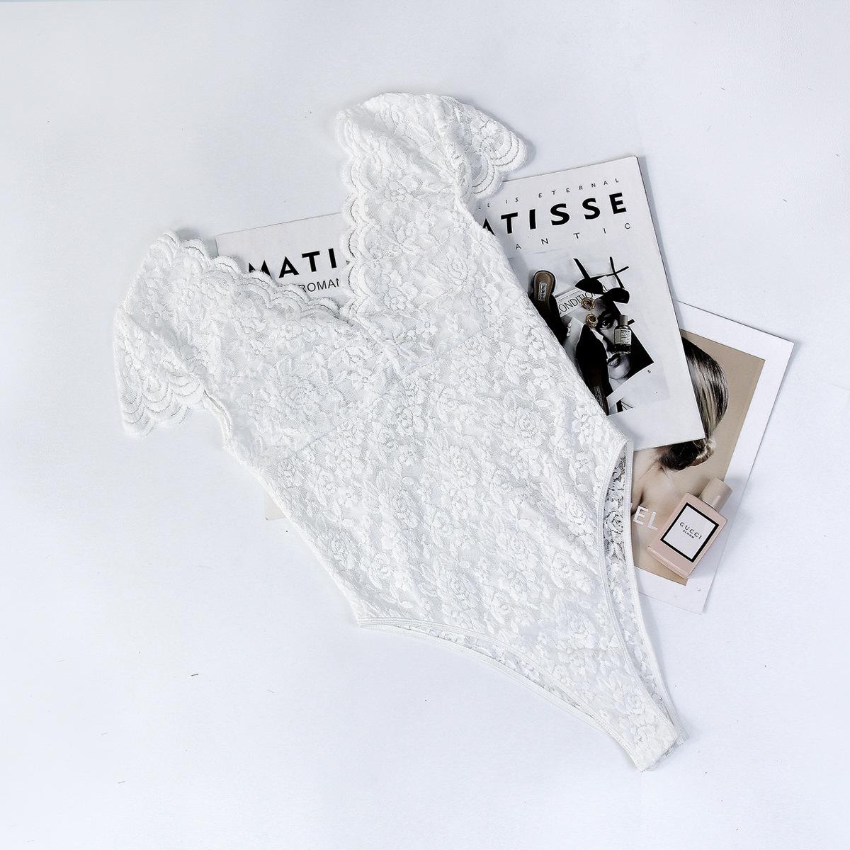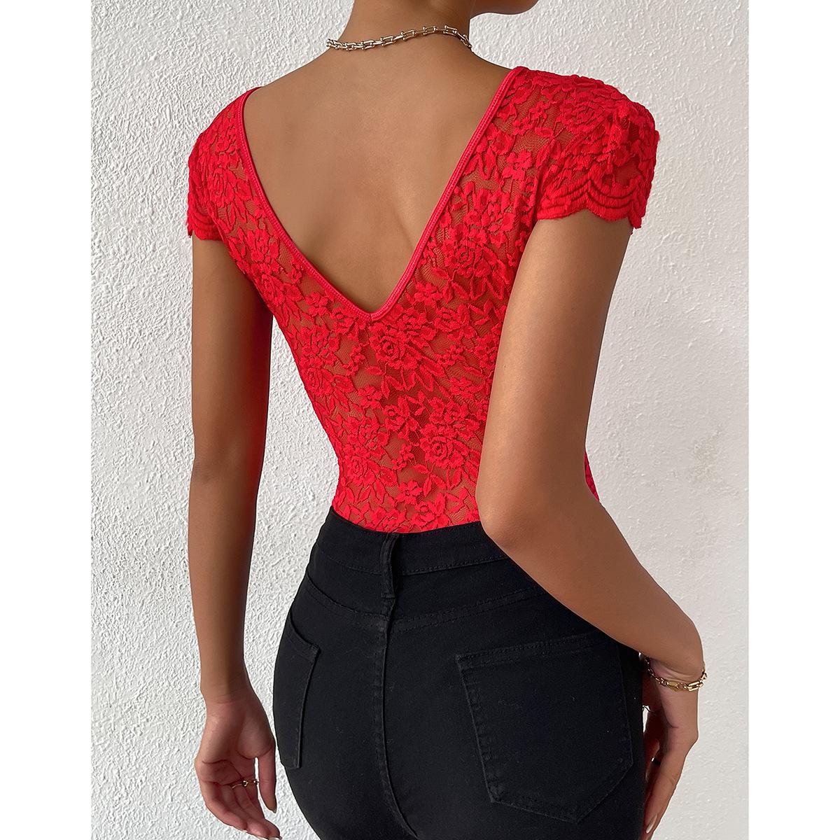 2025 Verano Nuevo Europeo y Americano Color Puro Encaje Transparente Profundo V Espalda Descubierta Diseño Nicho Mono 10512