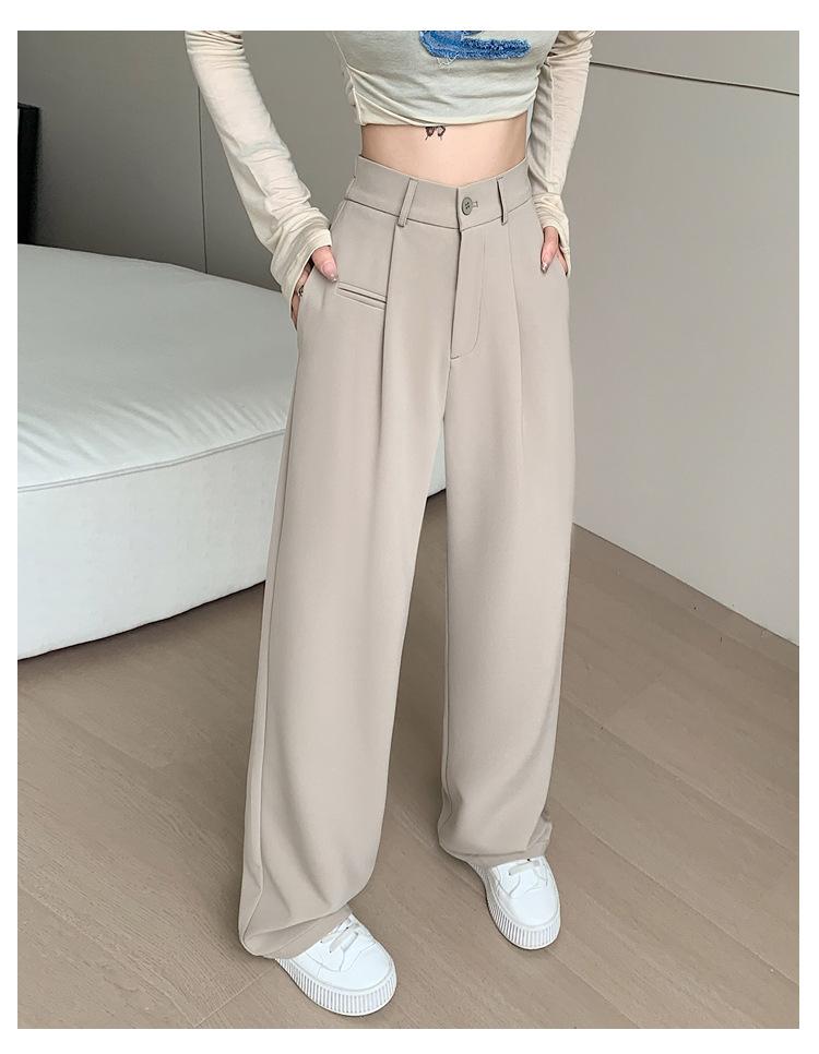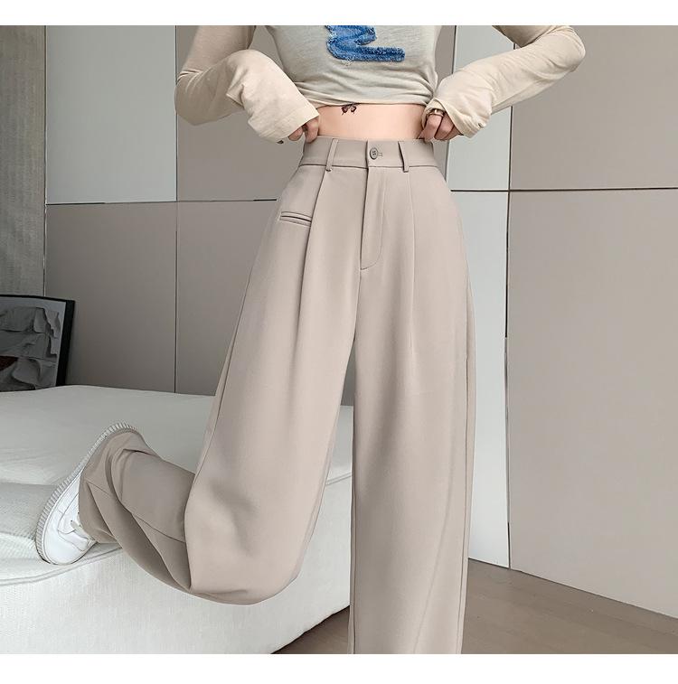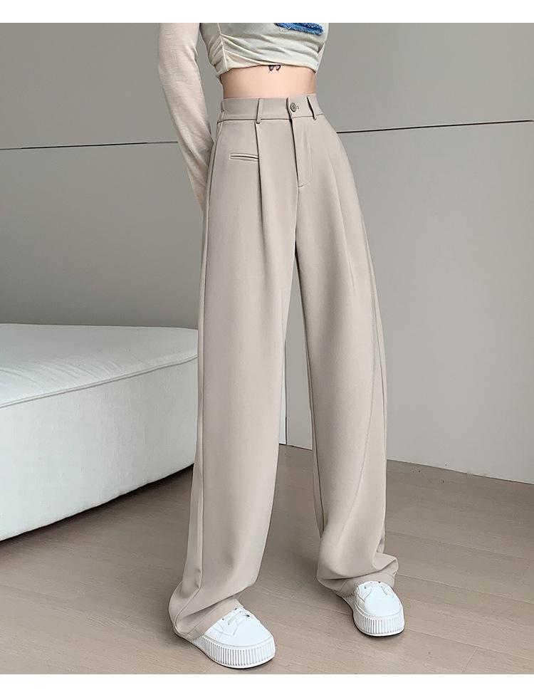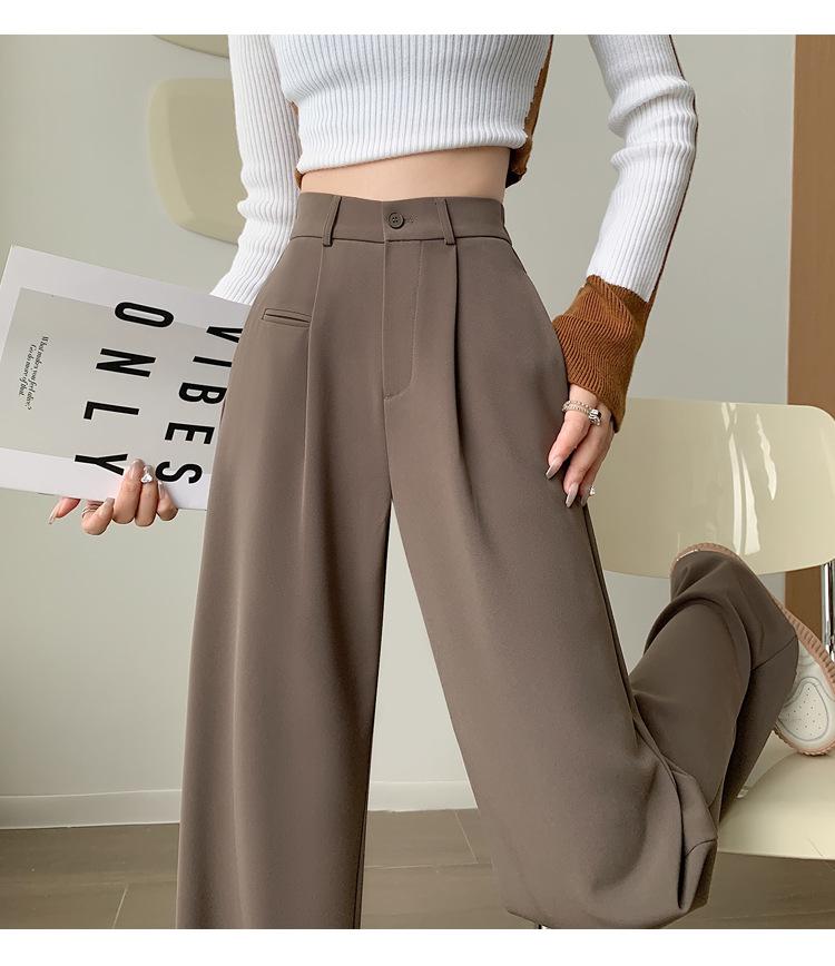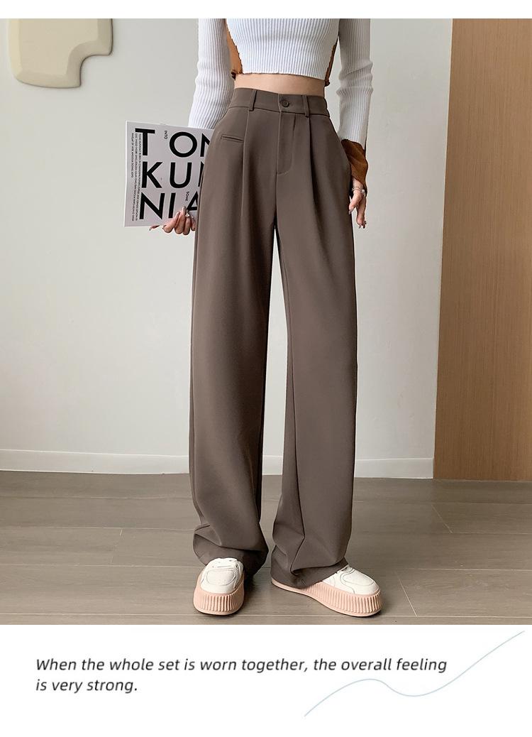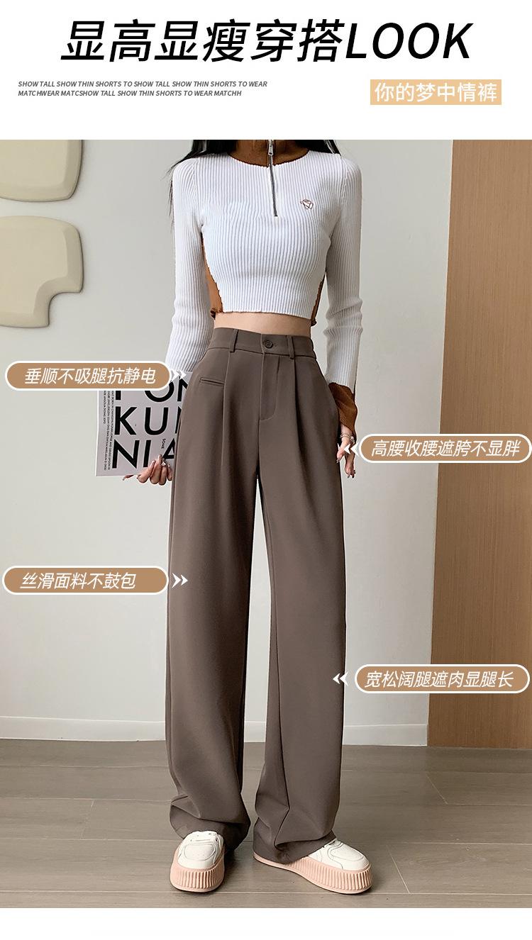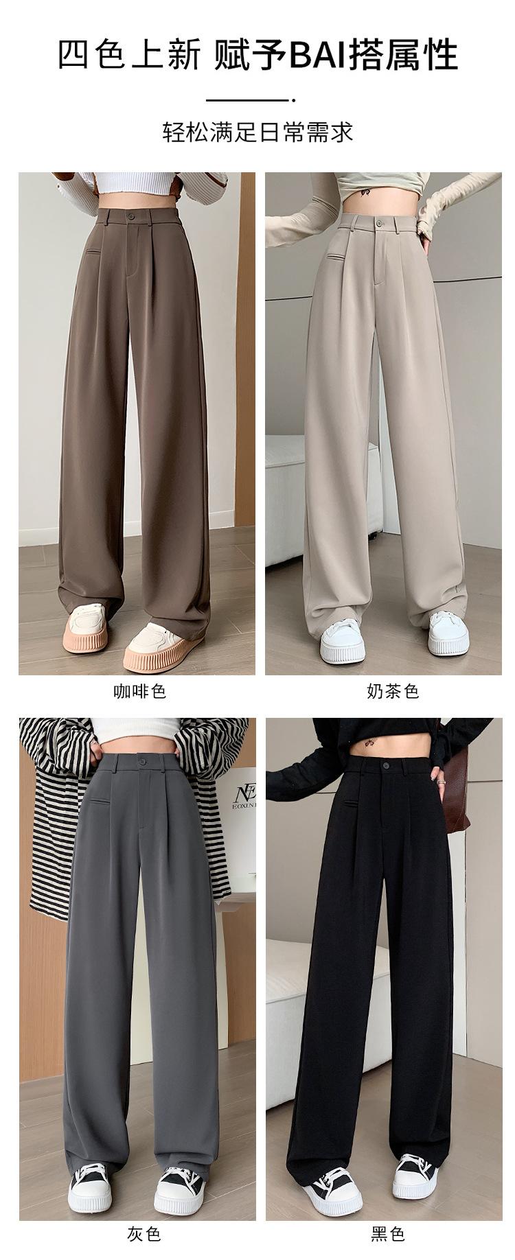 Pantalones de Traje de Mujer de Alta Gama Primavera y Otoño 2024 Nuevo Pantalón de Pierna Ancha Drapeado de Cintura Alta Pantalones Holgados Adelgazantes Versión Estrecha Pantalones Largos hasta el Piso