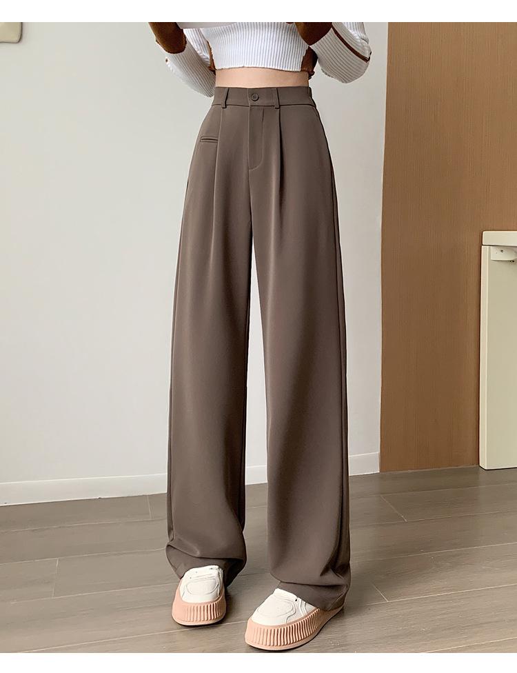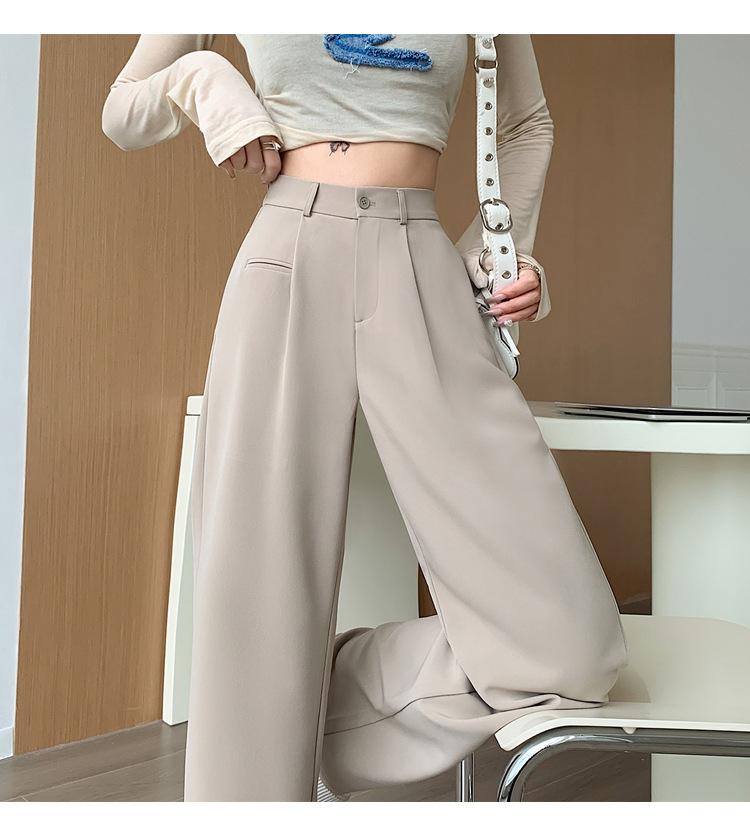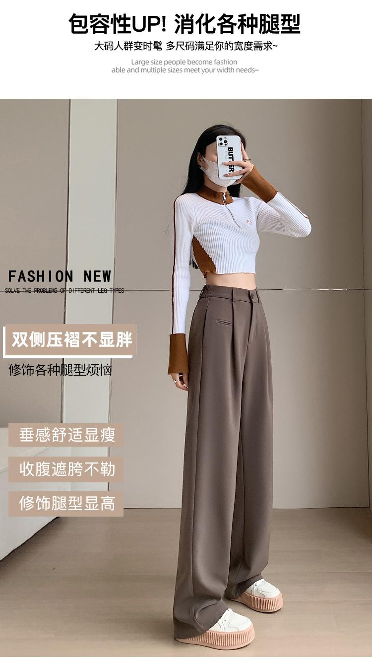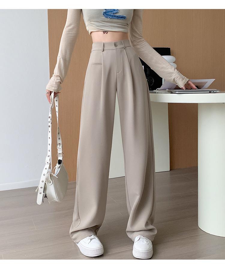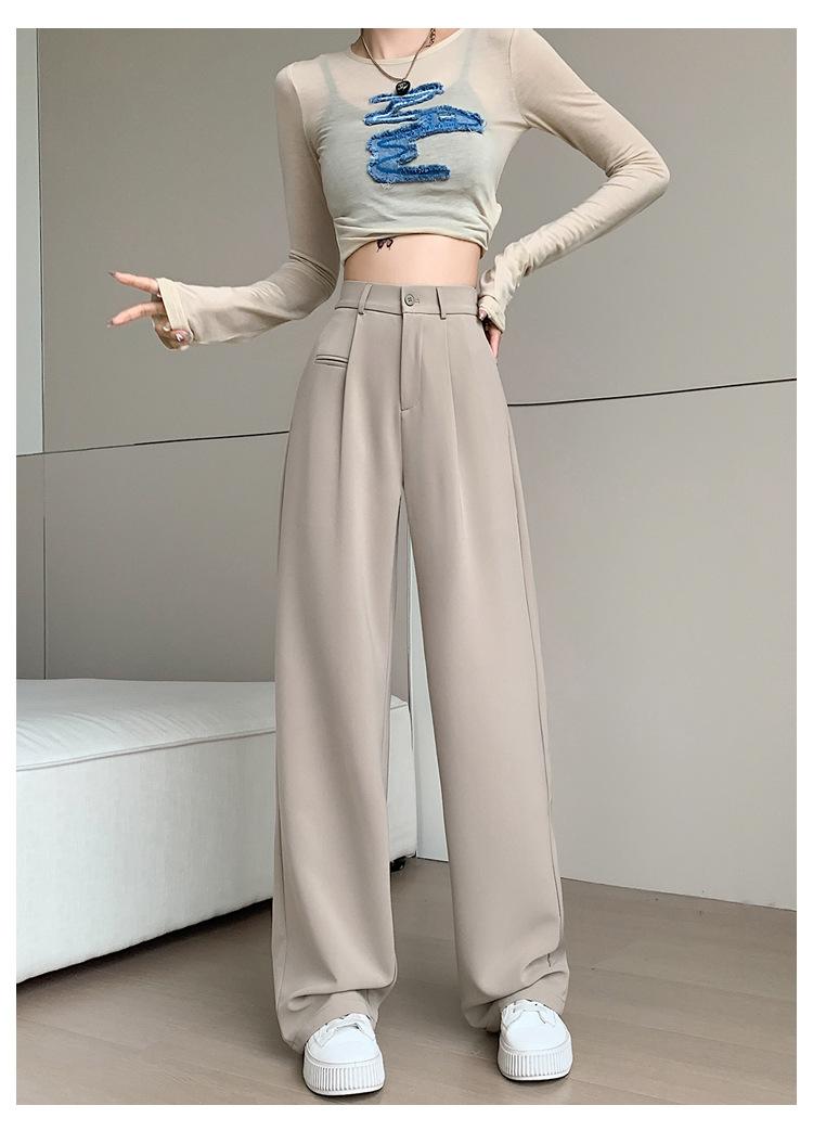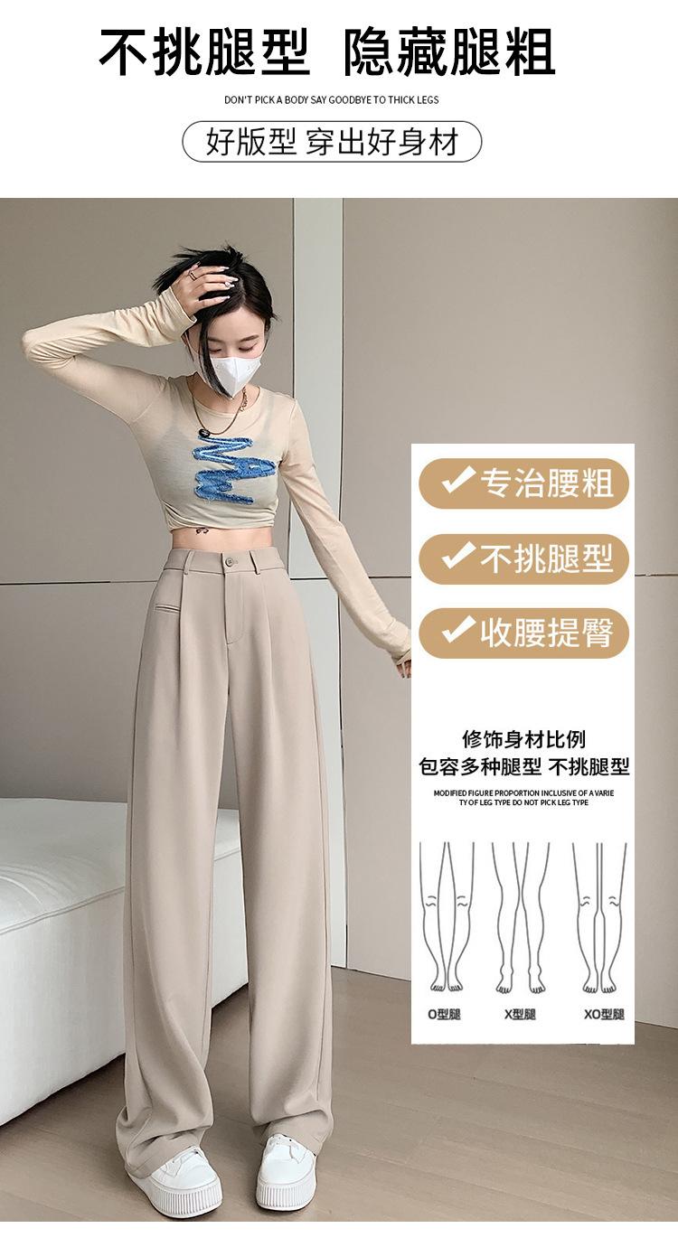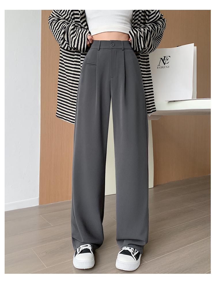 Pantalones de Traje de Mujer de Alta Gama Primavera y Otoño 2024 Nuevo Pantalón de Pierna Ancha Drapeado de Cintura Alta Pantalones Holgados Adelgazantes Versión Estrecha Pantalones Largos hasta el Piso