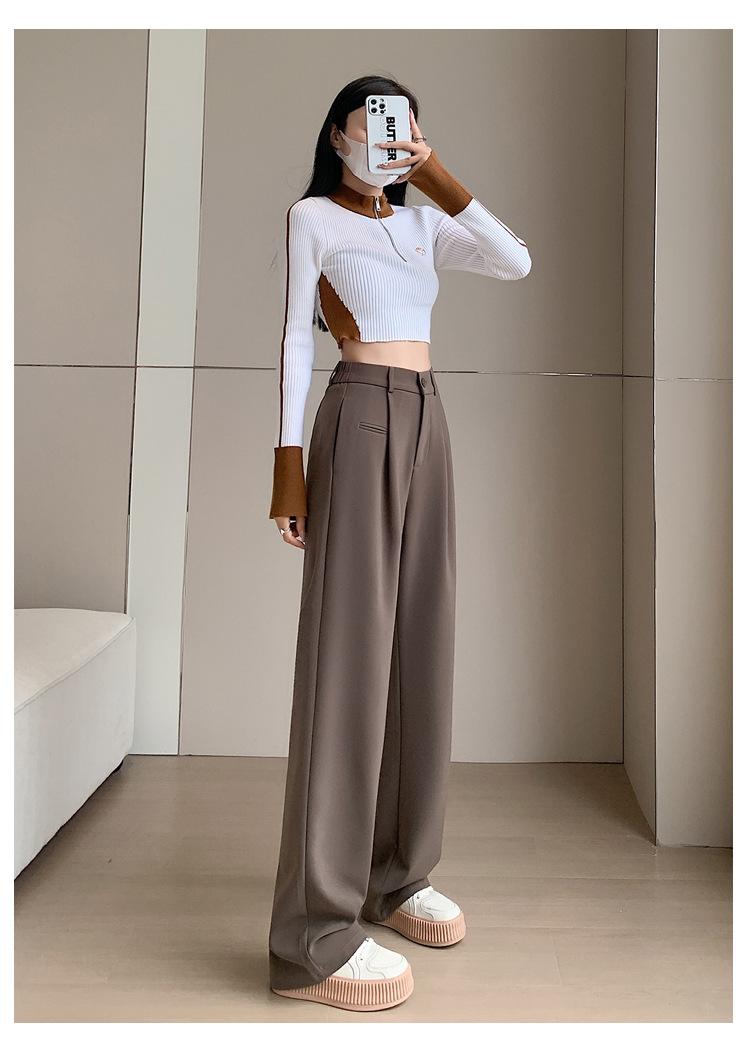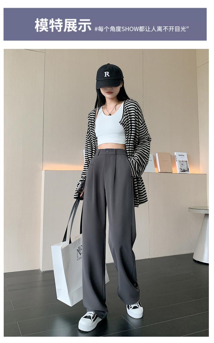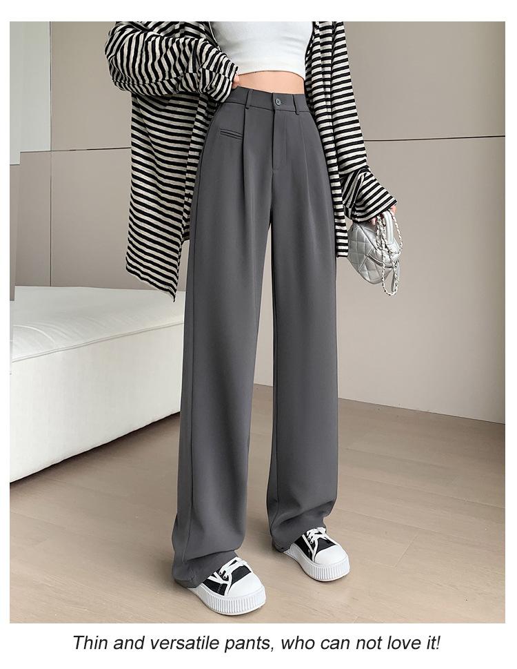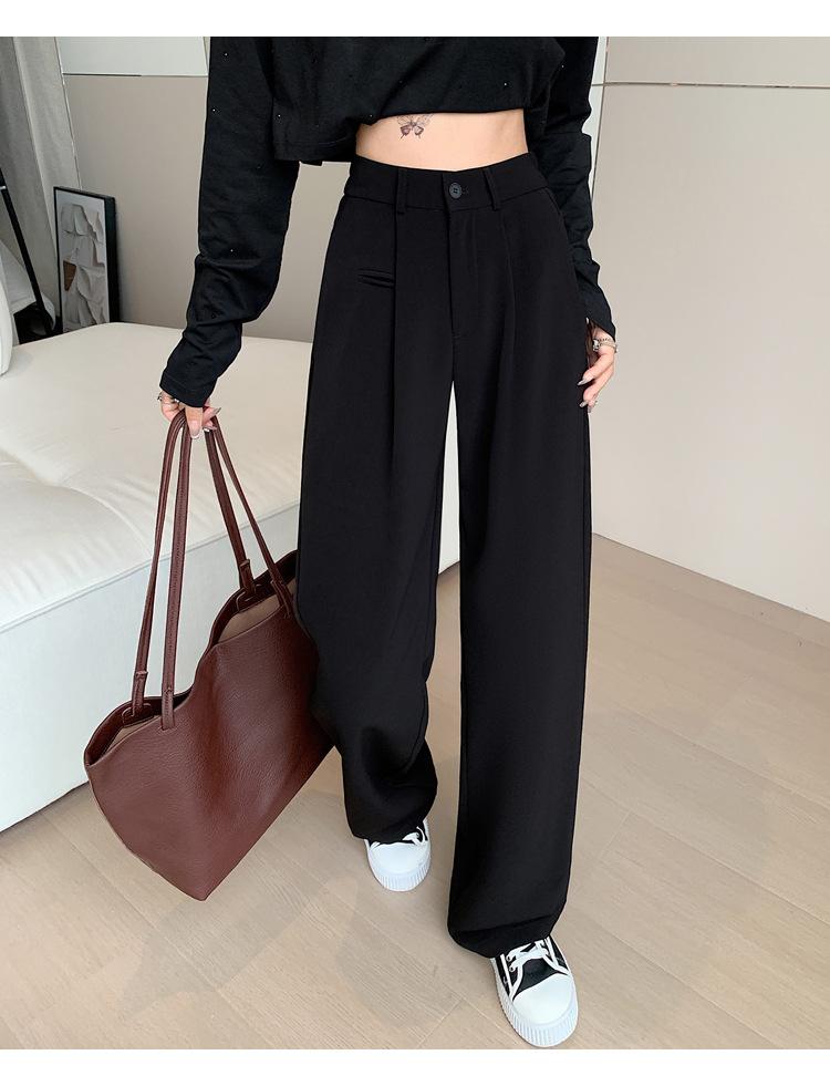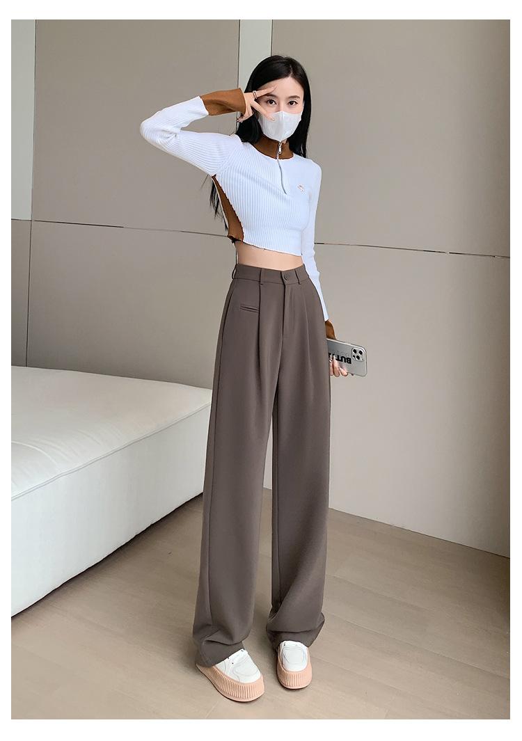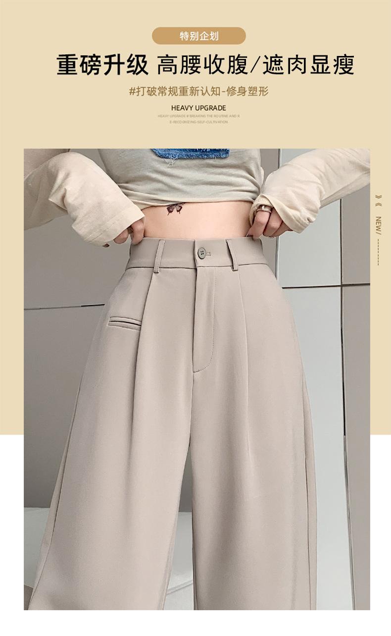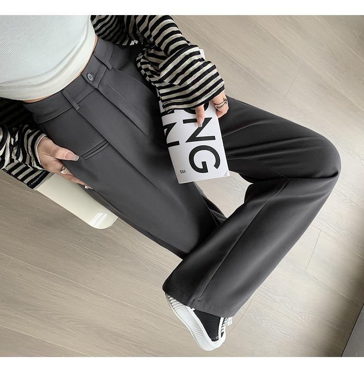 Pantalones de Traje de Mujer de Alta Gama Primavera y Otoño 2024 Nuevo Pantalón de Pierna Ancha Drapeado de Cintura Alta Pantalones Holgados Adelgazantes Versión Estrecha Pantalones Largos hasta el Piso