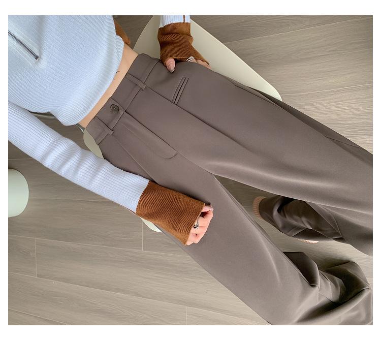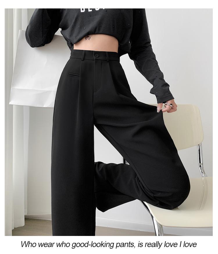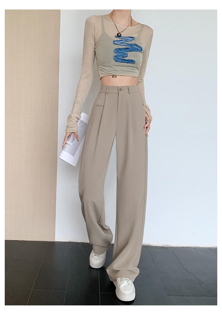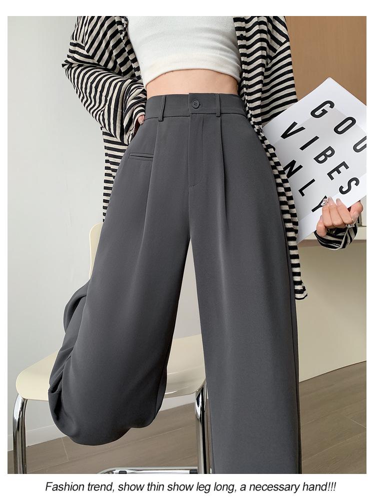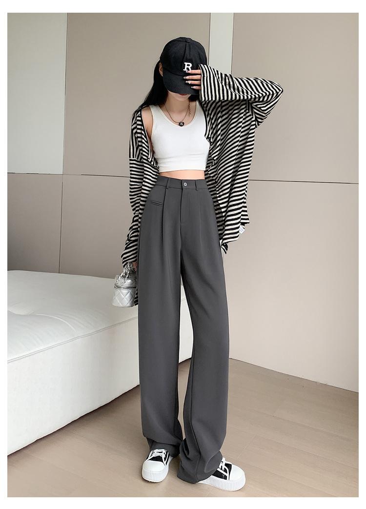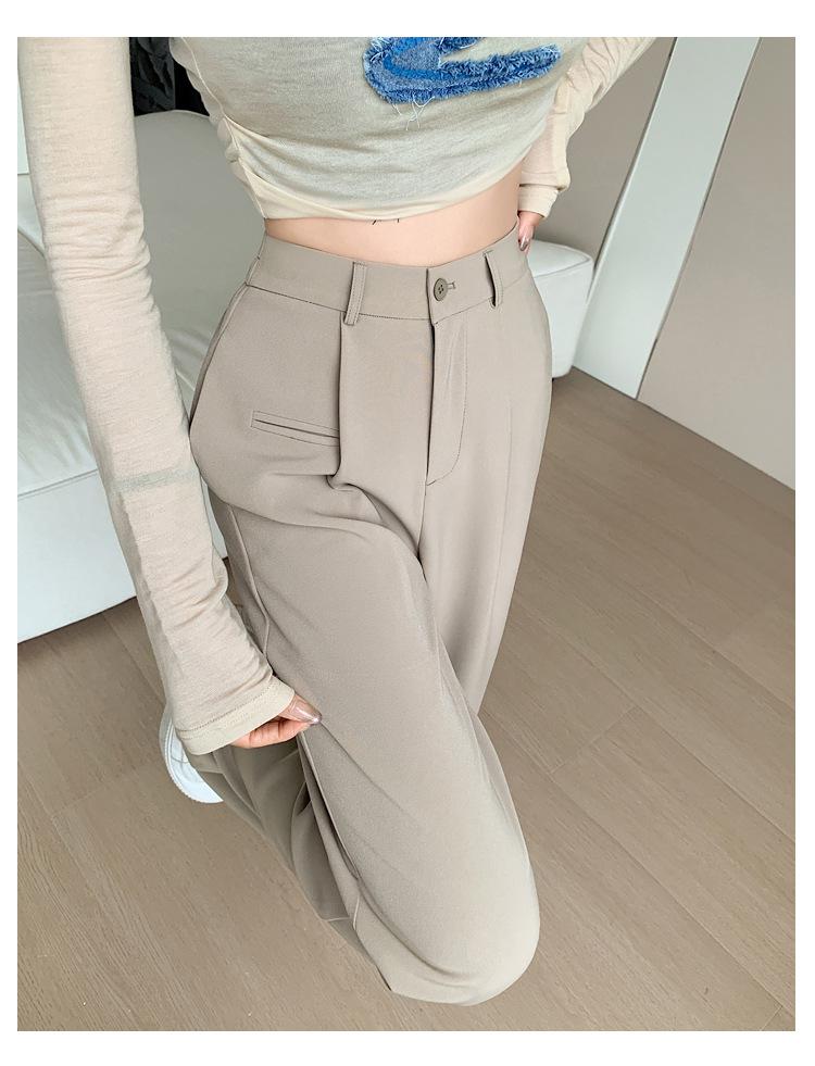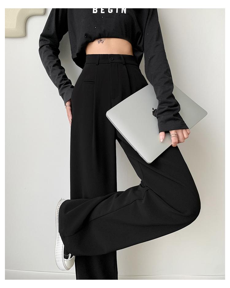 Pantalones de Traje de Mujer de Alta Gama Primavera y Otoño 2024 Nuevo Pantalón de Pierna Ancha Drapeado de Cintura Alta Pantalones Holgados Adelgazantes Versión Estrecha Pantalones Largos hasta el Piso