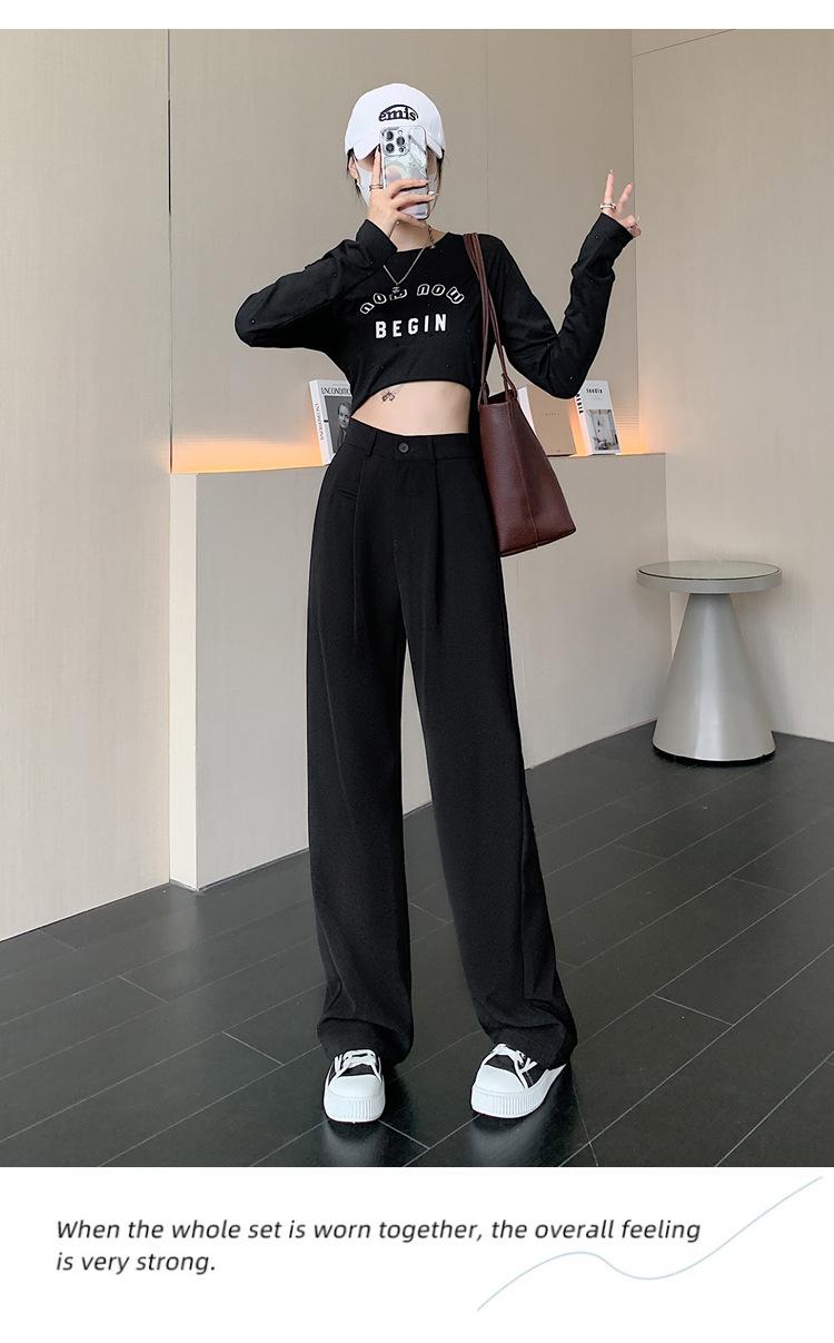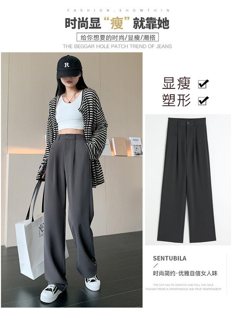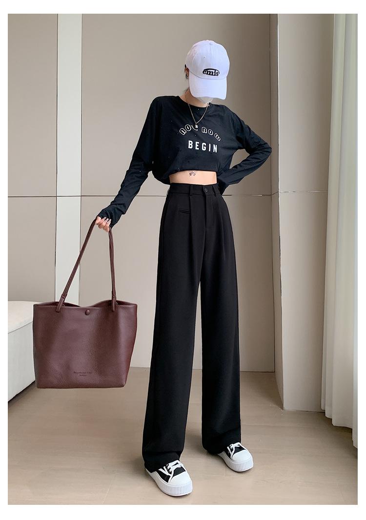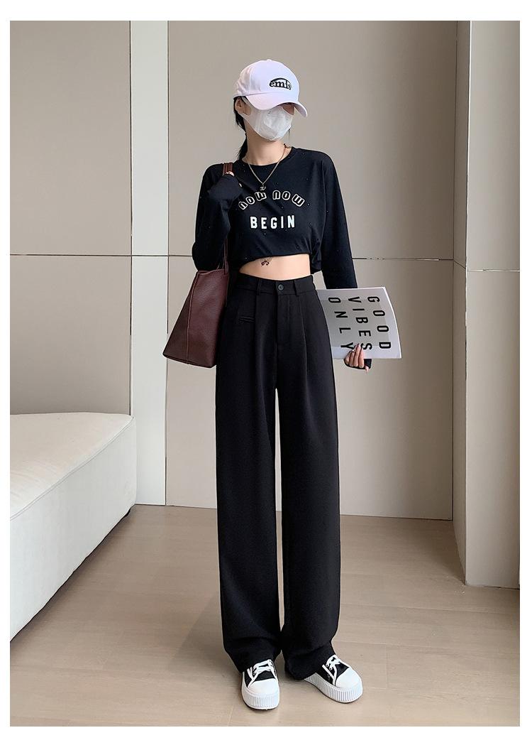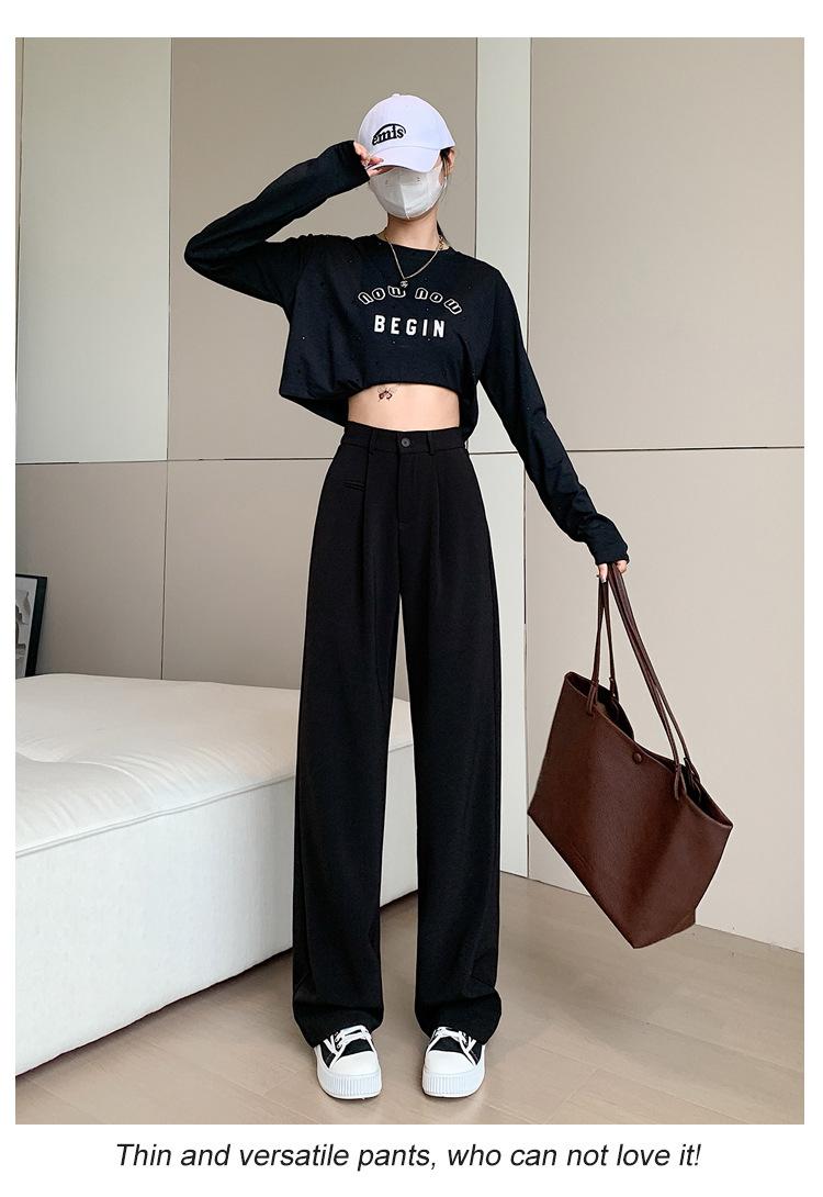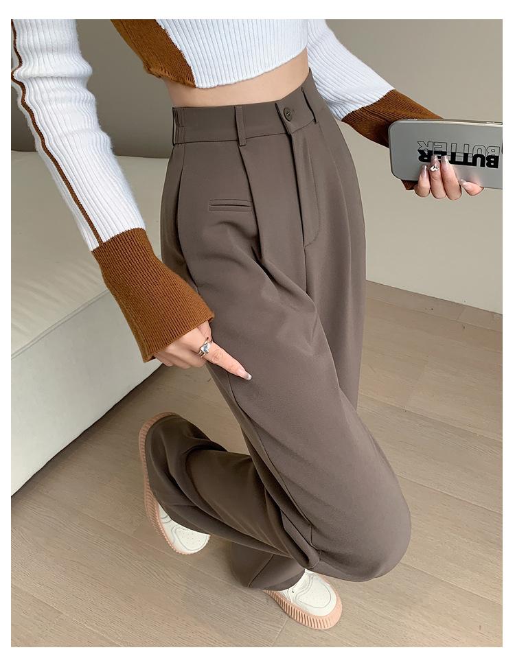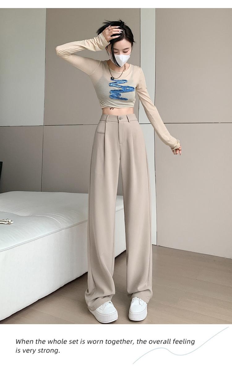Pantalones de Traje de Mujer de Alta Gama Primavera y Otoño 2024 Nuevo Pantalón de Pierna Ancha Drapeado de Cintura Alta Pantalones Holgados Adelgazantes Versión Estrecha Pantalones Largos hasta el Piso