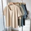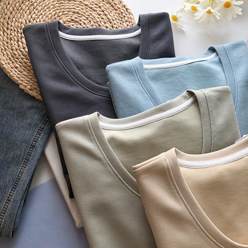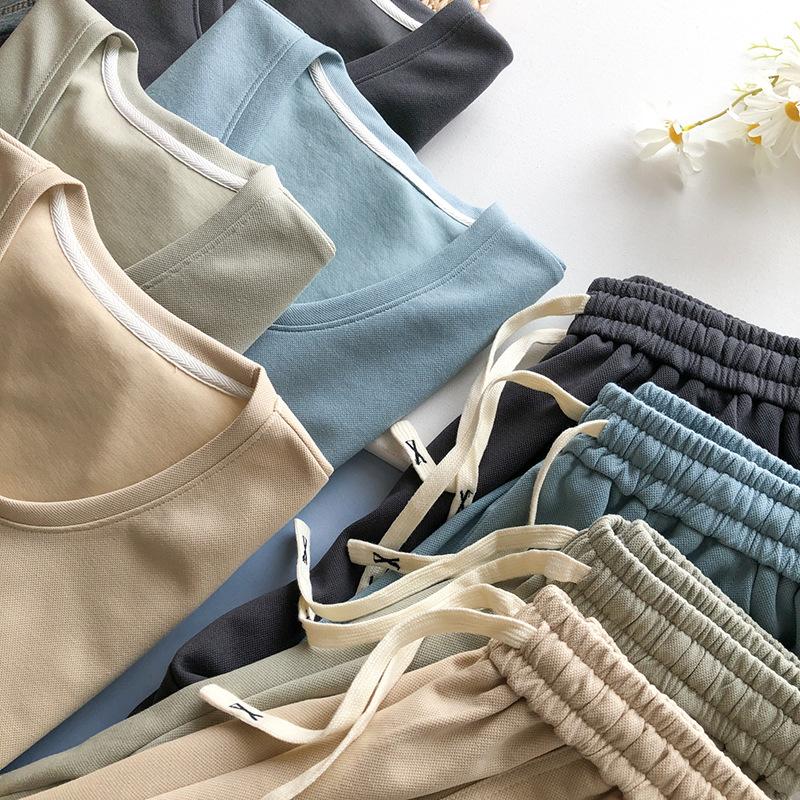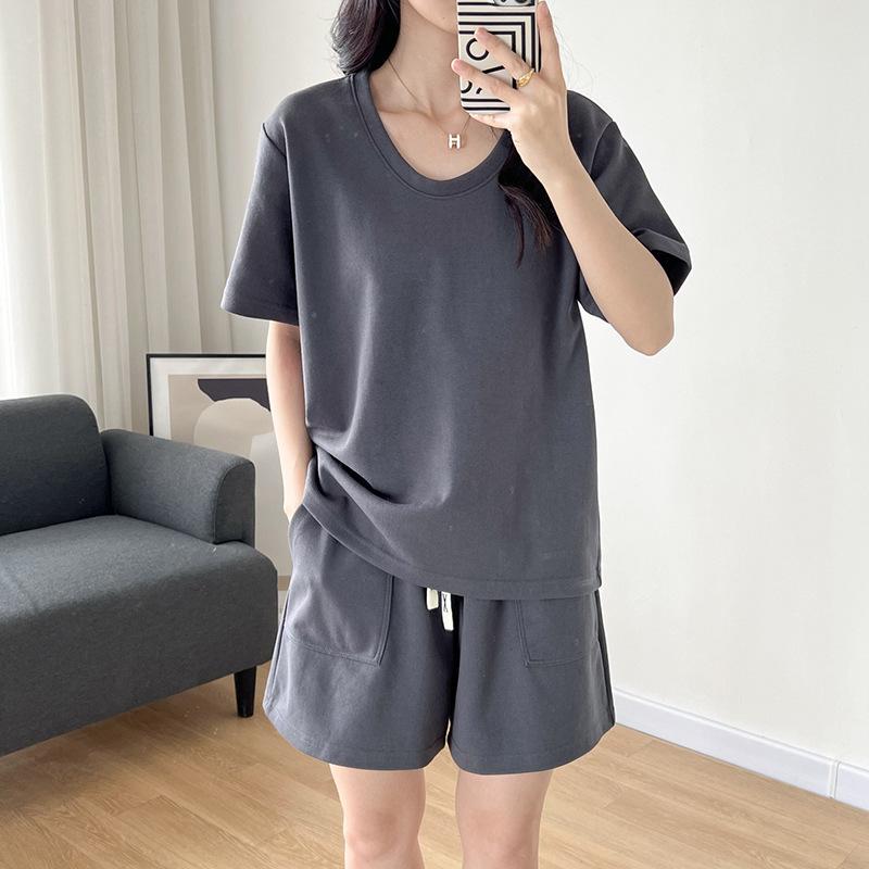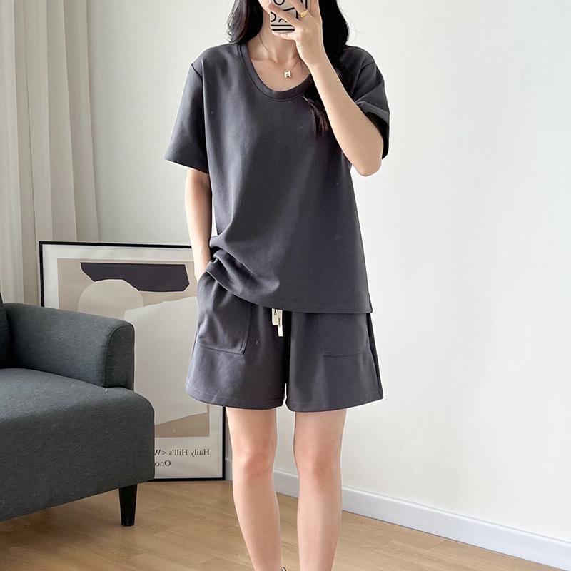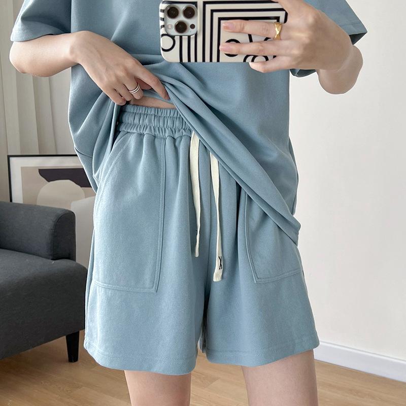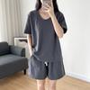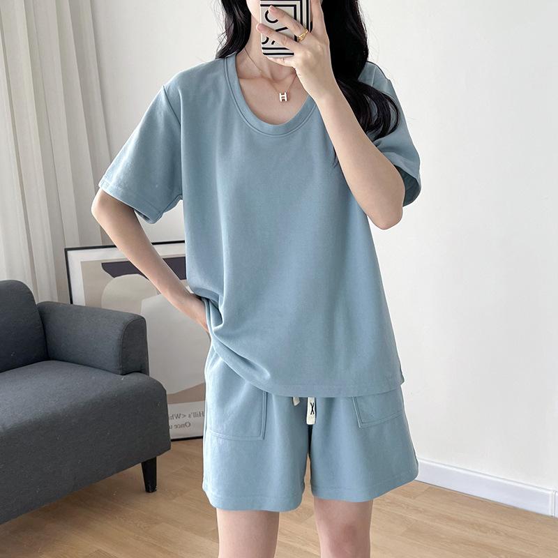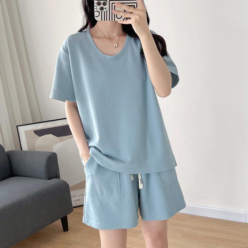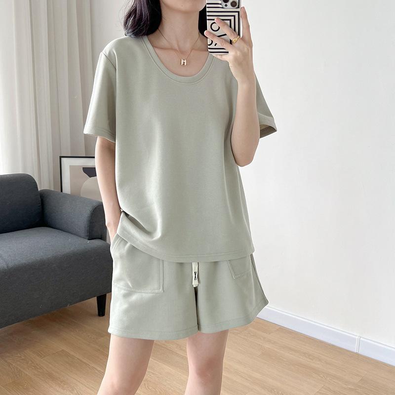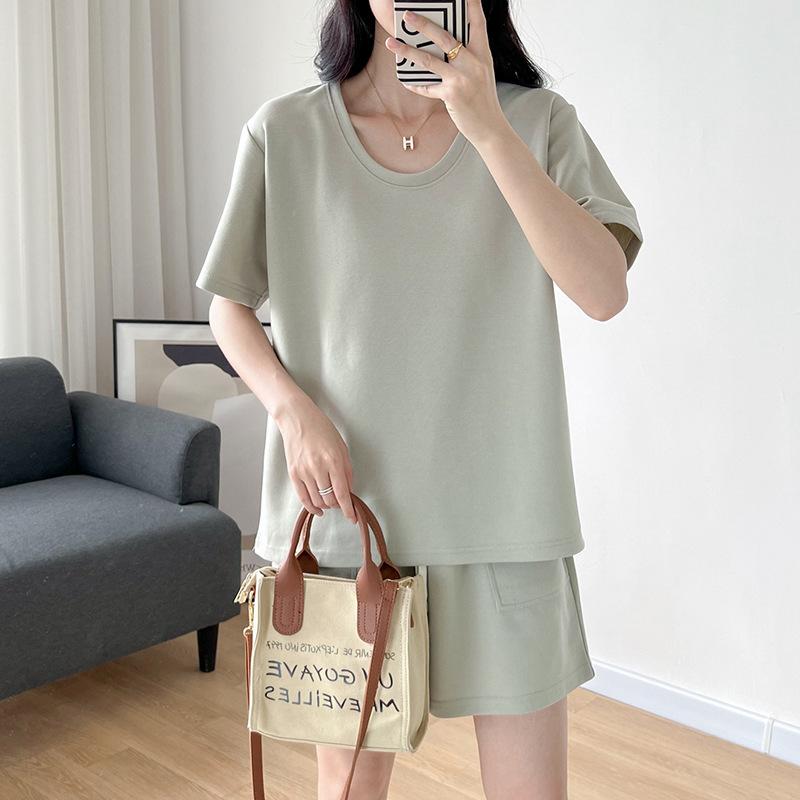 Traje casual de color sólido con cuello en U para mujer 2023 estilo de verano estilo holgazán look adelgazante versátil top de manga corta + shorts de cintura elástica
