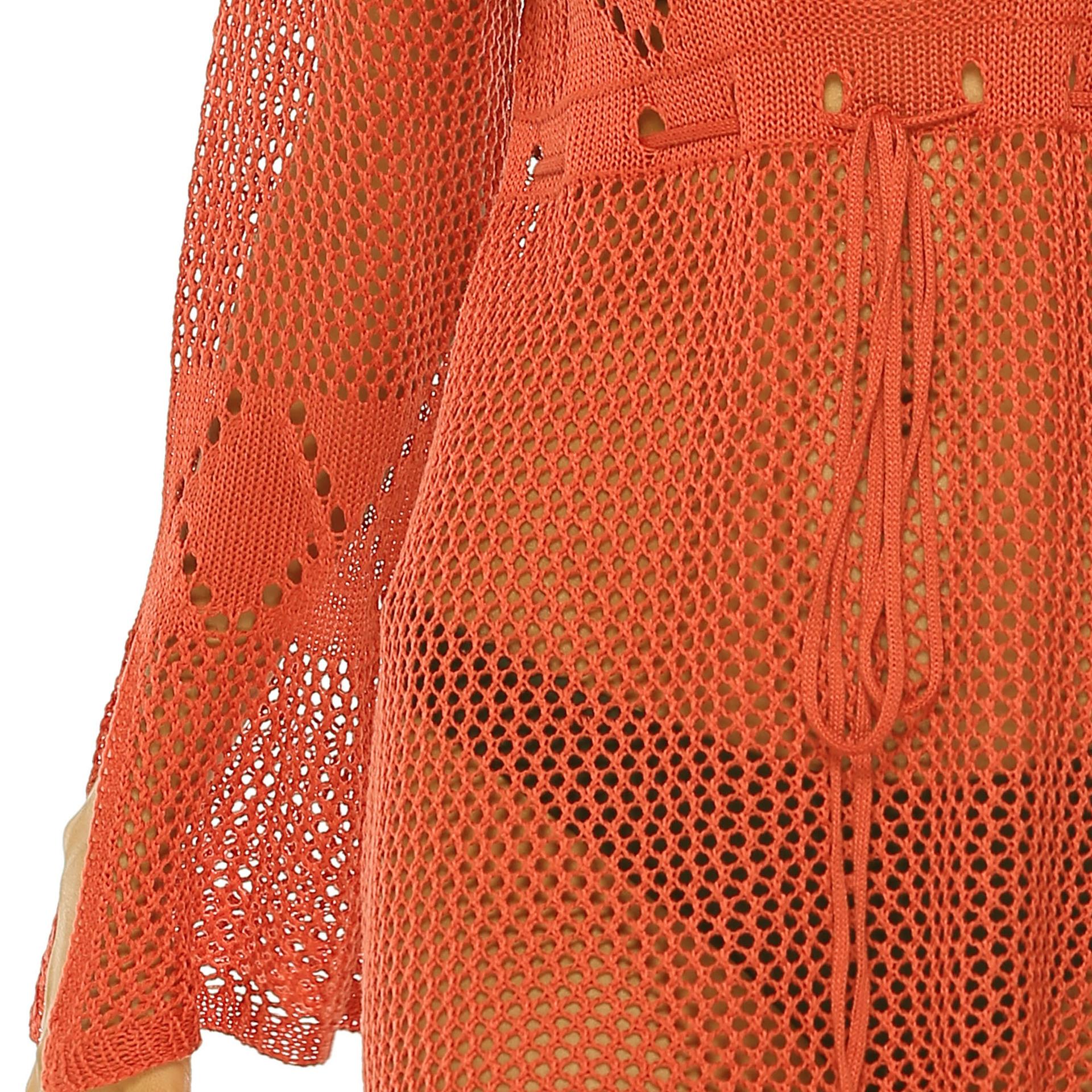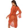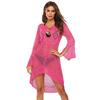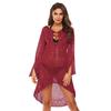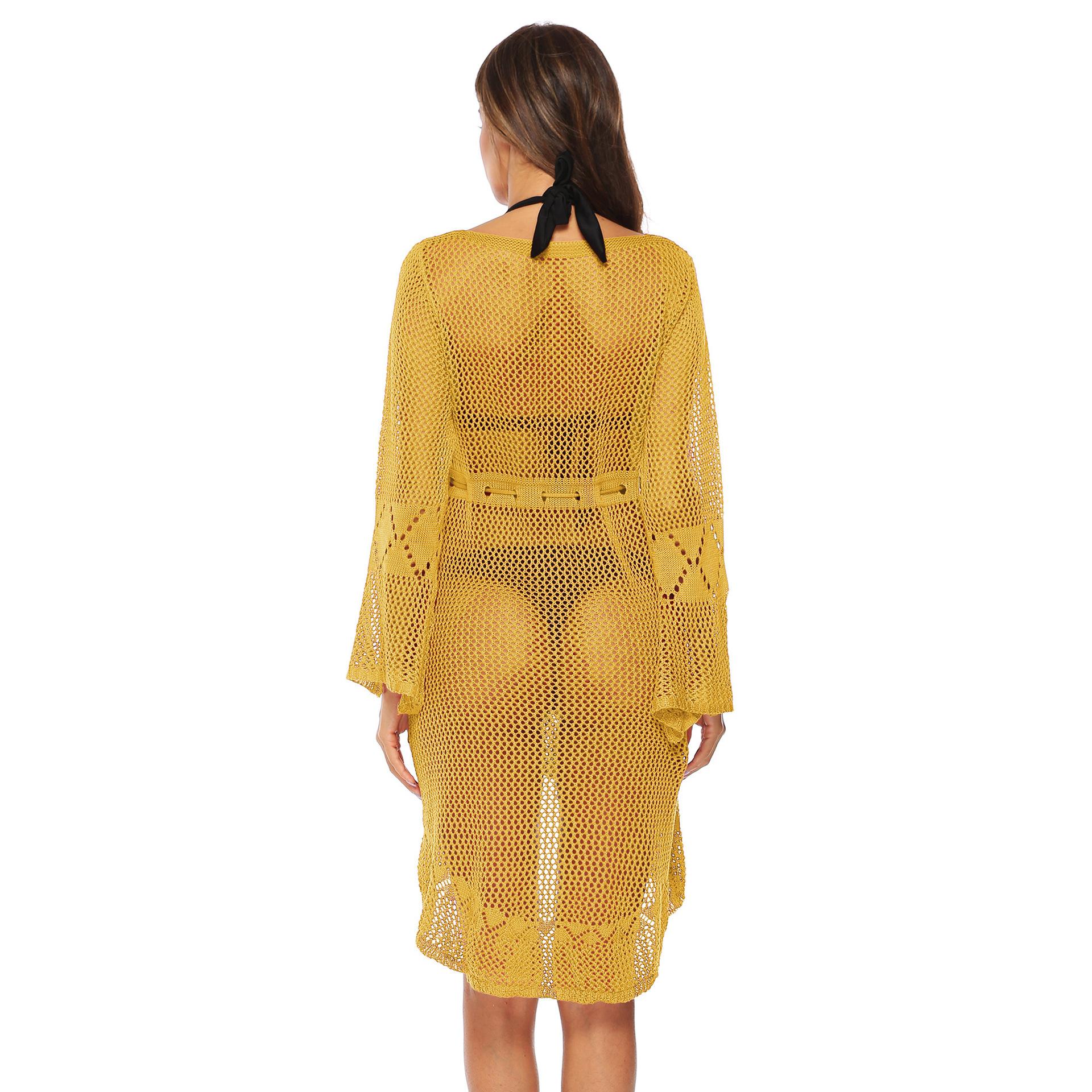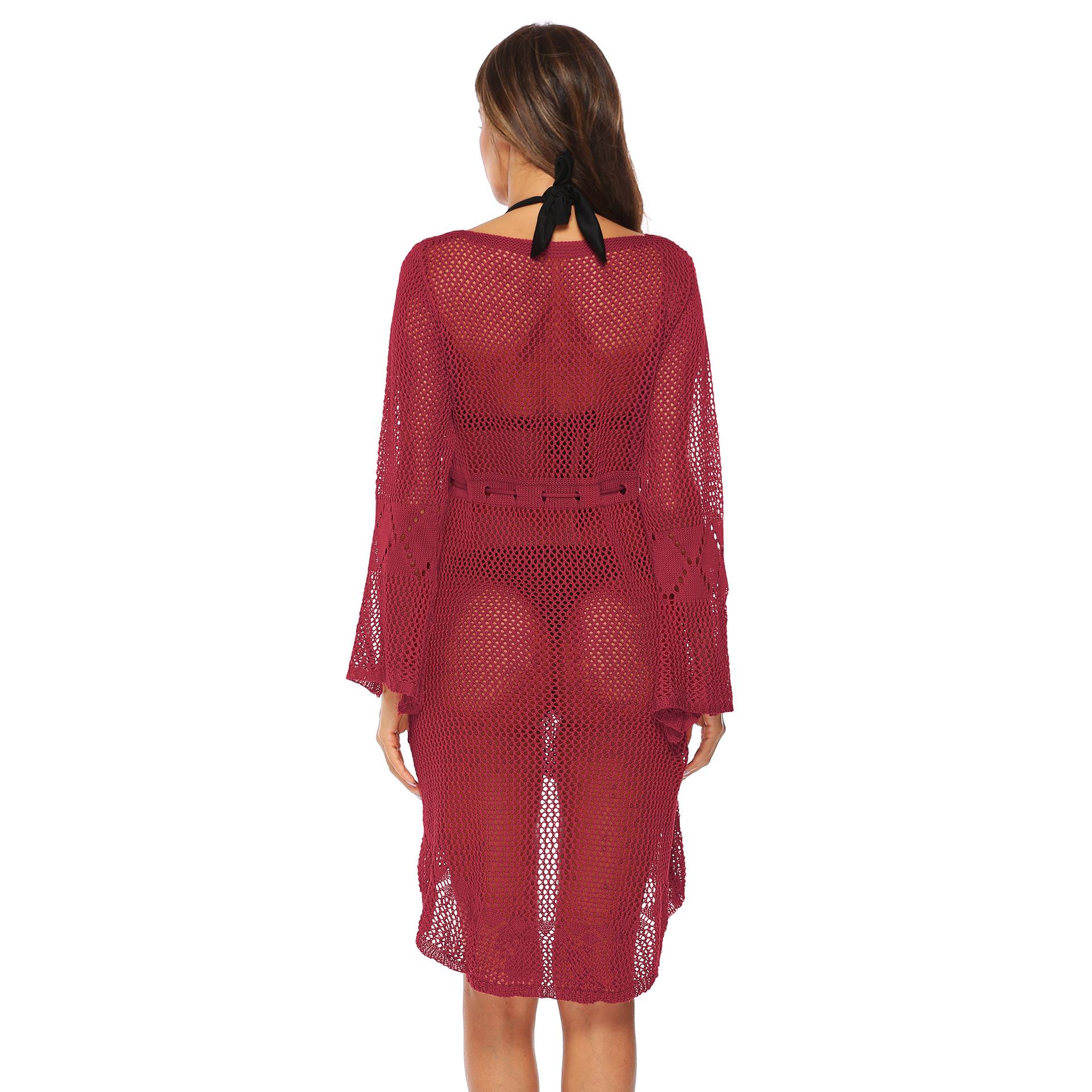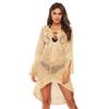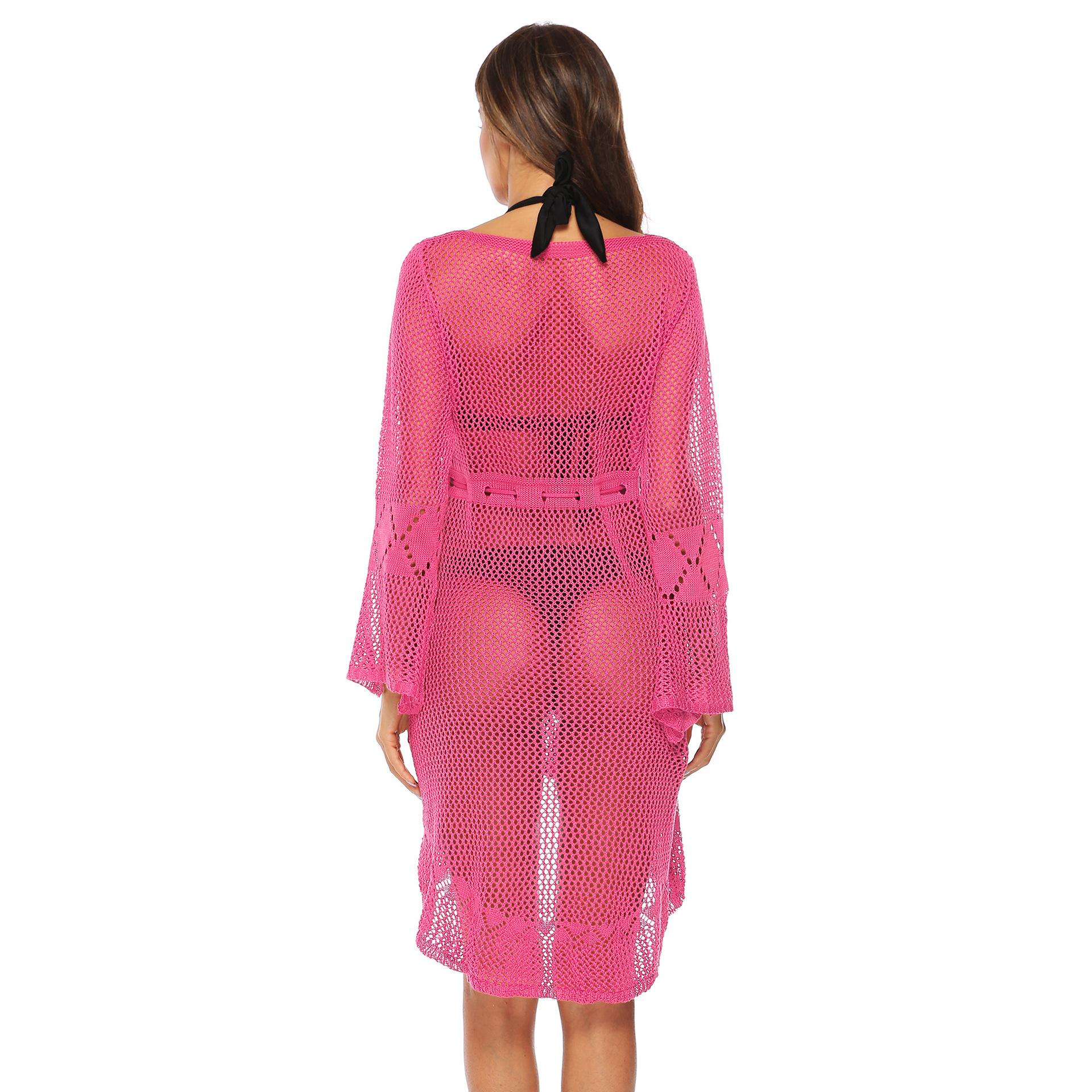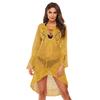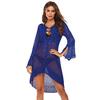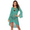 Blusa/Vestido de Playa Multicolor Irregular con Escote en V Profundo Sexy de Manga Acampanada Tejido Calado para Mujer A1974