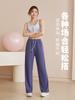 Pantalones deportivos de cintura alta de talla grande para mujer, holgados, de pierna ancha, de color liso, para correr, de secado rápido, para adelgazar y hacer yoga.