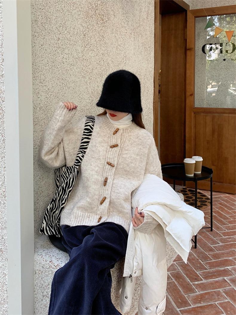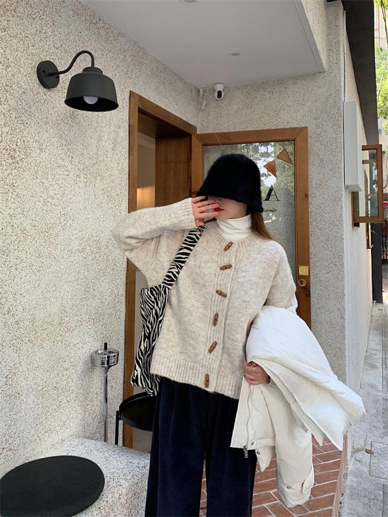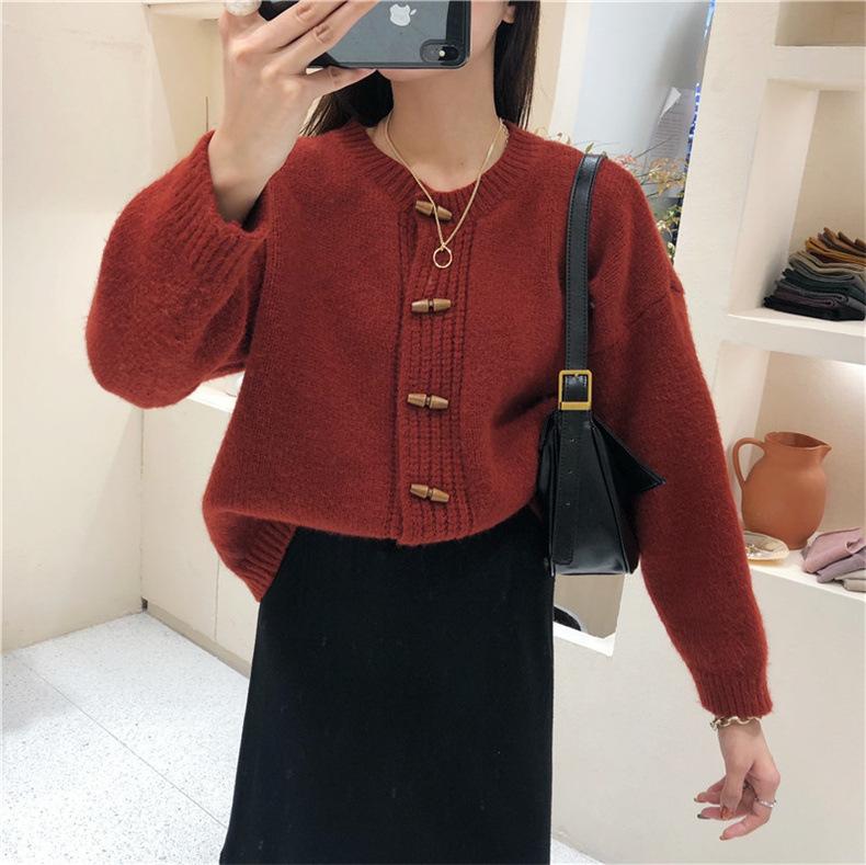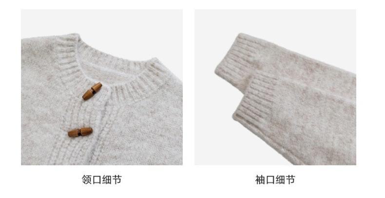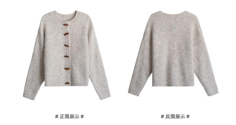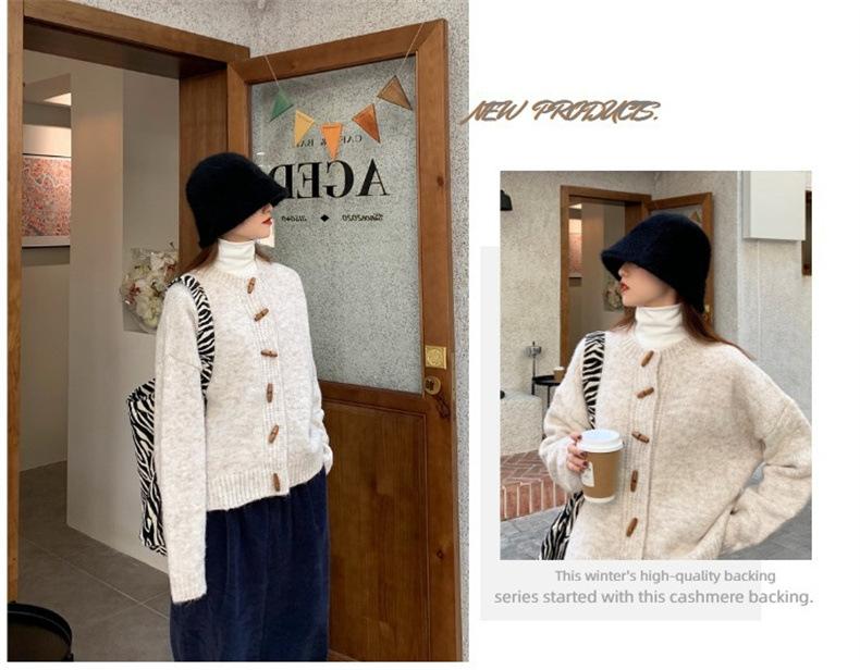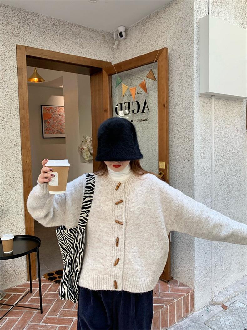 Suéter suave y ceroso de color puro nuevo, cárdigan de punto holgado con cuello redondo, chaqueta de diseño para mujer, botón de cuerno de madera, prenda exterior gruesa para mujer