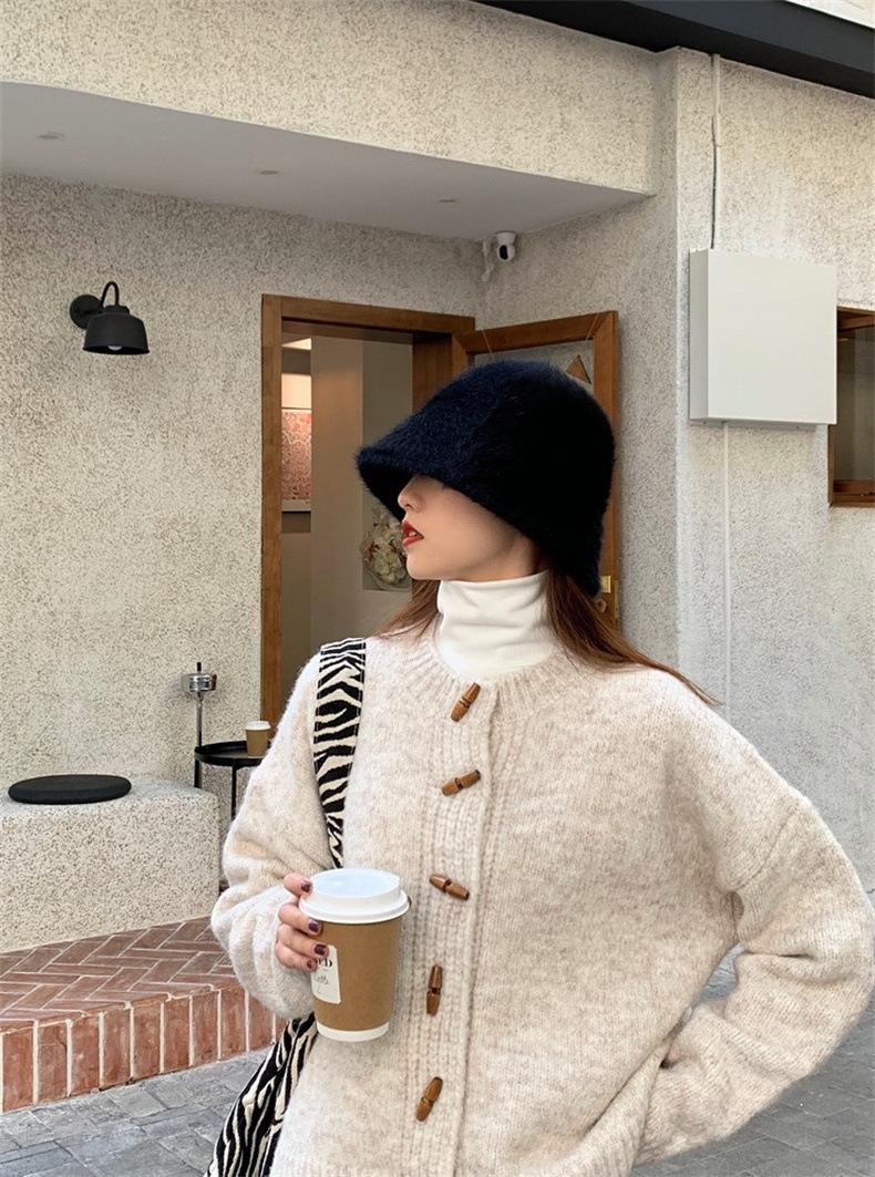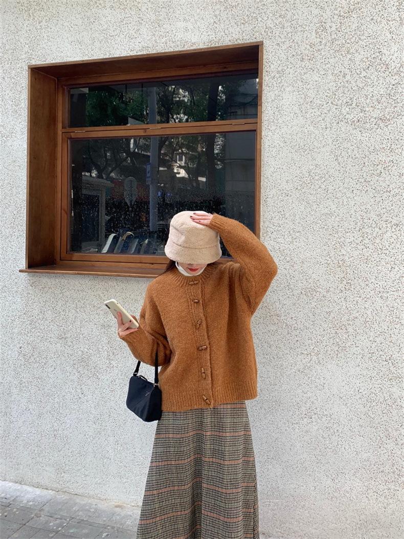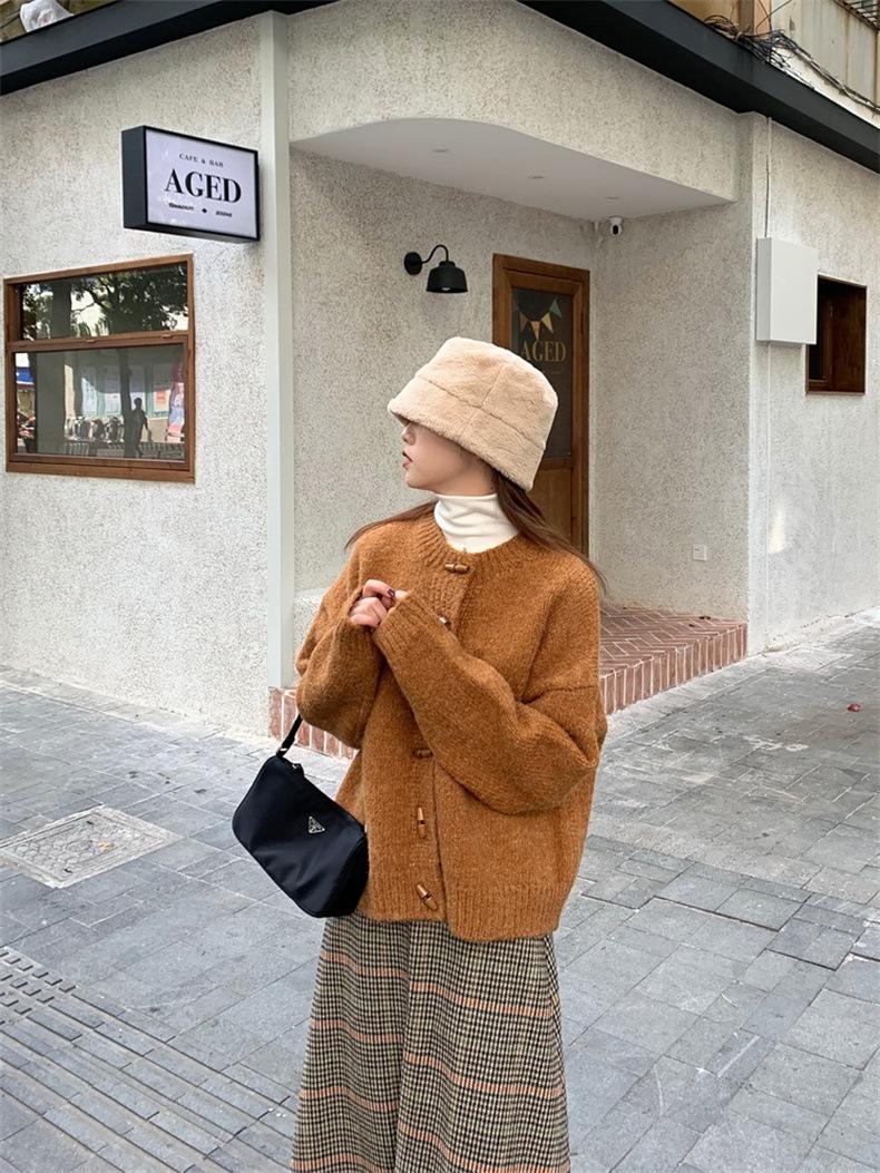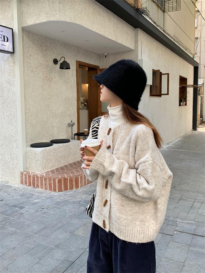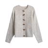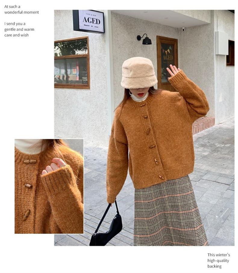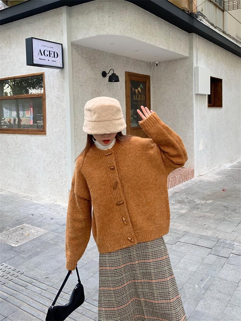 Suéter suave y ceroso de color puro nuevo, cárdigan de punto holgado con cuello redondo, chaqueta de diseño para mujer, botón de cuerno de madera, prenda exterior gruesa para mujer