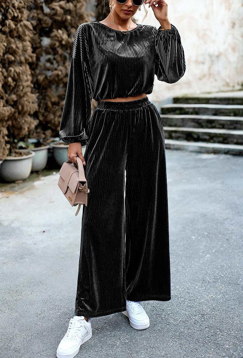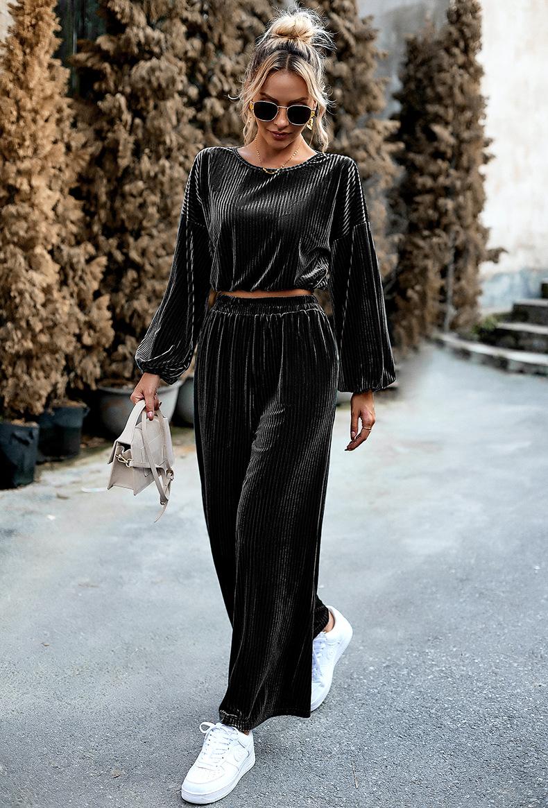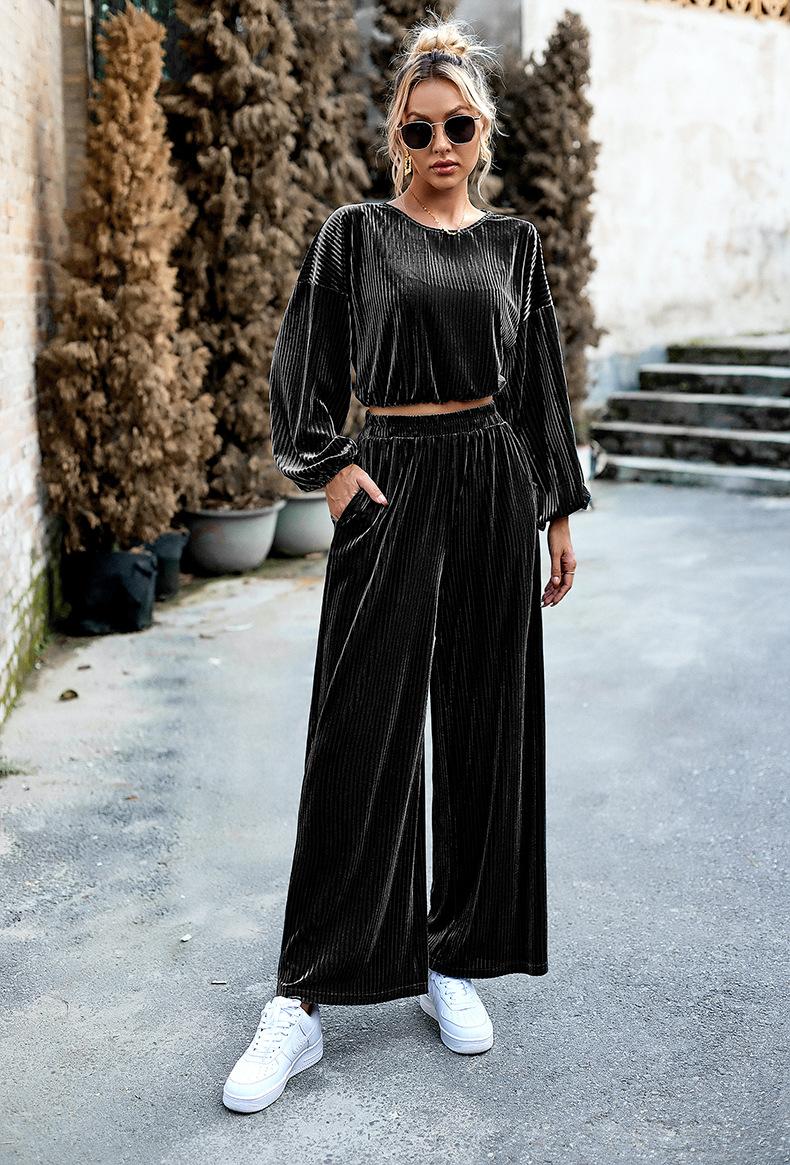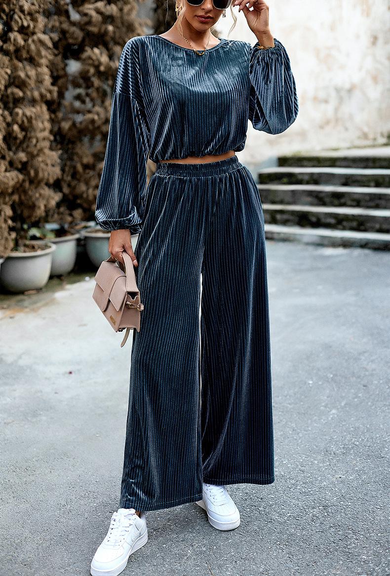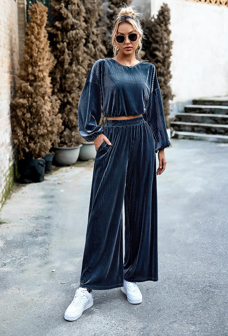 Traje de terciopelo de moda para mujer de comercio exterior transfronterizo europeo y americano de Di Yun, traje informal de dos piezas de otoño e invierno de Amazon para mujer 2023
