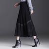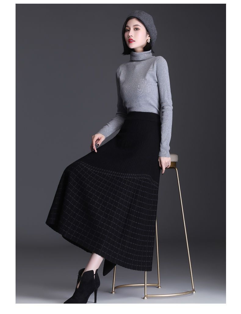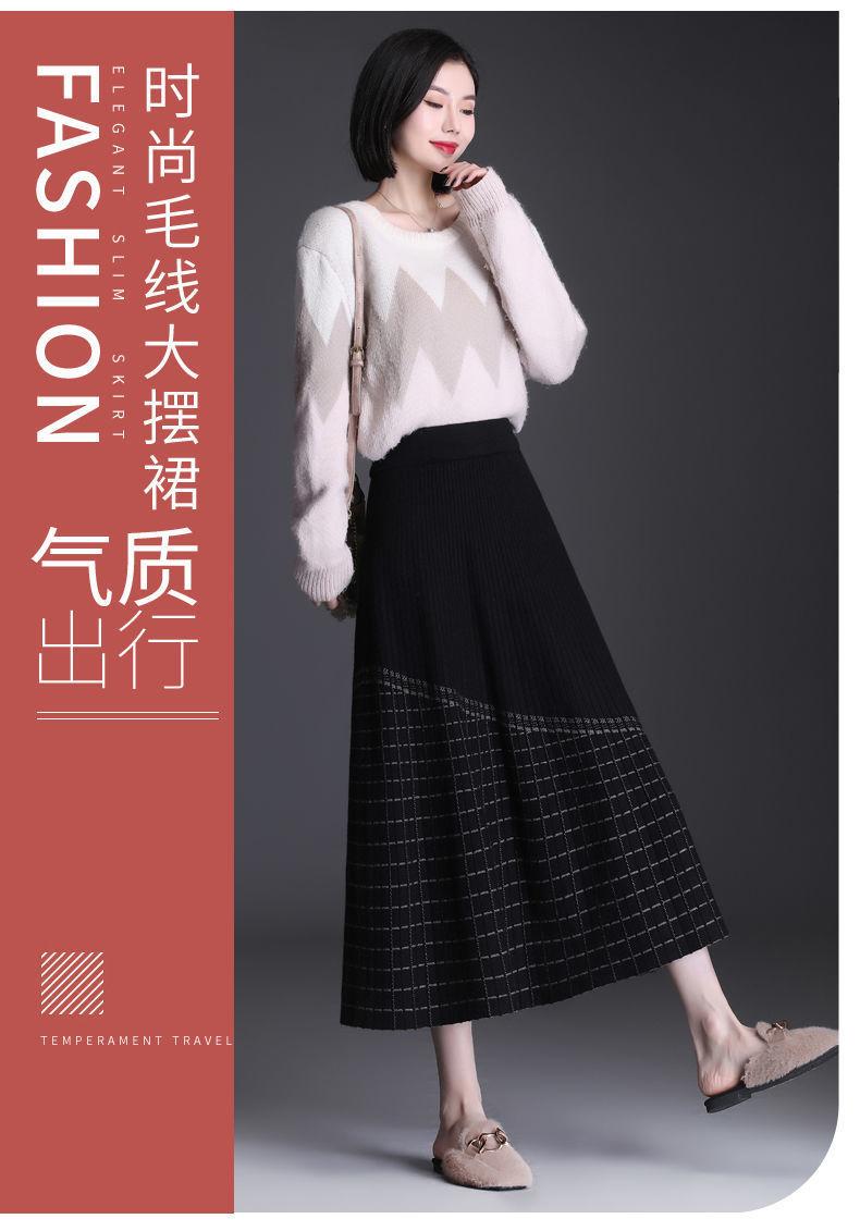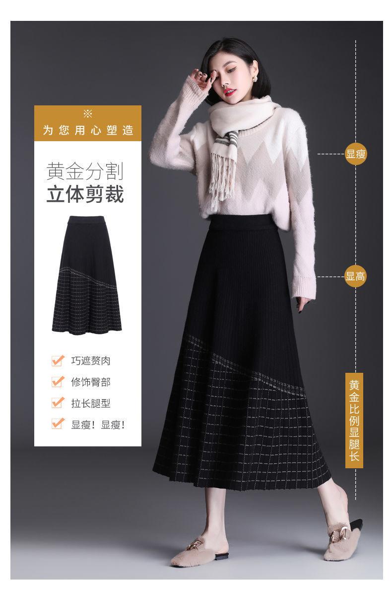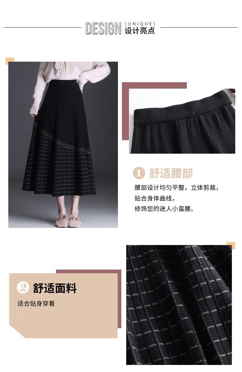 Falda de punto a cuadros para mujer, otoño e invierno, nueva falda de cintura alta, de longitud media, línea A, gruesa, adelgazante, falda grande, falda larga