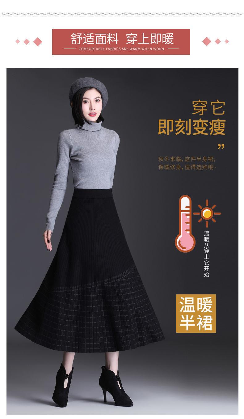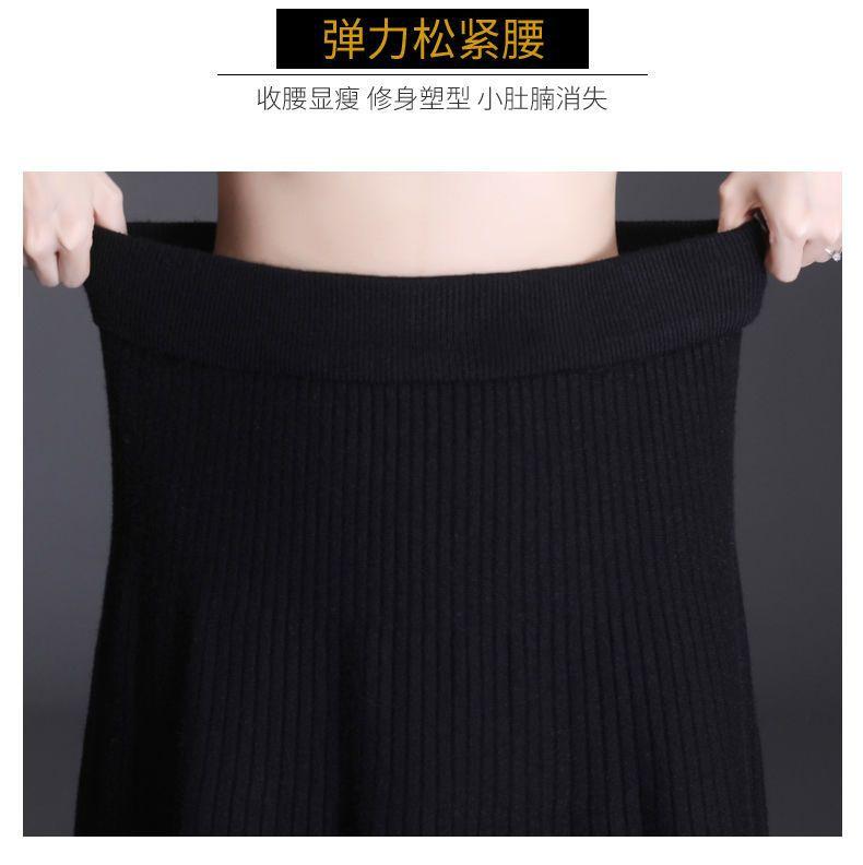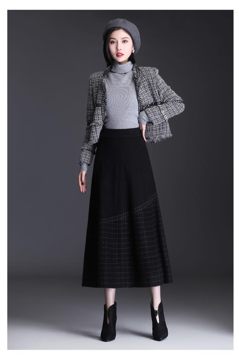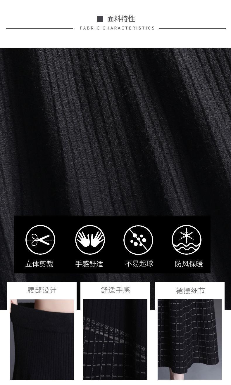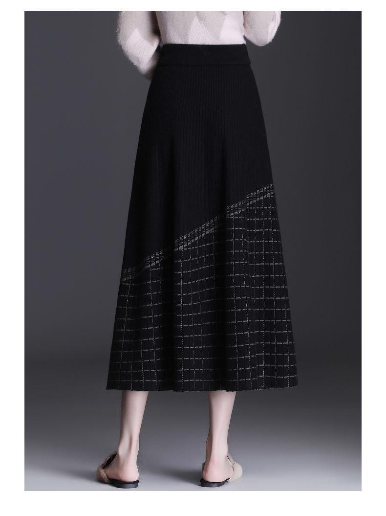 Falda de punto a cuadros para mujer, otoño e invierno, nueva falda de cintura alta, de longitud media, línea A, gruesa, adelgazante, falda grande, falda larga