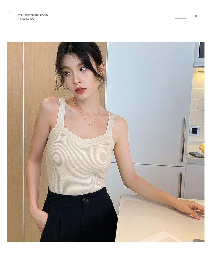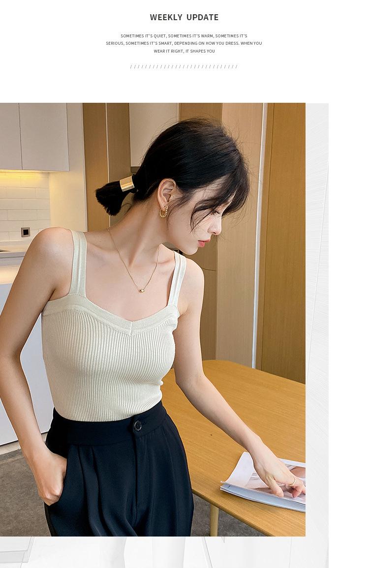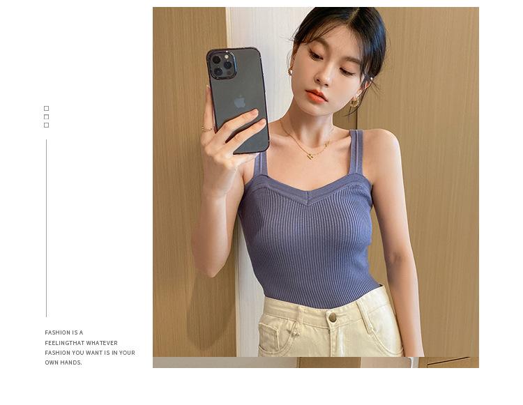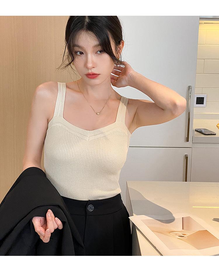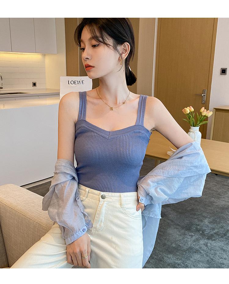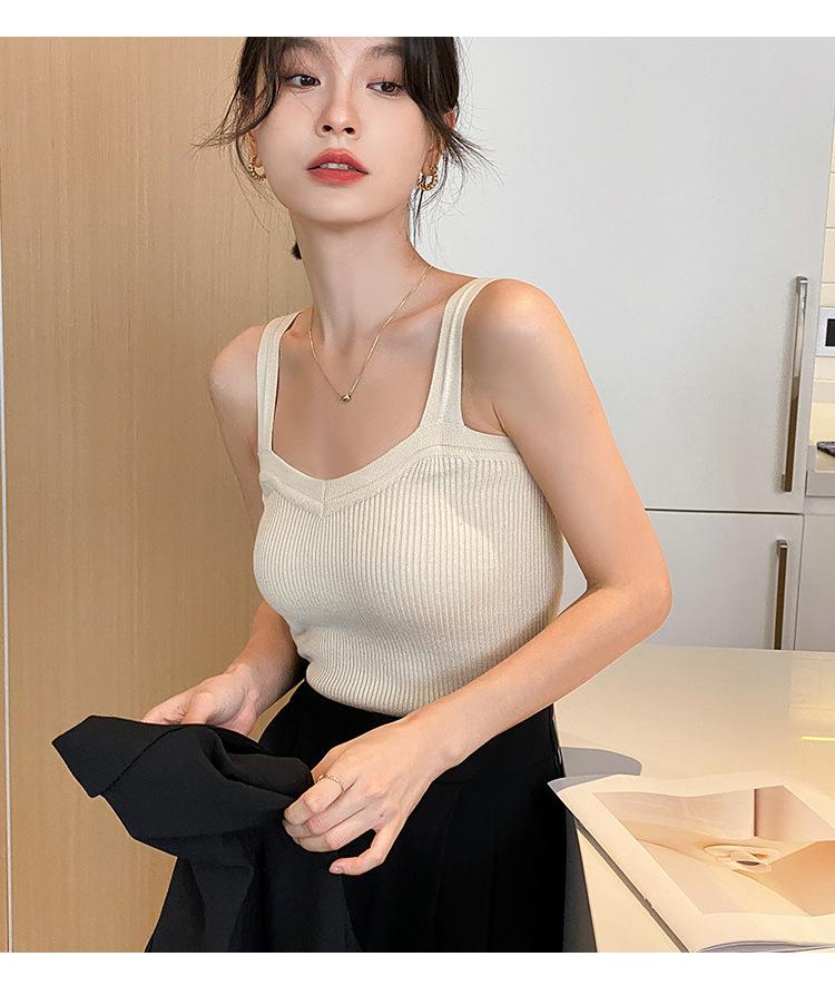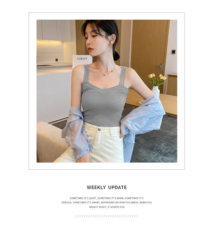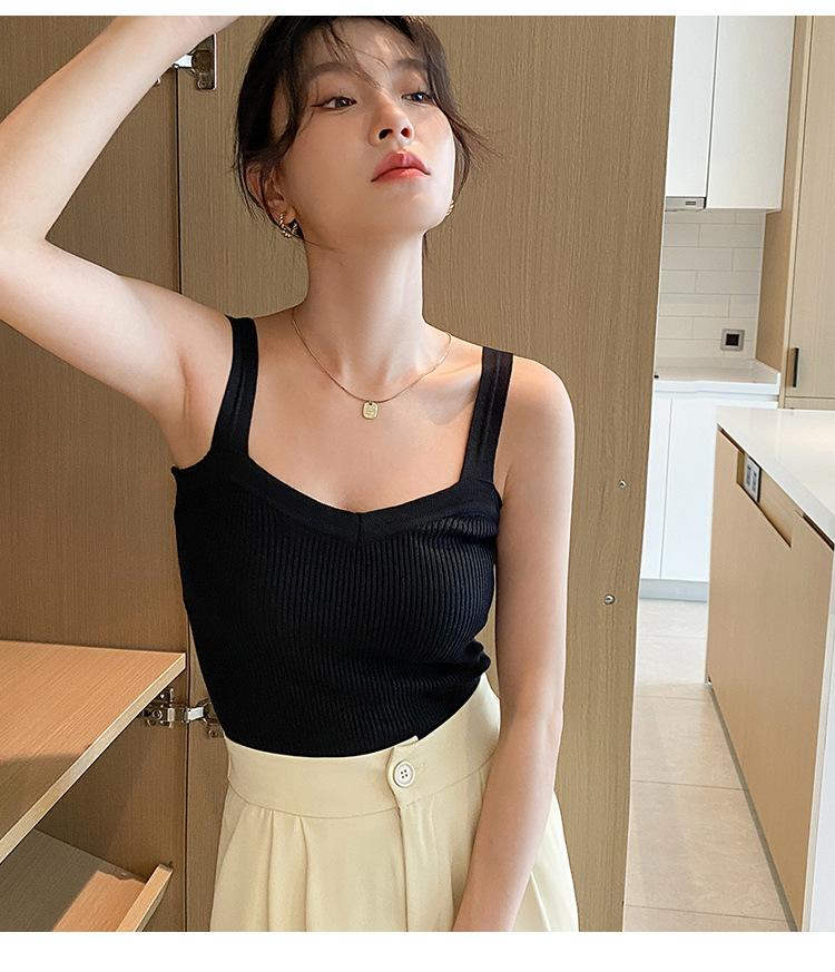 Chaleco de espalda dulce y picante con cuello en V de punto para mujer, traje de diseño interior de nicho, prenda exterior de verano, base superior
