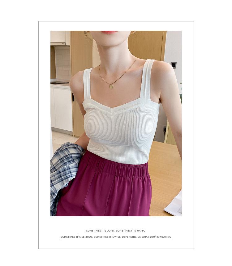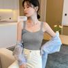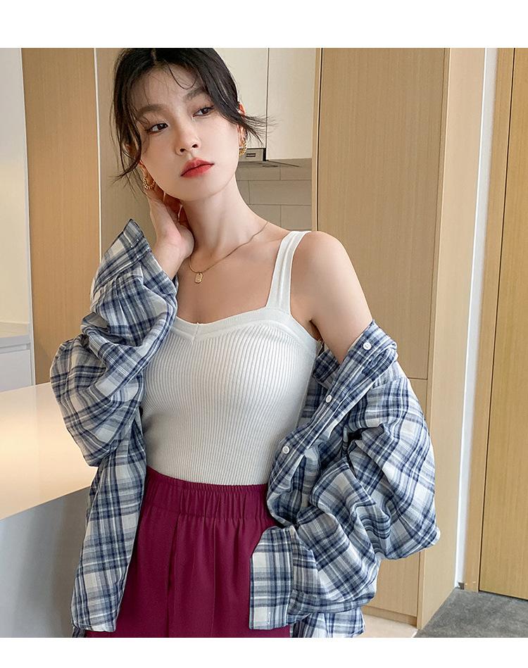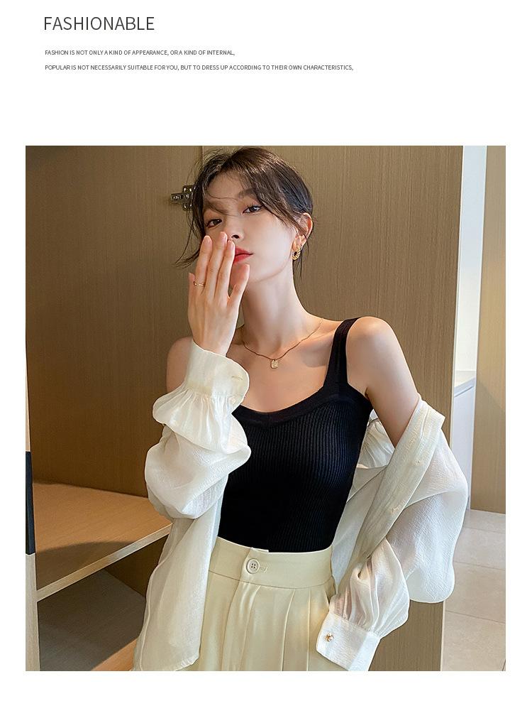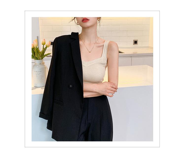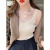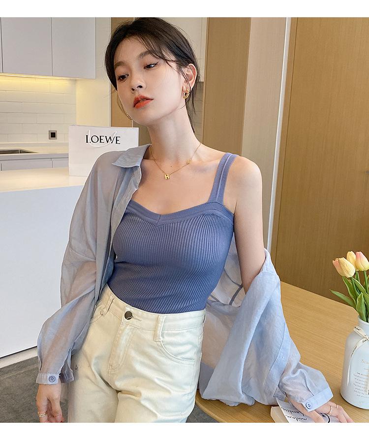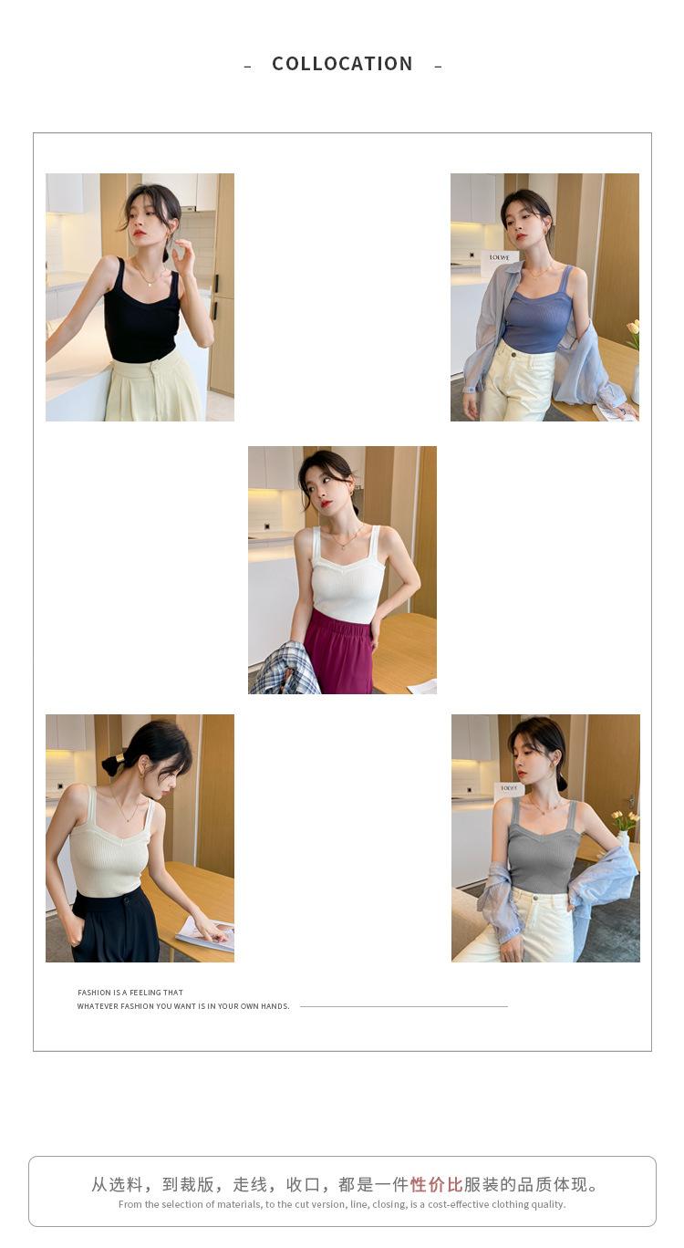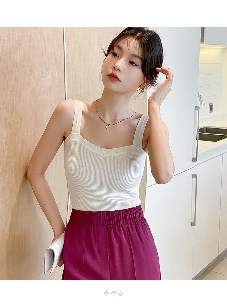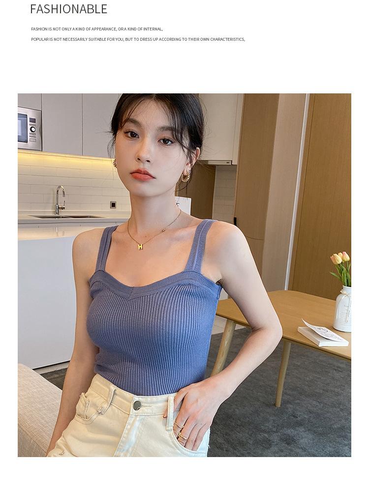 Chaleco de espalda dulce y picante con cuello en V de punto para mujer, traje de diseño interior de nicho, prenda exterior de verano, base superior