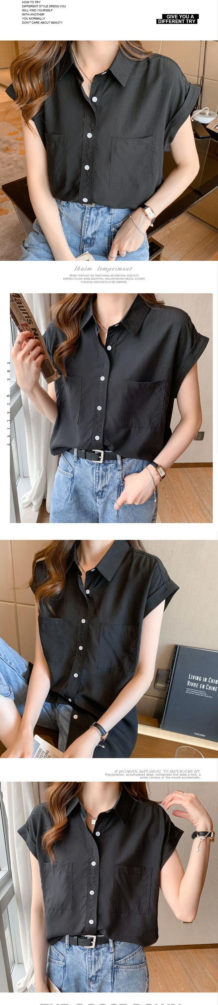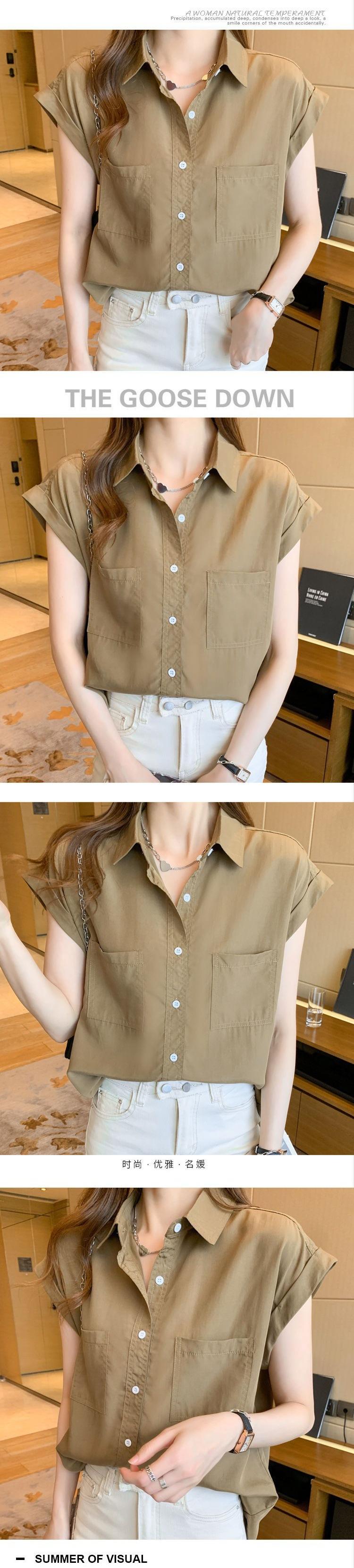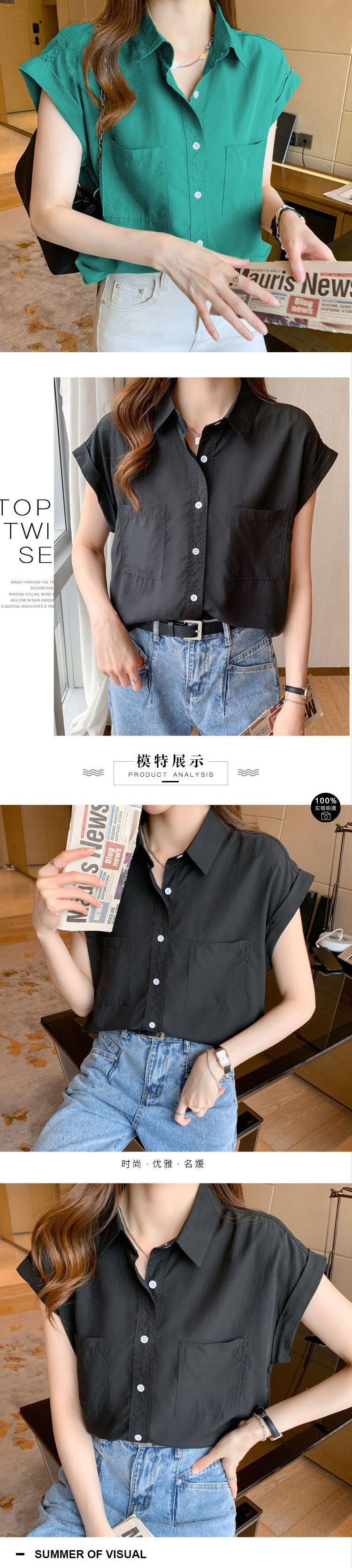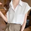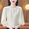 Blusa Top Elegante de Verano de Manga Corta para Mujer, Nueva, de Moda de Gasa, Estilo Retro de Hong Kong, Casual, Versátil, Ajustada