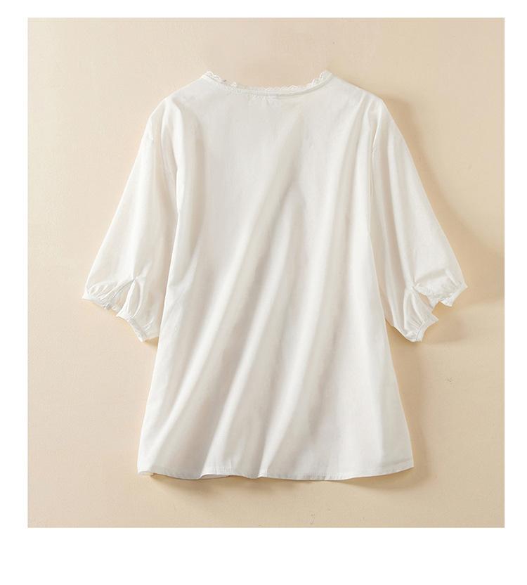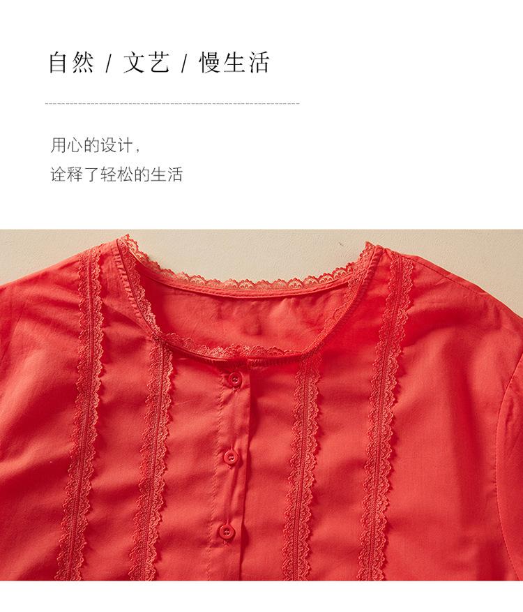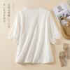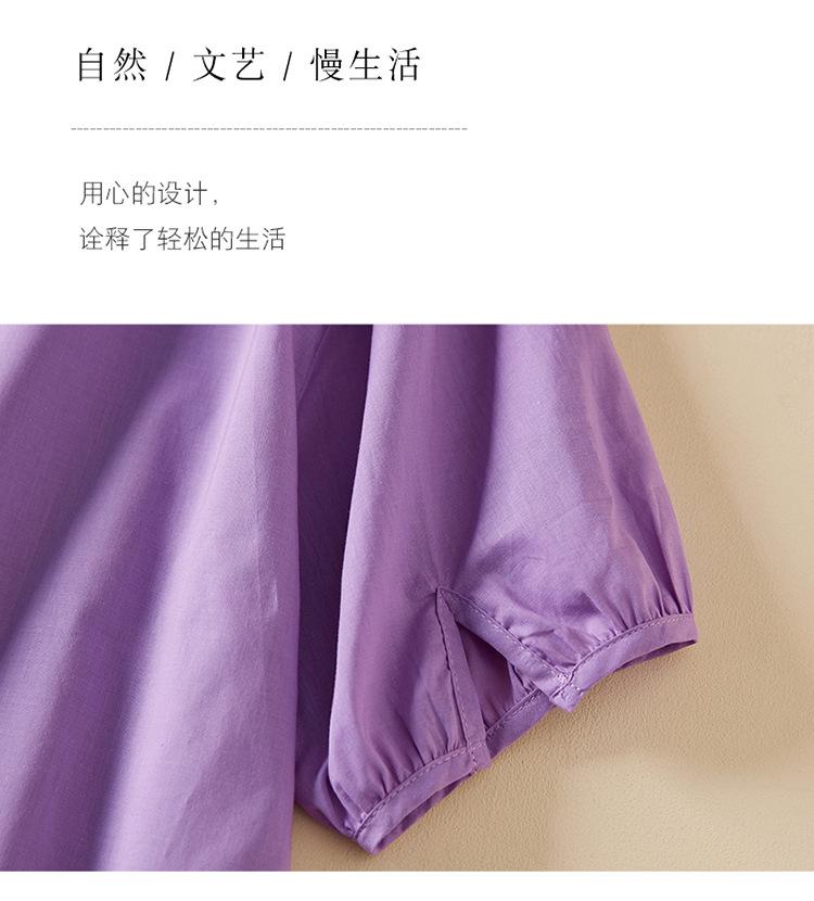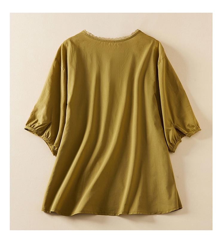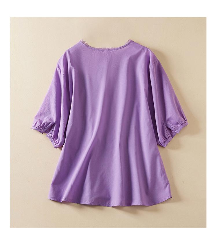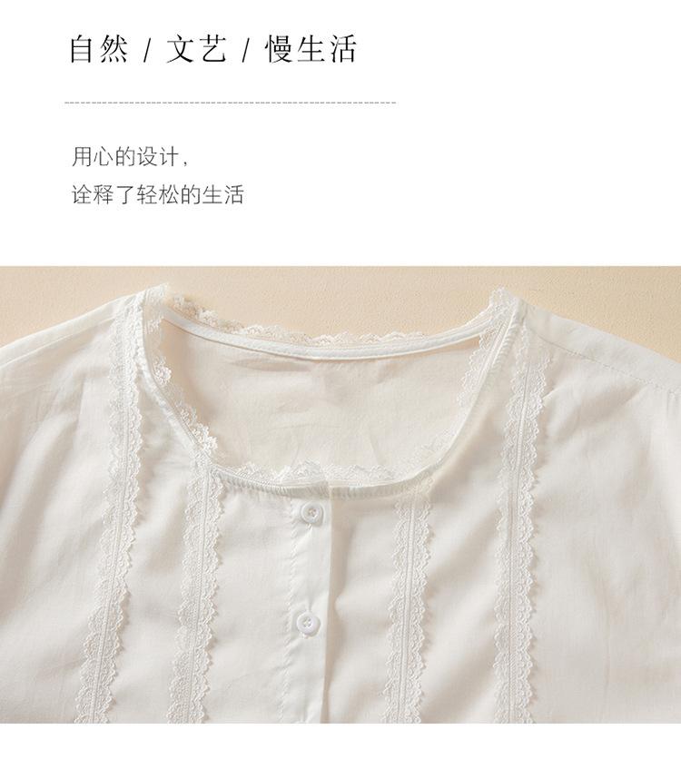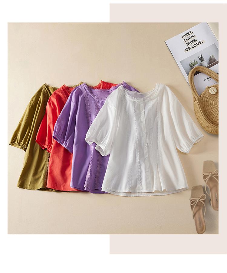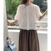 Blusa holgada de encaje artístico para mujer, camisa informal de algodón y lino, elegante, con cuello redondo, novedad de verano de 2023