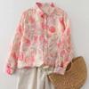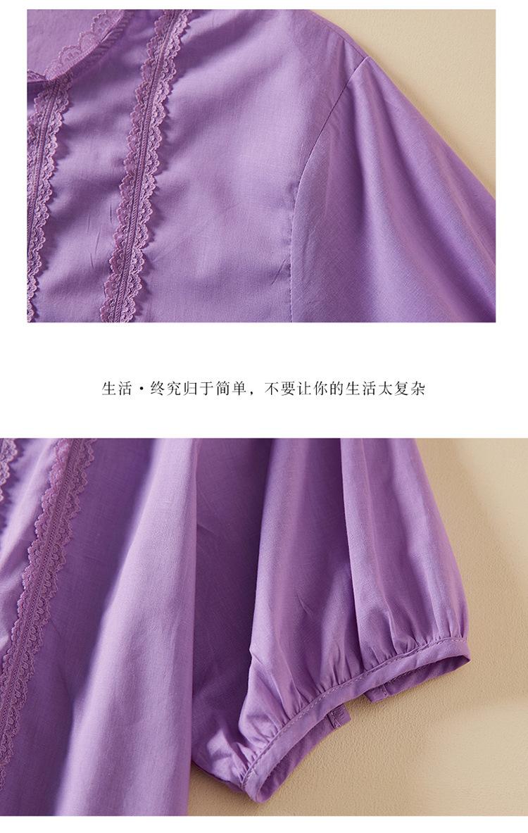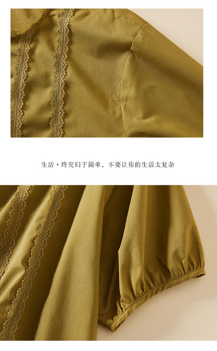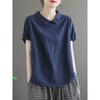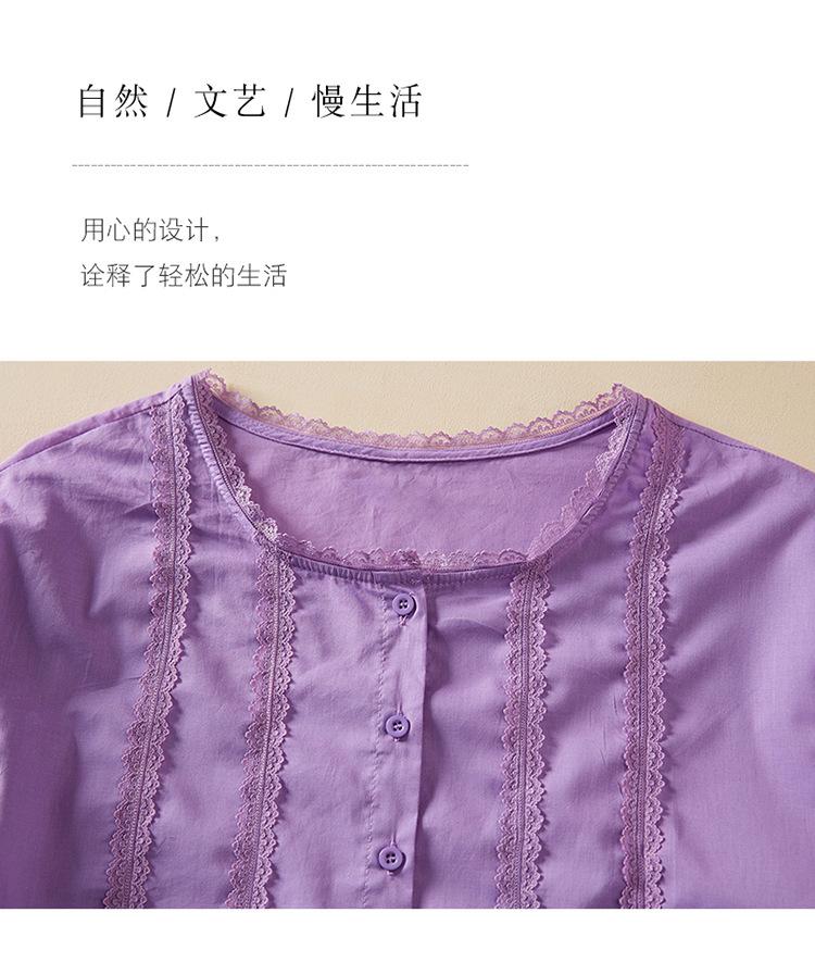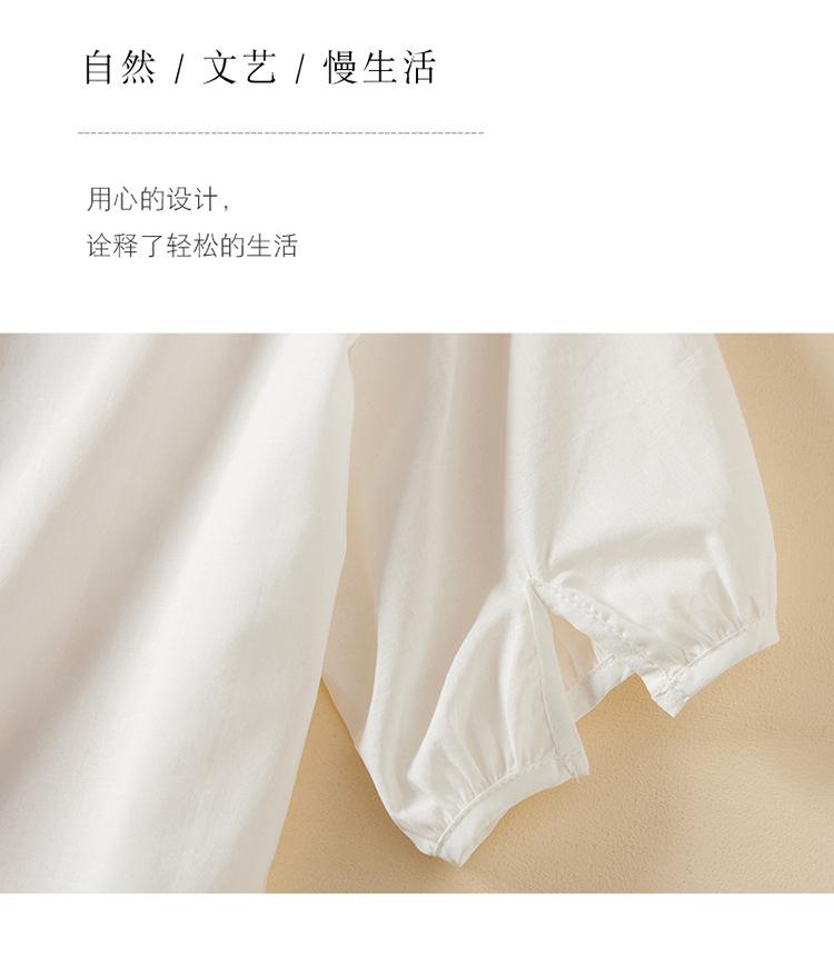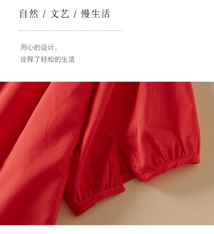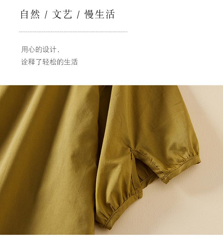Blusa holgada de encaje artístico para mujer, camisa informal de algodón y lino, elegante, con cuello redondo, novedad de verano de 2023
