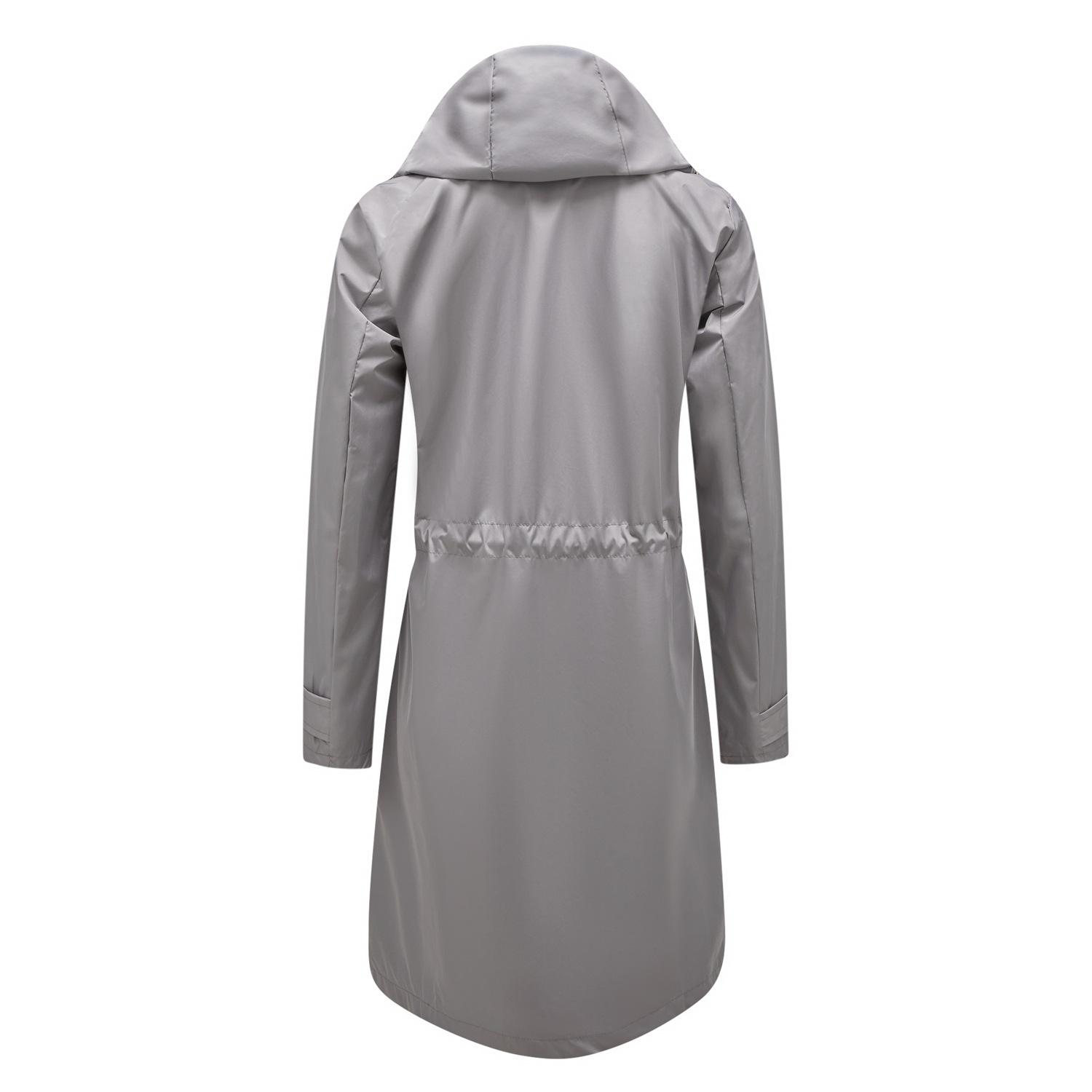2023 Talla Europea Primavera y Otoño Cortavientos Largo Casual para Mujer Impermeable con Capucha Color Puro Top Forro a Rayas Chaqueta Recta